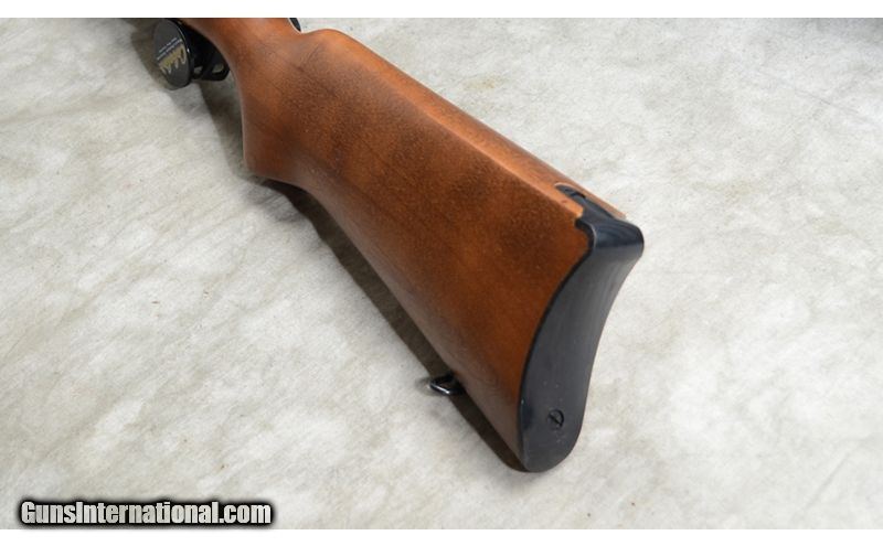 Description: Ruger's pest control rifle chambered in .223 Remington and features stained hardwood stock, light weight at 6#10 and at 37" overall length it is fast handling. .223 Remington SOLD Chambers: 5 Metal Condition: Like new in the box. Wood Condition: Like new in the box. Bore Condition: Like new in the box. Barrels: 18-inch Triggers: Factory trigger. Stock Dimensions: 12-5/8 inch LOP. Fore End: Black plastic heat shield. Butt Pad: Curved black plate. Weight: 6 lb - 14 oz Sights: Post and peep "iron" sights. Set up to accommodate a scope. Item Location: Rogers |