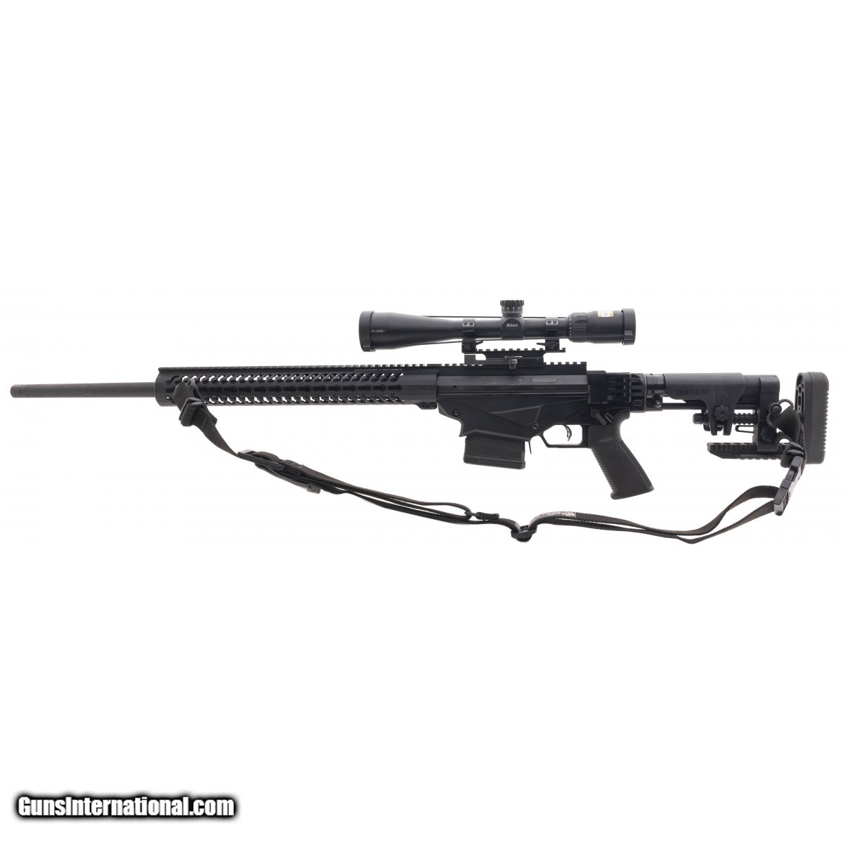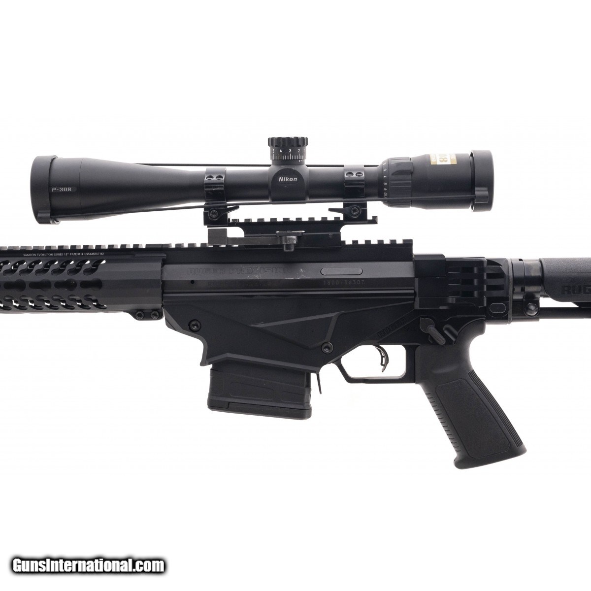 Description: " SN:1800-36307. Bolt action rifle with a 24"" threaded barrel, keymod rail and an adjustable side folding stock. Overall in excellent condition, with Nikon P-308 scope and a sling. SOLD |