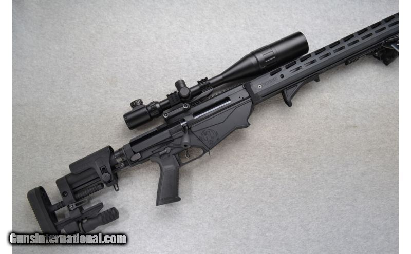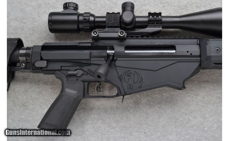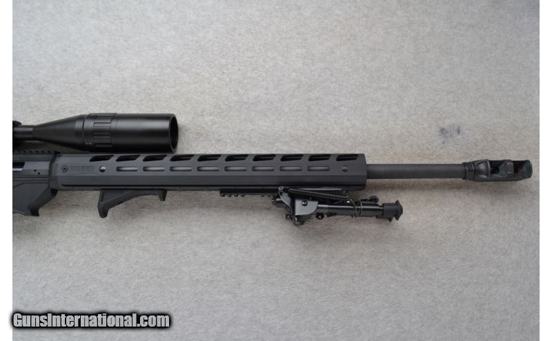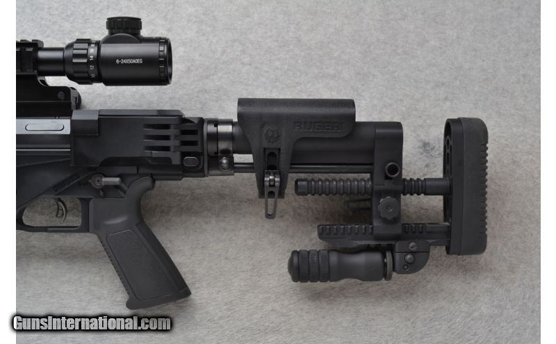Description: This Ruger Model Precision is a right hand bolt action rifle in .300 Win. Mag. Cal. It has a 26 inch free floating cold hammer forged barrel with a Hybrid muzzle break and an in line recoil path. The MSR stock is foldable and adjustable for comb and LOP. The forearm is a vented AR style buffer tube with a bi-pod. It is outfitted with a 6-24x50AOEG Scope with a shadow tube. It has the Ruger Marksman adjustable trigger and an oversize bolt handle. The left folding stock hinge is attached to a AR style buffer tube and accepts AR style stocks. SOLD Caliber Info: .300 Win. Mag. Chambers: Bolt Action 10+1. Detachable magazine. Metal Condition: Excellent with a couple of minor handling marks. Wood Condition: Stock is excellent. Bore Condition: Excellent. Barrels: 26 inch matte black free floating cold hammer forged with muzzle break. Triggers: Ruger Marksman adjustable trigger. Stock: MSR stock is foldable and adjustable for comb and LOP. AR style grip. Oversize bolt handle. Stock Dimensions: LOP at 14 3/4 inches. Fore End: Vented AR style buffer tube. Adjustable folding Bi-Pod. Butt Pad: Ribbed black rubber. Weight: 18 lbs. 12 oz. with Scope and Bi-Pod. Sights: 6-24x50AOEG Scope with shadow tube. No iron sights. Extras: Comes with a scope and bi-pod. Item Location: Richfield, WI |