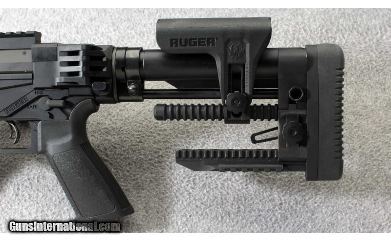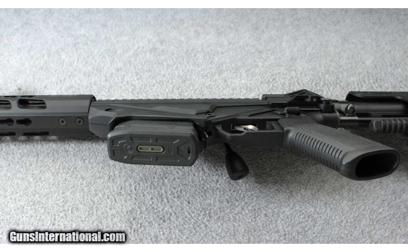 Description: Ruger® built the Precision Rifle® from the ground-up for long-range, tactical shooting. The Precision MSR buttstock attaches to an AR-style buffer tube on a left-folding hinge and adjusts for length of pull and comb height. The buttstock features QD sling attachment points, a bottom Picatinny rail, and rubber pad. The buffer tube accepts any AR-style stock. A medium-contour barrel is shrouded by a free-floated KeyMod handguard for attaching aftermarket tactical accessories. The upper receiver and one-piece bolt are precision CNC-machined from pre-hardened 4140 chrome-moly steel to minimize distortion; and a 20-MOA Picatinny rail is secured to the receiver with 4 #8-40 screws. The bolt has 3 lock lugs, resulting in superior strength and a 70 degree throw. The bolt handle is oversized for positive engagement, and is replaceable with a 5/16"-24 thread. An extended trigger-reach, AR-style grip, and a 45 degree reversible safety selector provides ease of operation, and the rifle is compatible with any AR-style grip and selector. The cold hammer-forged 4140 chrome-moly steel barrel has 5R rifling and comes with an attached hybrid muzzle brake that effectively reduces recoil, while minimizing noise and blast (thread protector included). The barrel nut enables close tolerance headspacing, and a Marksman Adjustable™ trigger breaks clean to enhance accurate shooting. The Ruger Precision Rifle utilizes a multi-magazine interface that functions with AICS, polymer AR-10, and Gunsite Scout magazines. Manufactured 2017. .308 Winchester SOLD Metal Condition: Very good with some scratches Bore Condition: Very good with signs of use Barrels: 20 inch threaded heavy barrel Stock Dimensions: Adjustable Weight: 11 lbs. 2 oz. Sights: Rail for mounting optics Item Location: Lehi, UT |