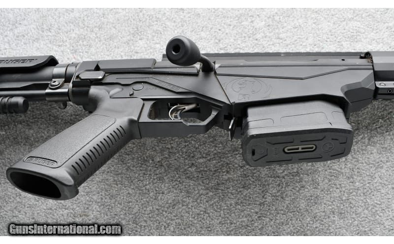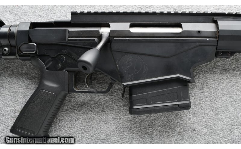 Description: Features Three-lug bolt with 70° throw, full diameter bolt body. Ruger Marksman Adjustable™ trigger is externally adjustable, with a trigger pull range of 2.25 to 5 pounds; wrench is stored in the bolt shroud. .243 Winchester SOLD Chambers: .243 Winchester in a ten round detachable magazine bolt action rifle Metal Condition: Very good Bore Condition: Very good Barrels: 26" cold hammer forged 1:7.7" Twist threaded muzzle Triggers: Ruger Marksman Adjustable Stock Dimensions: 12.7" to 16.2" LOP Fore End: 15" Samson Evolution Series Butt Pad: Rubber Weight: 11 lb Sights: "No sights, fitted with a full length Picatinny rail Item Location: Grand Junction, CO |