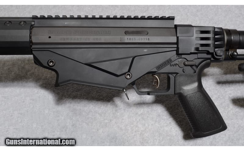 Description: The barrel features a Ruger Precision Rifle Hybrid Muzzle Brake to effectively reduce recoil while minimizing noise and blast to the sides of the shooter. In-line recoil path manages recoil directly from the rear of the receiver to the buttstock, not through a traditional bedding system, providing maximum accuracy potential. The cold hammer-forged, chrome-moly steel barrel with 5R Rifling at minimum bore and groove dimensions, minimum headspace and centralized chamber. Ruger Precision MSR stock with QD sling attachment points features a bottom Picatinny rail and soft rubber buttpad. The left-folding stock hinge is attached to an AR-style buffer tube and accepts any AR-style stock. Length of pull and comb height are adjustable. Three-lug bolt with 70° throw features dual cocking cams and a smooth-running, full diameter bolt body. Bolt body is nitrided for corrosion resistance, smooth operation and durability. 6mm Creedmoor SOLD Chambers: Bolt Action Metal Condition: Excellent Bore Condition: Excellent Barrels: "24"" Cold hammer-forged, chrome-moly steel barrel with 5R Rifling Triggers: Ruger Factory Trigger Stock Dimensions: Fully Adjustable Metal Stock Fore End: Aluminum free-float handguard Butt Pad: Soft Rubber Ruger Butt Pad Weight: 11.5 lbs. Sights: Picatinny Rail Item Location: Tulalip, WA |