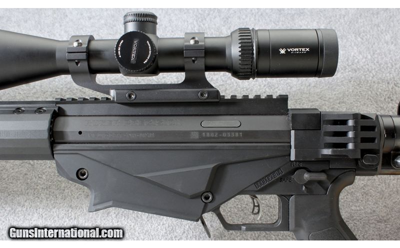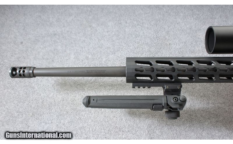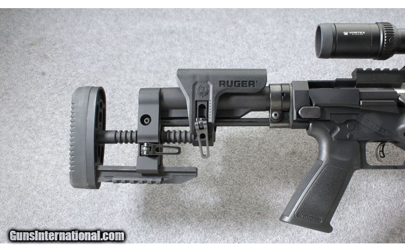Description: Ruger built the Precision Bolt-Action Rifle from the ground-up, specifically for long-range, tactical shooting. Comes with a new, free-float handguard that provides greater clearance with large-diameter objective lens. It also comes with a muzzle brake, featuring a hybrid port design that reduces recoil by up to 60% and reduces muzzle blast, directing it to each side of the shooter's line of sight. The upper receiver and one-piece bolt are precision CNC-machined from pre-hardened 4140 chromoly steel to minimize distortion, and a 20-MOA Picatinny rail is secured to the receiver with four 8-40 screws. The bolt has three lock lugs, resulting in superior strength and a 70º throw. The Precision MSR buttstock attaches to an AR-style buffer tube on a left-folding hinge, and the stock adjusts for length of pull and comb height. The buttstock features QD sling attachment points, a bottom Picatinny rail and rubber butt pad. The buffer tube accepts any AR-style stock. An extended trigger-reach, AR-style grip, and a 45º reversible safety selector provide ease of operation, and the rifle is compatible with any AR-style grip or selector. The cold-hammer-forged 4140 chromoly steel, medium-contour barrel has 5R rifling. The barrel nut enables close-tolerance headspacing, and the adjustable trigger breaks clean to enhance accuracy. NO MAGAZINE IS INCLUDED. Manufactured 2017 6.5mm Creedmoor SOLD Metal Condition: Very good, with some scuff marks Bore Condition: Excellent, sharp and bright Barrels: 24 inch threaded barrel with 1:8 inch twist Triggers: Ruger Marksman adjustable trigger Stock Dimensions: Adjustable Butt Pad: Adjustable Weight: 13 lbs. 7 oz. Sights: Vortex Viper 4-16x50 scope Item Location: Lehi, UT |