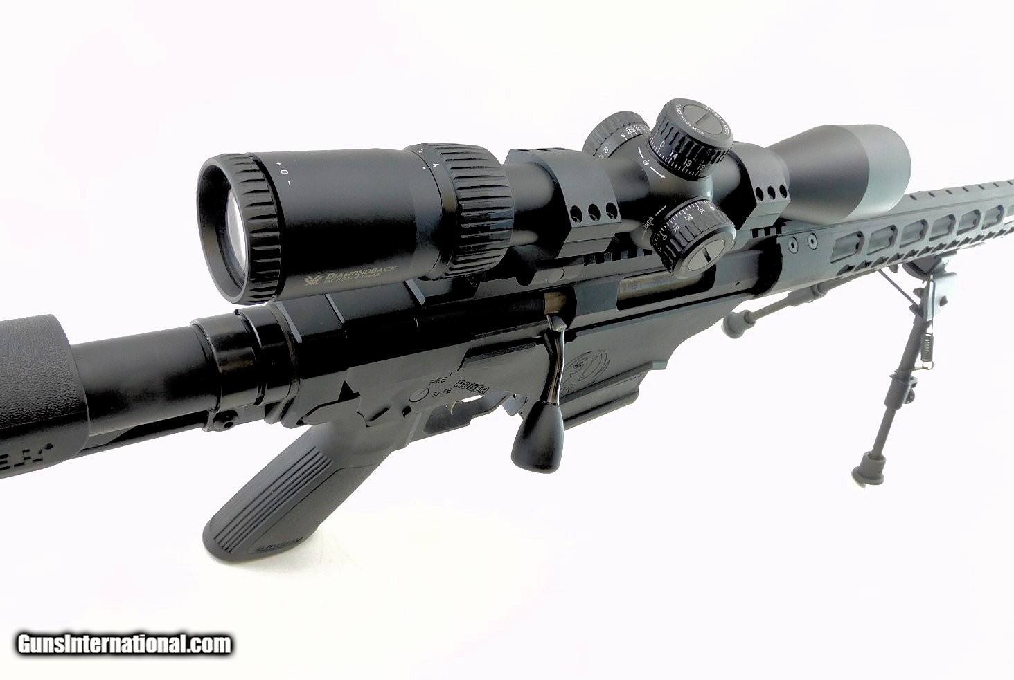 Description: Ruger Precision Rifle Vortex Package 5.56, 20" bbl with muzzle brake, bright shiny bore, good rifling, black finish, 20 MOA scope base, Vortex Diamondback Tactical 4-16X44 rifle scope, 15" handguard, bolt action, adjustable trigger, black pistol grip, left folding stock, adjustable comb - LOP, bipod, and black recoil pad. This is a very clean rifle! Add 3% for Credit Card Shipping $40.00 in the 48 contiguous United States From the manufacturer: "Sturm, Ruger & Company, Inc. (NYSE-RGR) is pleased to introduce the Ruger Precision Rifle chambered in 5.56 NATO/.223 Rem. Delivering low recoil and exceptional accuracy potential from a wide variety of 5.56 NATO and .223 Rem. ammunition, the availability of the Ruger Precision Rifle in this new chambering broadens the appeal of the already very popular rifle. Whether launching high ballistic coefficient .223 projectiles, working from the bench making tiny 100 yard groups, or learning to read wind with low cost ammunition, trigger time with this newest Ruger Precision Rifle will be worthwhile and enjoyable. This new model of Ruger Precision Rifle employs a hybrid "Target" chamber, which safely accommodates 5.56 NATO cartridges while providing excellent projectile control and accuracy for both .223 Rem and 5.56 NATO cartridges. The rifle ships with two, 10-round AI-Style Precision Rifle magazines that accommodate 5.56 NATO and .223 Rem. factory ammunition loaded with the longer, higher ballistic coefficient projectiles popular among long-range shooters. Like all Ruger Precision Rifles, this model's highly accurate, free-floated barrel is cold hammer-forged from 4140 chrome-moly steel and features 5R rifling for minimum bullet upset. Minimum bore and groove dimensions (air-gauged for process control) and a centralized chamber deliver outstanding accuracy, longevity and ease of cleaning. This new model features a 1:7 twist rate that stabilizes long-for-caliber projectiles. All models of the Ruger Precision Rifle are equipped with a left-folding stock with adjustable comb height and length of pull, an ergonomic pistol grip and a Precision Rifle handguard, all of which may be customized with AR-style components. The Ruger Precision Rifle also features a Ruger Precision Rifle Hybrid Muzzle Brake, a 20 MOA scope base and the Ruger Marksman Adjustable trigger, which provides a user-adjustable pull weight range between 2.25 and 5 pounds. The value proposition of the Ruger Precision Rifle is without peer. With top-tier accuracy, adjustable ergonomics and the rugged reliability and affordability for which Ruger is famous, this new chambering broadens the Ruger Precision Rifle's utility across a wide range of readily available ammunition. SOLD |