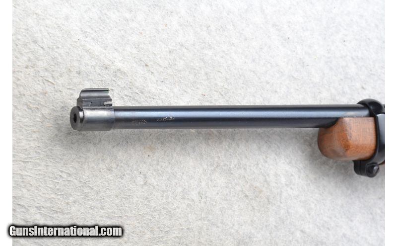 Description: This Ruger Model 10/22 is a right hand semi-auto rifle in .22 Long Rifle Cal. It has an 18.5 inch barrel. A raised blade front sight and a folding adjustable notch middle sight. It is drilled and tapped and has a scope mount base attached. The butt stock is a smooth grip hardwood pistol grip. The forearm is a smooth grip hardwood with a barrel band. .22 Long Rifle SOLD Chambers: 10 round rotary magazine. Metal Condition: Good with light freckling. Wood Condition: Good. Has handling marks. Bore Condition: Excellent. Barrels: 18.5 inch. Stock Dimensions: LOP 13 1/2 inches. Fore End: Smooth grip hardwood with a barrel band. Butt Pad: Smooth crescent. Weight: 5 Lb. 2 Oz. Sights: Raised blade front. Folding adjustable middle. Drilled and tapped with a scope mount base attached. Item Location: Richfield, WI |
