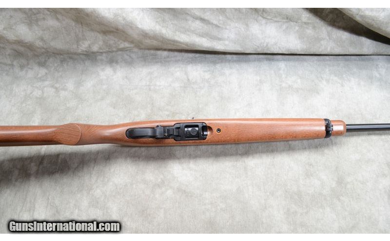 Description: A 50th Anniversary edition of the venerable Ruger 10/22 featuring engraved bolt, hardwood stock, carbine length and extended magazine release. .22 Long Rifle SOLD Chambers: 10 round detachable magazine. Metal Condition: LNIB. Wood Condition: LNIB. Bore Condition: LNIB. Barrels: 18-1/2 inch Triggers: Factory trigger. Stock Dimensions: 13-1/2 inch LOP. Butt Pad: Curved plastic plate. Weight: 5 lb. - 2 oz. Sights: Gold bead and folding leaf open sights. Drilled and tapped for scope. Item Location: Rogers |