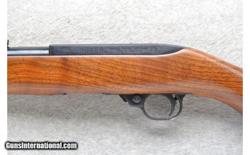 Description: This Ruger Model 10/22 Custom is a right hand semi-auto rifle in .22 Long Rifle Cal. It has an 18.25 inch barrel. A blade front sight and a folding adjustable middle notch sight. The stock is a smooth walnut pistol grip butt with a black cap and a smooth .22 Long Rifle SOLD Chambers: Semi-Auto 10 round rotary magazine. Metal Condition: Very good. Very minor surface finish marks. Wood Condition: Very good. Minor handling marks. Barrels: 18.25 inches. Stock Dimensions: LOP 13 3/4 inches. Fore End: Smooth grip walnut Mannlichter forearm. Butt Pad: Horizontal grooved black plate. Sights: Front blade. Folding adjustable notch middle. Item Location: Richfield, WI |