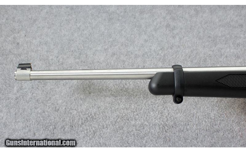 Description: Built on a solid reputation for reliability and accuracy, the Ruger® 10/22® Takedown Semi-Auto Rimfire Rifle is one of the most popular, and widely used rimfire rifles in the US. The 10/22 Takedown Model is well suited for having a survival gun stowed in a vehicle, boat, or plane, or at a cabin or home. It makes an easy-to-carry camp gun, perfect for backpacking and canoe trips. The Takedown splits into 2 subassemblies right in front of the receiver by simply pushing a recessed lever, twisting the subassemblies, and pulling them apart—no tools are needed! To ensure consistent accuracy, the 10/22 Takedown has an adjustment knob to eliminate play between the halves. After reassembly, the firearm returns to zero, even when receiver-mounted optics are used. Its 2-piece carbine-style synthetic stock features a curved, checkered butt that stays put on the shoulder and textured surfaces on the pistol grip and fore-end to provide a solid hold in harsh weather. The barrel is made of corrosion resistant stainless steel. The 10/22 utilizes a simple blowback semi-auto action, and a 10-shot rotary magazine, both of which are legendary for reliability. (Takedown Model uses readily available, standard 10/22 magazines.) The 10/22 An extended magazine release allows for rapid reloading. The Ruger 10/22 Takedown Semi-Auto Rimfire Rifle is an indispensable, go-to firearm to have on hand for emergency self-defense, hunting, or survival situations. Made in USA 2013 .22 Long Rifle SOLD Metal Condition: Very good with some scratches Bore Condition: Excellent Barrels: 18.5 inch barrel Stock Dimensions: 13.25 inch LOP Weight: 4 lbs. 9 oz. Sights: "Folding leaf rear sight, bead front and scope base Item Location: Lehi, UT |