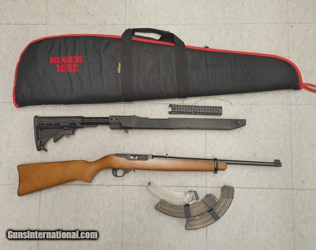 Description: Guns Listing ID: 784507 Ruger 10/22 Carbine Semi-Auto 22LR 18.5\" 10+1 Hardwood Stock Black The Ruger 10/22 rifle is America‚‚s favorite 22 LR rifle, and it‚‚s ideally suited for informal target shooting, plinking, small game hunting, and action-shooting events. The 10/22 rifle is sleek, perfectly balanced, rugged, superbly accurate, and known for its legendary action and renowned reliable rotary magazine. The 10/22 Carbine features a hammer-forged barrel locked into the receiver by a unique two-screw V-block system, a precision-machined A380 aluminum alloy receiver, and a patented detachable rotary magazine with a unique rotor to separate cartridges and provide reliable feeding. This rifle comes with a combination scope base adapter for both Weaver-style and 22 \"tip-off\" scope mounts. SOFT CASE TACTICAL STOCK 3-25 RD MAGS 1-10RD M SOLD Manufacturer: RUGER Model: 10-22 Caliber Info: .22 LR Condition: Used - Non-Certified Barrels: 18 BARREL Finish: WOOD AND BLACK |