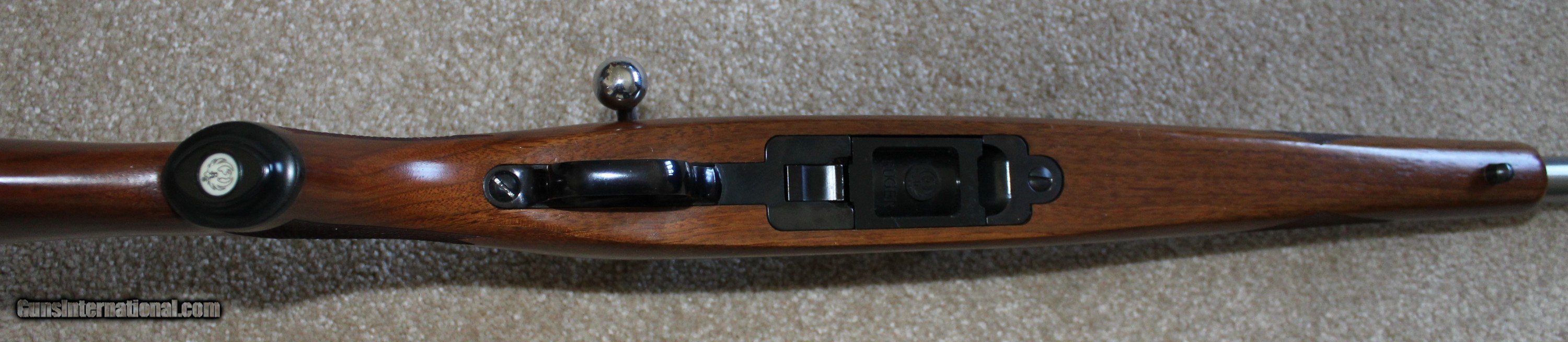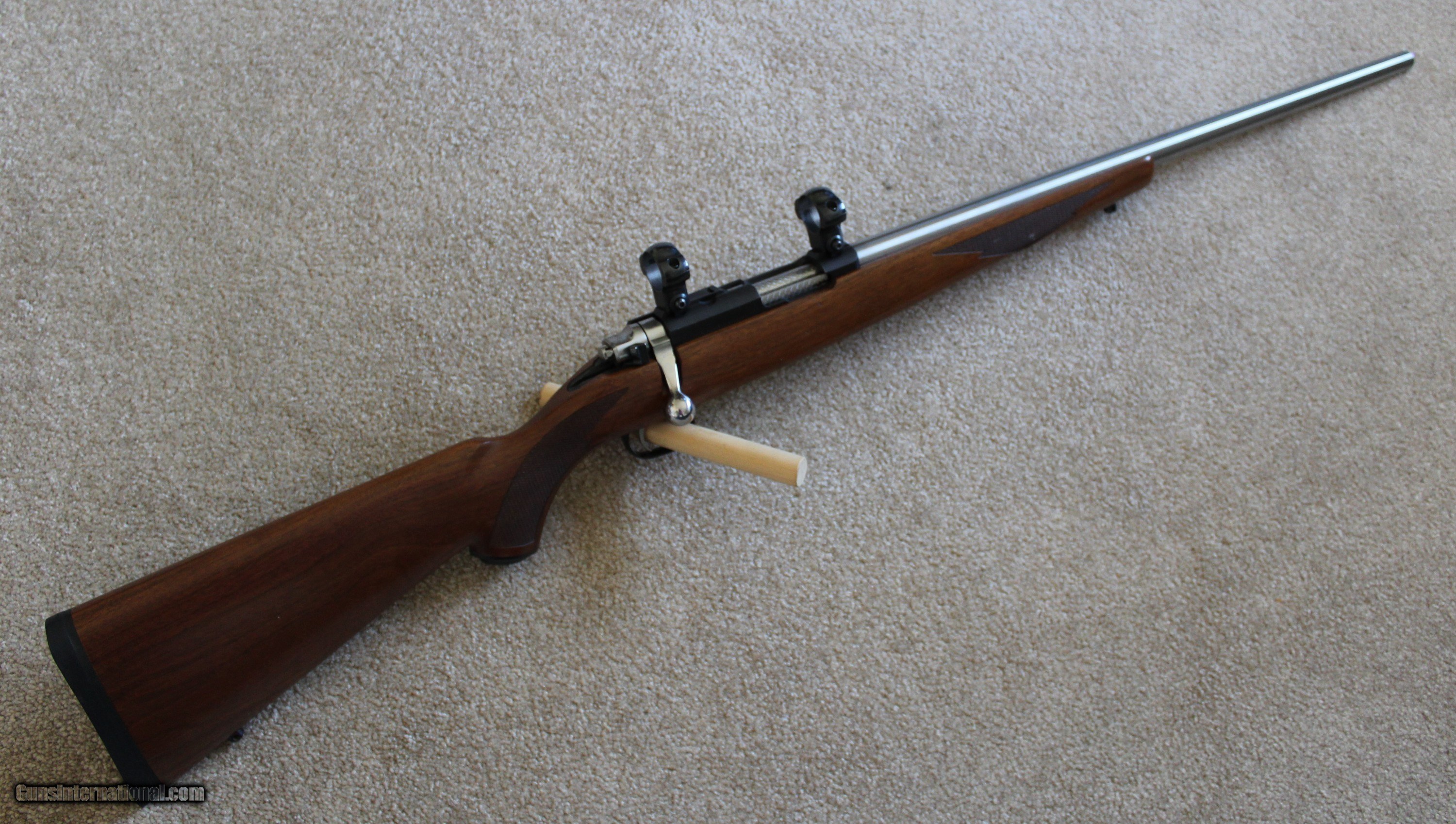Description: Ruger 77/17 in excellent condition with nice grained factory walnut stock. Blued action with Ruger rings mounted. Bolt is jeweled and appears to be customized and polished, as it works very smooth. Barrel is 23" Stainless Lilja with no sights. Rifle was used 1 time at Bench Rest Shoot and shot excellent groups. Excellent condition rifle in desirable 17 HMR caliber with only limited evidence of use. Ruger production about 2001. Do not know any other history of this rifle as it was purchased at a gun show. Ship to FFL only. Shipping and Insurance $45.00. Cashiers check only. SOLD |