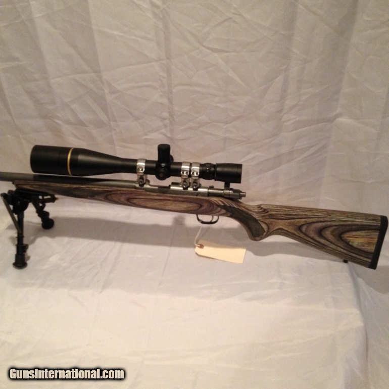 Description: Ruger 77/17 SN# 703-51141, Stainless Bolt Action 24" barrel, Rotary clip10rd, Grey Laminated stock Weight 10.4lbs, LOP 13 5/8" 3 Ruger SS rings, Harris bI-pod SOLD |