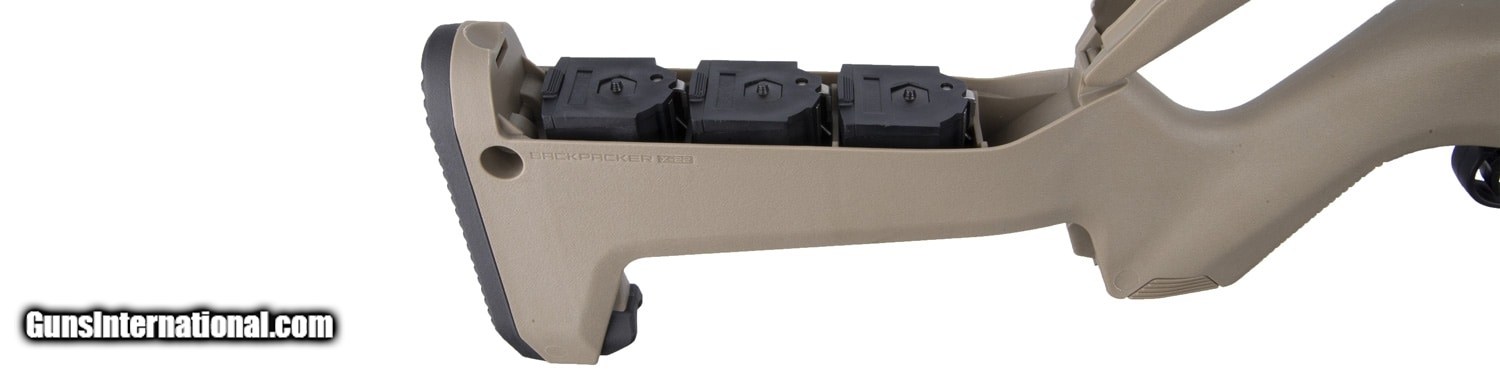 Description: Guns Listing ID: 484187 Features a Magpul® X-22 Backpacker stock with an ergonomic handguard, optional QD sling mounting capability, integrated storage compartment in the grip, a hinged storage compartment in the stock capable of storing up to three spare 10-round magazines, an MOE SL® non-slip rubber buttpad, and a unique locking interface to attach the barrel assembly to the receiver when being transported. - CALIBER .22 LR - MAGAZINES (4) BX-1 10rd capacity - BARREL 16.3\" ,1/2x28 TPI - SIGHTS Fiber Optic Front and Adjustable Rear - STOCK MAGPUL X-22 Backpacker (3 mag storage) SOLD Manufacturer: RUGER Model: X-22 BACKPACKER Caliber Info: .22 LR Condition: new Barrels: 16.40" barrel Finish: FLAT DARK EARTH |