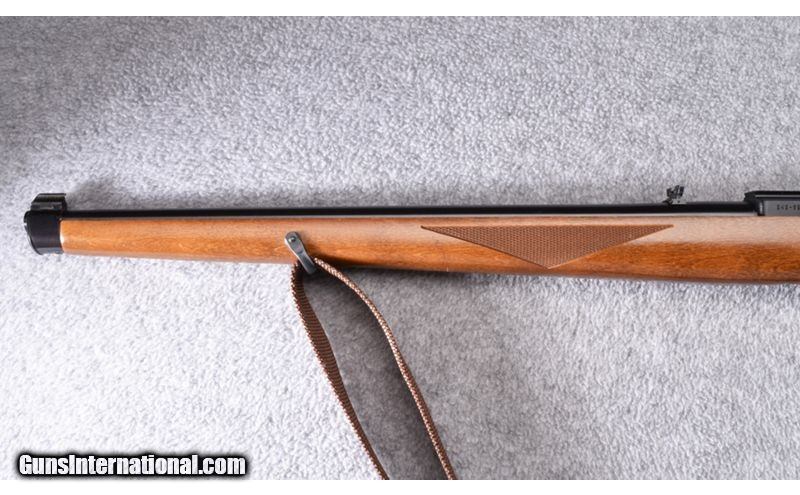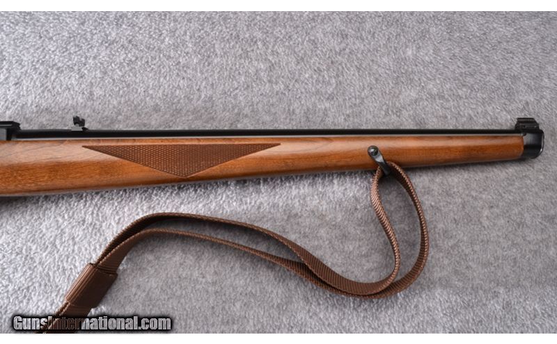 Description: This Mannlicher stock carbine was manufactured in 1996 by Ruger and remains in excellent overall condition. Metal is in very good condition and shows no marks. Wood is very good but shows a few indents where stock has been bumped. There is a small scratch on left side behind trigger that appears to have been from factory. Bore is excellent! Gun is complete with box and brown nylon sling. Very nice little gun! .22 Long Rifle SOLD Metal Condition: Excellent Wood Condition: Very Good Bore Condition: Excellent Barrels: 18 Triggers: Factory Stock Dimensions: 14" LOP Fore End: Checkered Walnut Mannlicher Stock with Black Pistol Grip Cap Butt Pad: Ruger Black Rubber Butt Pad Weight: 6 lb. Sights: Post & Bead Front - Folding Notch Rear - Scope Mount Added to Receiver Item Location: Wheeling |