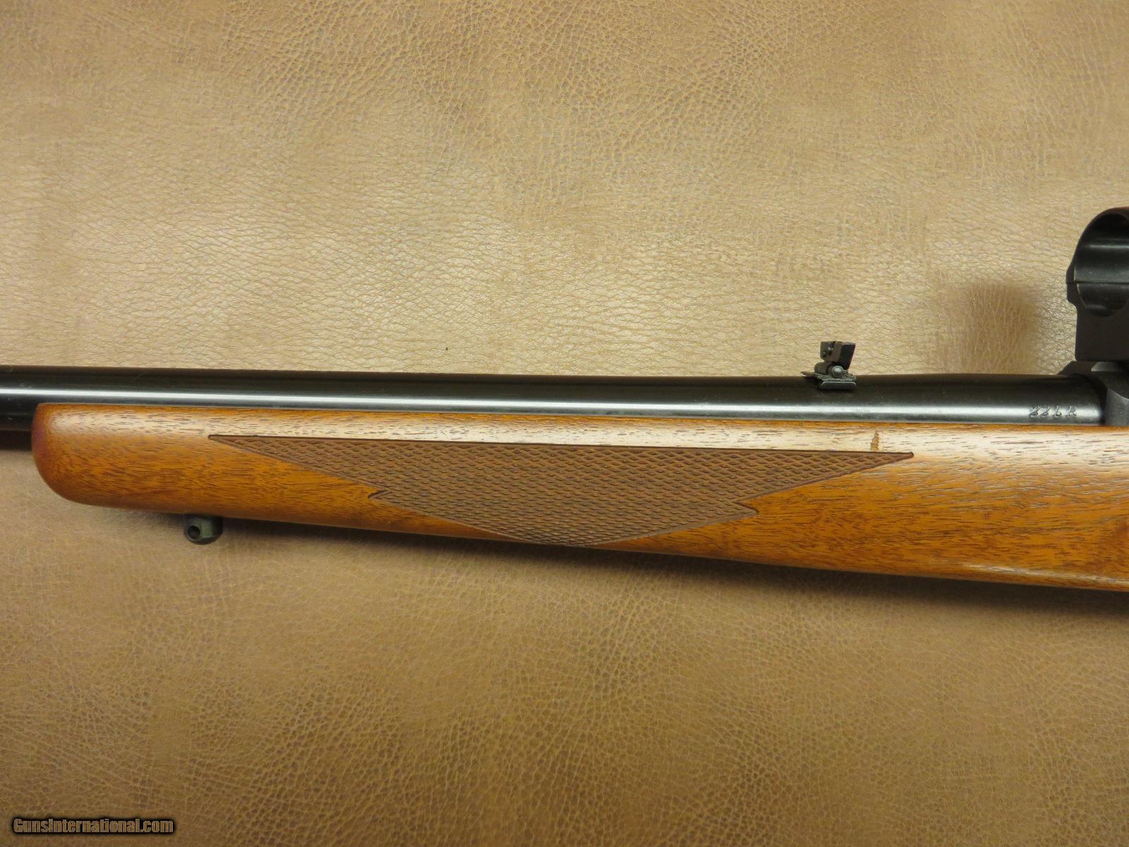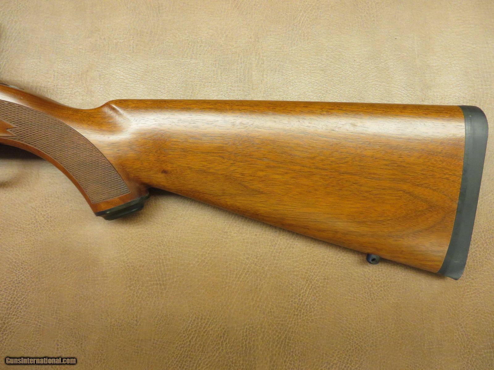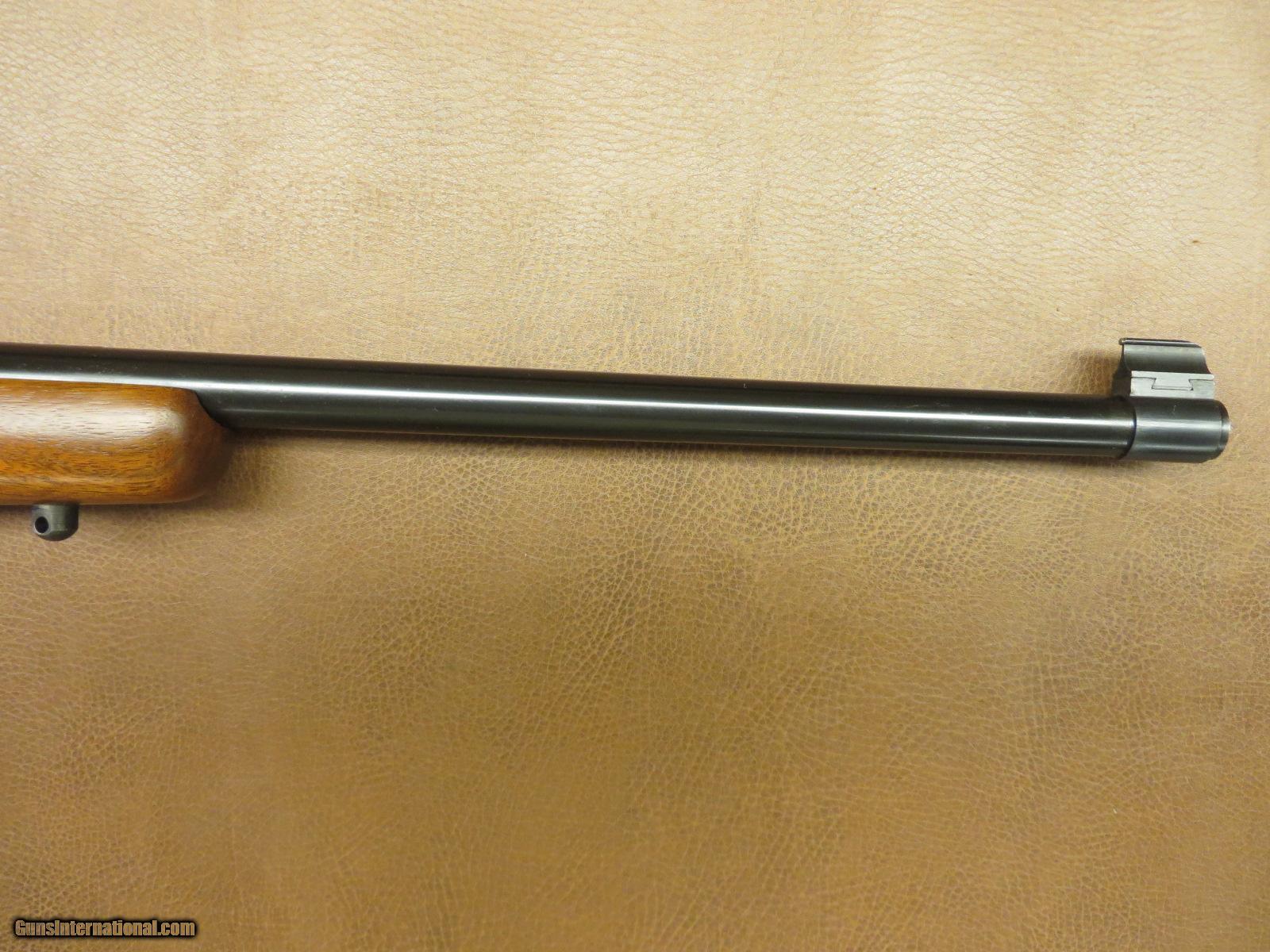 Description: .22 Long Rifle has 20 inch barrel with original sights. Ruger scope mounting rings. Serial number 702-52xxx. Checkered walnut stock with pistol grip cap, sling swivel studs, and original rubber butt pad. Blue is 99% and the wood is 98%. SOLD |
