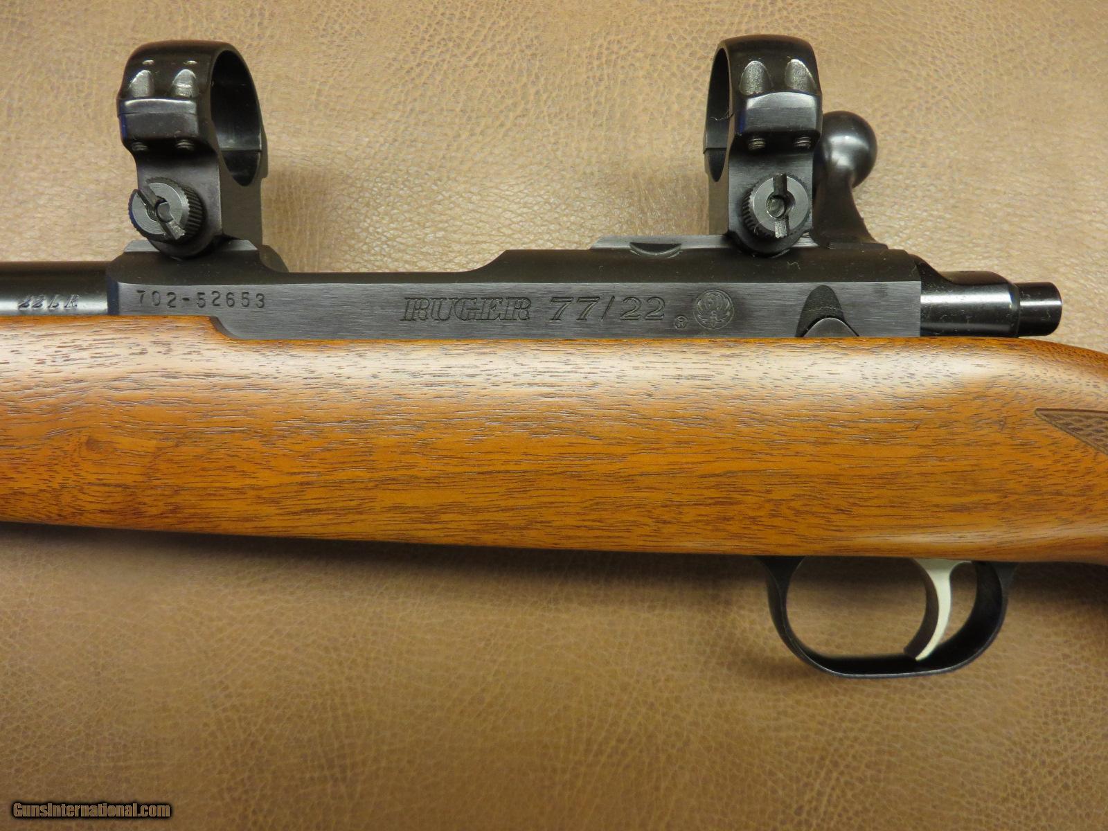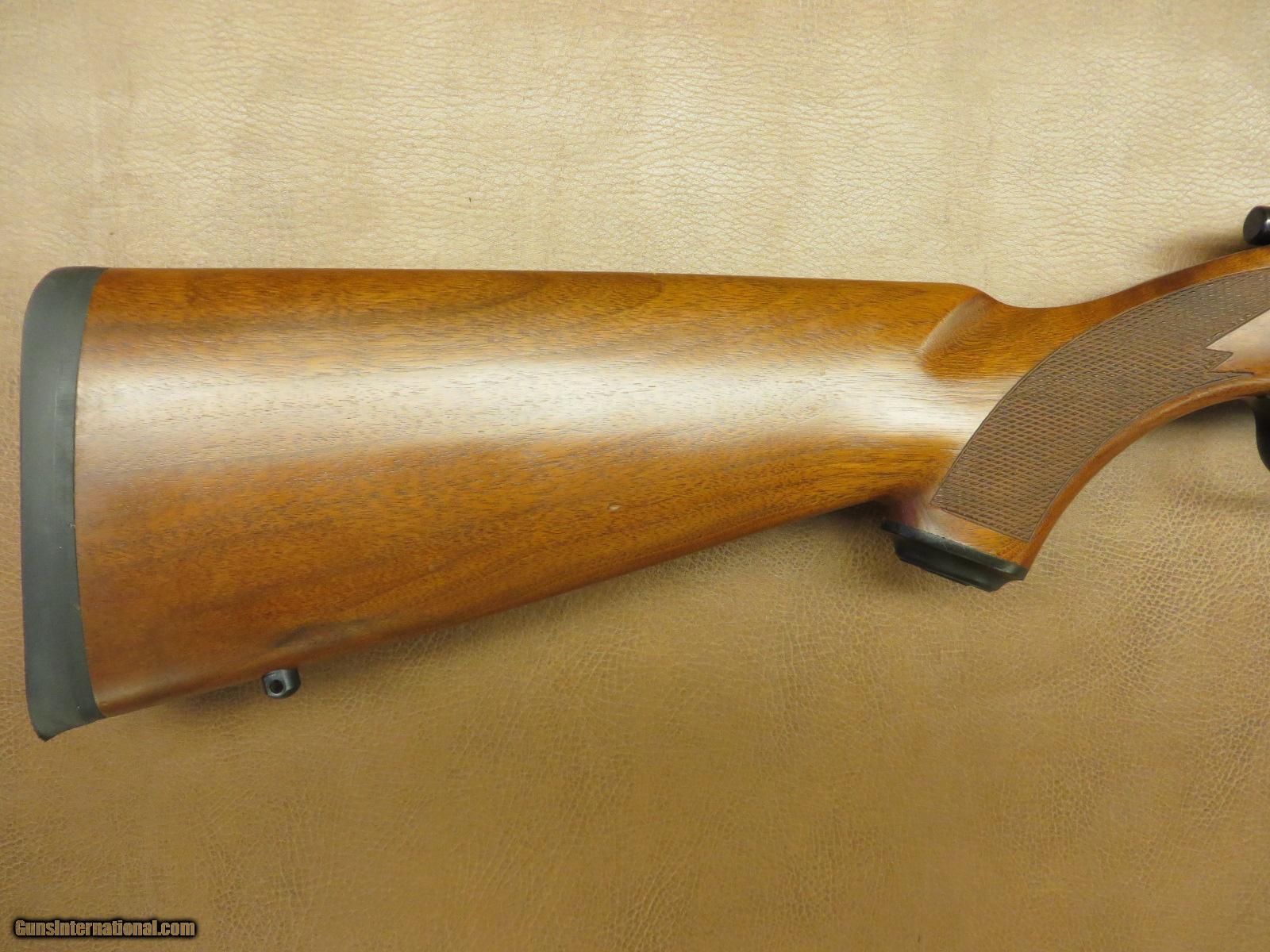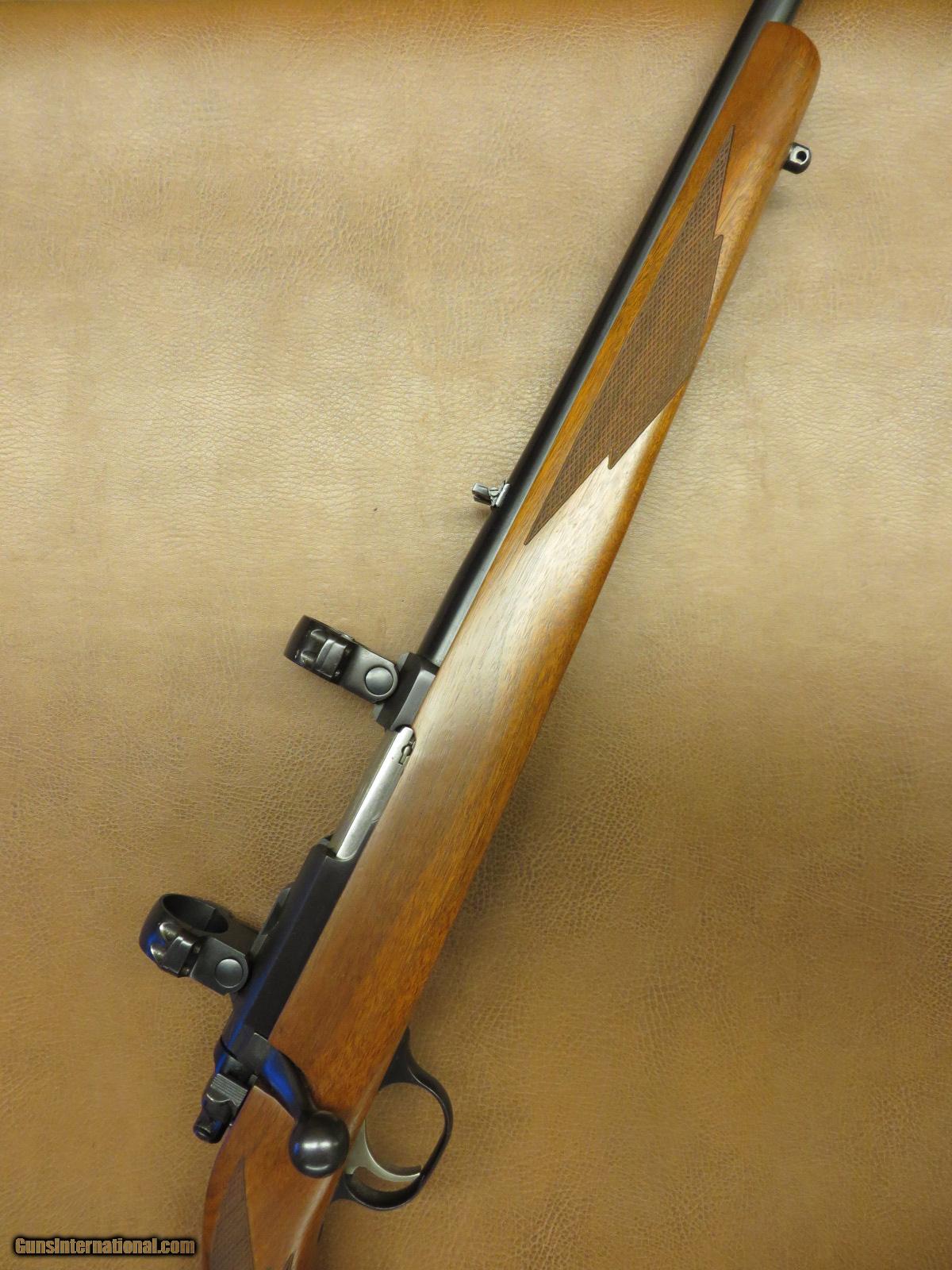 Description: .22 Long Rifle has 20 inch barrel with original sights. Ruger scope mounting rings. Serial number 702-52xxx. Checkered walnut stock with pistol grip cap, sling swivel studs, and original rubber butt pad. Blue is 99% and the wood is 98%. SOLD |