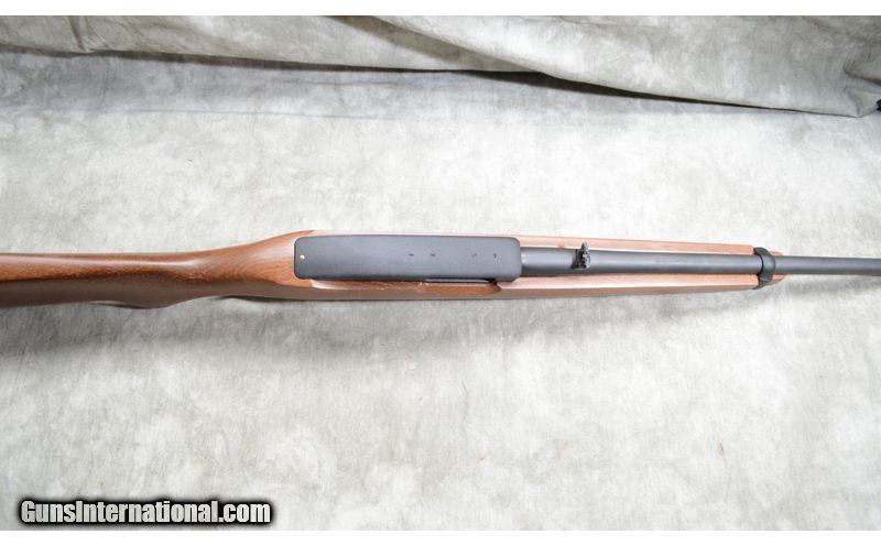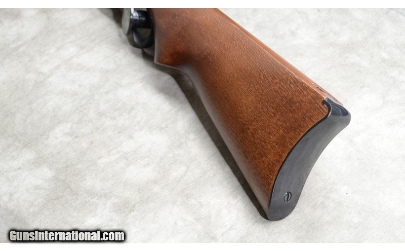 Description: This little lever action features the military style stock common to the M1 Carbine, the 10/22 and the Ruger Deerfield. The sights are brass bead and folding leaf and it is drilled and tapped for your choice of scope. It comes with box and factory papers. .22 MAG SOLD Chambers: 9 + 1 capacity lever action. Metal Condition: Excellent. It could pass for new. Wood Condition: Excellent. It could pass for new. Barrels: 18-1/2 inch blue, with sights. Triggers: Factory trigger. Stock Dimensions: 13 inch LOP. Butt Pad: Curved black plate. Sights: Brass bead and folding leaf open sights. Drilled and tapped for your choice of scope. Item Location: Rogers |