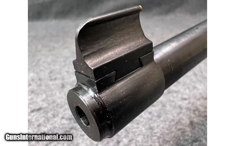 Description: This lever action rimfire rifle is a Sturm Ruger & Co. model ninety-six chambered in .22 WMR. It has a thick rubber butt pad, a brass-beaded fixed blade front sight, an adjustable leaf with white diamond notched rear sight, and a top rail. The bluing is in very good condition overall with only a couple of minor handling marks to the sharp edges of the right side of the receiver. The furniture is also in very good condition with only one discernable light mark to the right side of the fore arm. It comes with an extra 10 round magazine. .22 WMR SOLD Metal Condition: Very good condition overall condition with a couple of barely noticeable handling marks to the sharp edges of the receiver Wood Condition: Excellent condition overall with a very small barely noticeable handling mark to the right side of the fore arm Bore Condition: Bright and shiny bore with excellent rifling intact Barrels: 18 inch barrel Stock Dimensions: "14¾ LOP, 38½ inches overall length Fore End: Smooth wood fore end Butt Pad: Thick rubber butt pad Weight: 5 LB 10 OZ Sights: "Fixed front beaded blade sight, adjustable leaf with white diamond rear sight Item Location: Wichita, KS |