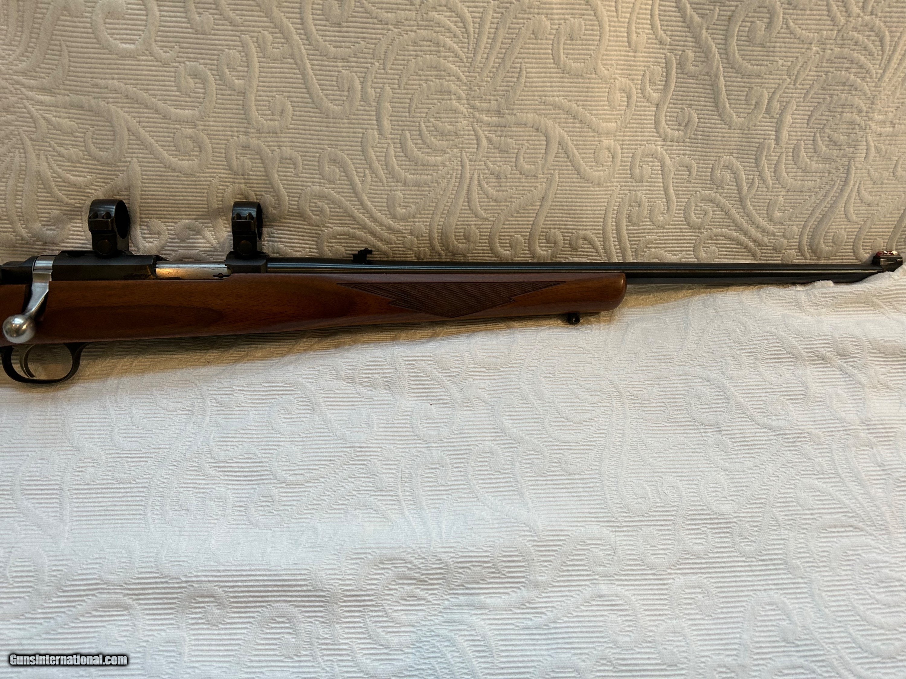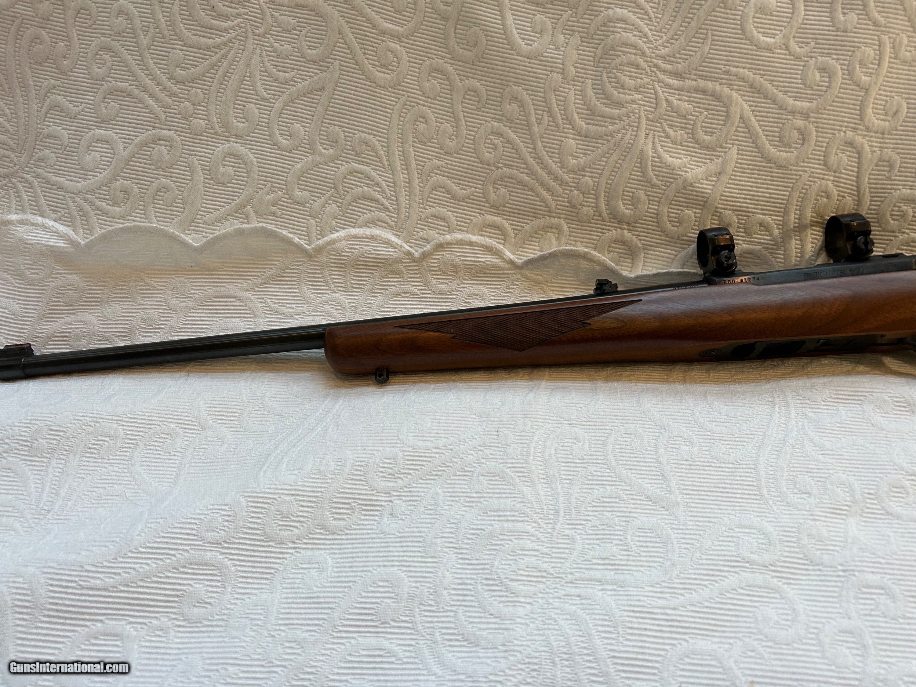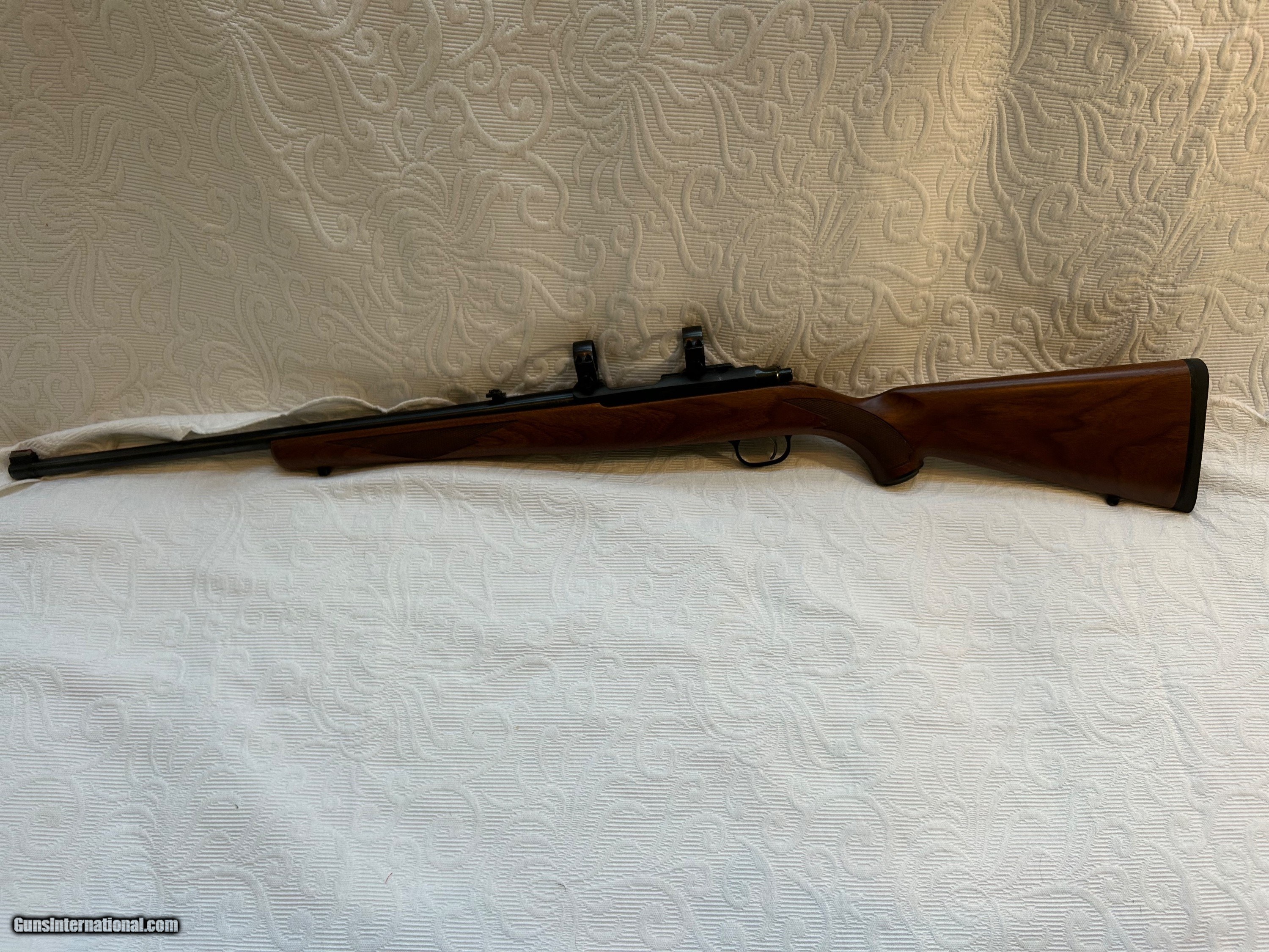 Description: The Ruger 77/22 is a bolt-action rimfire rifle chambered for the .22 Long Rifle. The rifle is blued with a walnut stock and is in near perfect condition with no dings or marks manufactured in 1987. It has a 10 round rotary magazine and comes with scope rings. SOLD Rifle Caliber: .22 Long Rifle Manufacturer: Strum Ruger Model: M77 Barrel Length: 20 Condition: Excellent Action: Bolt Stock: Walnut Weight: 6.5 lbs Manufacture Date: 1987 |