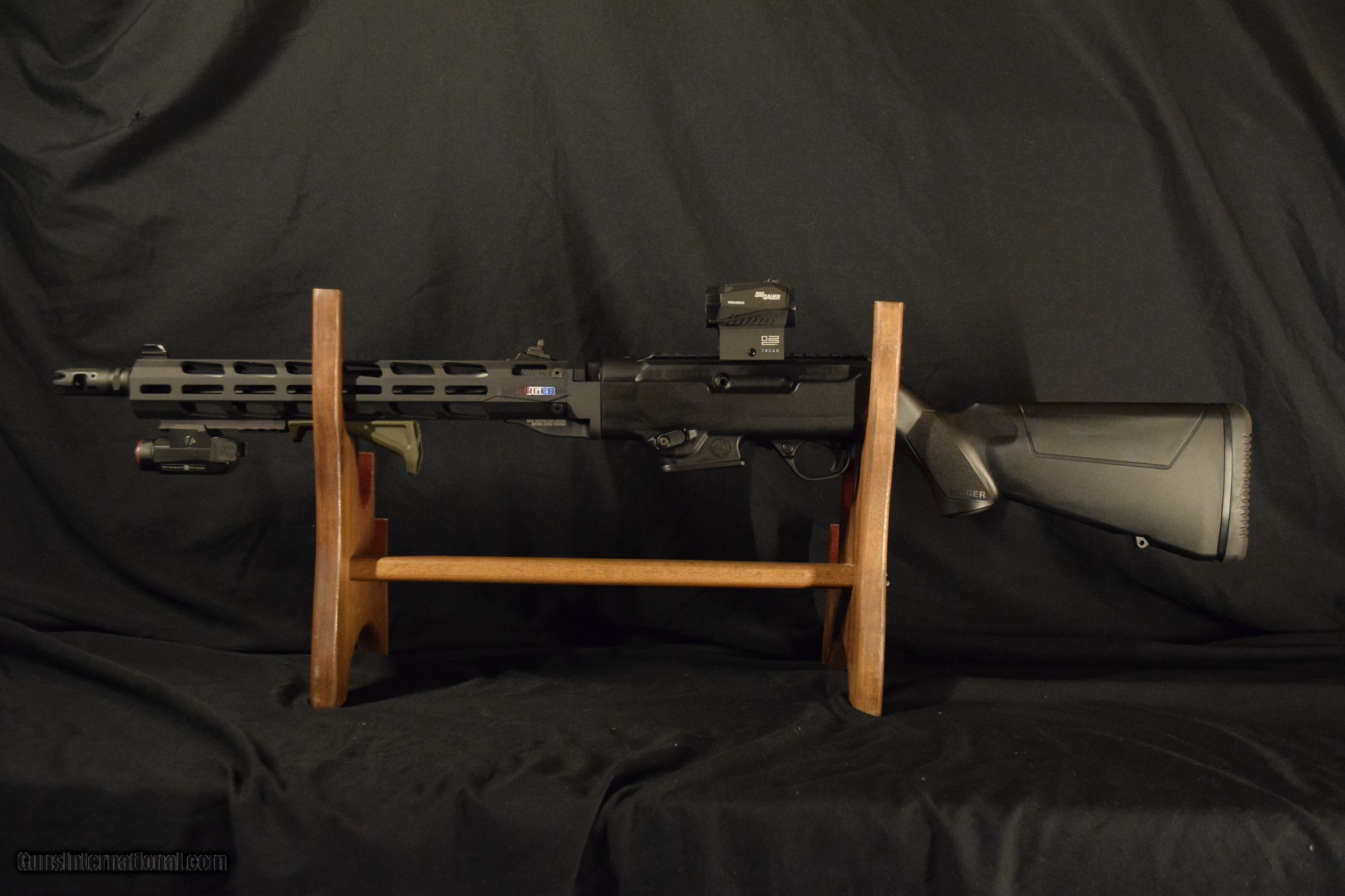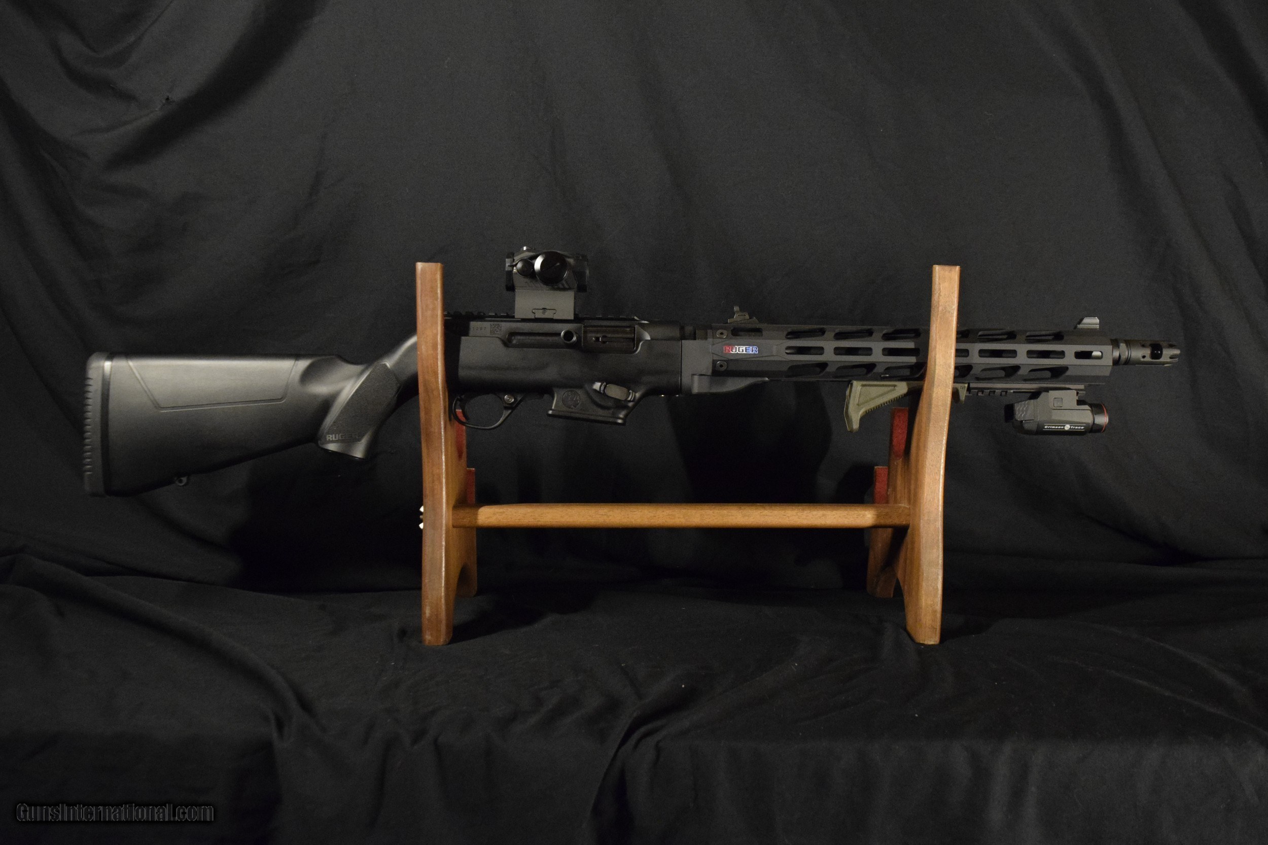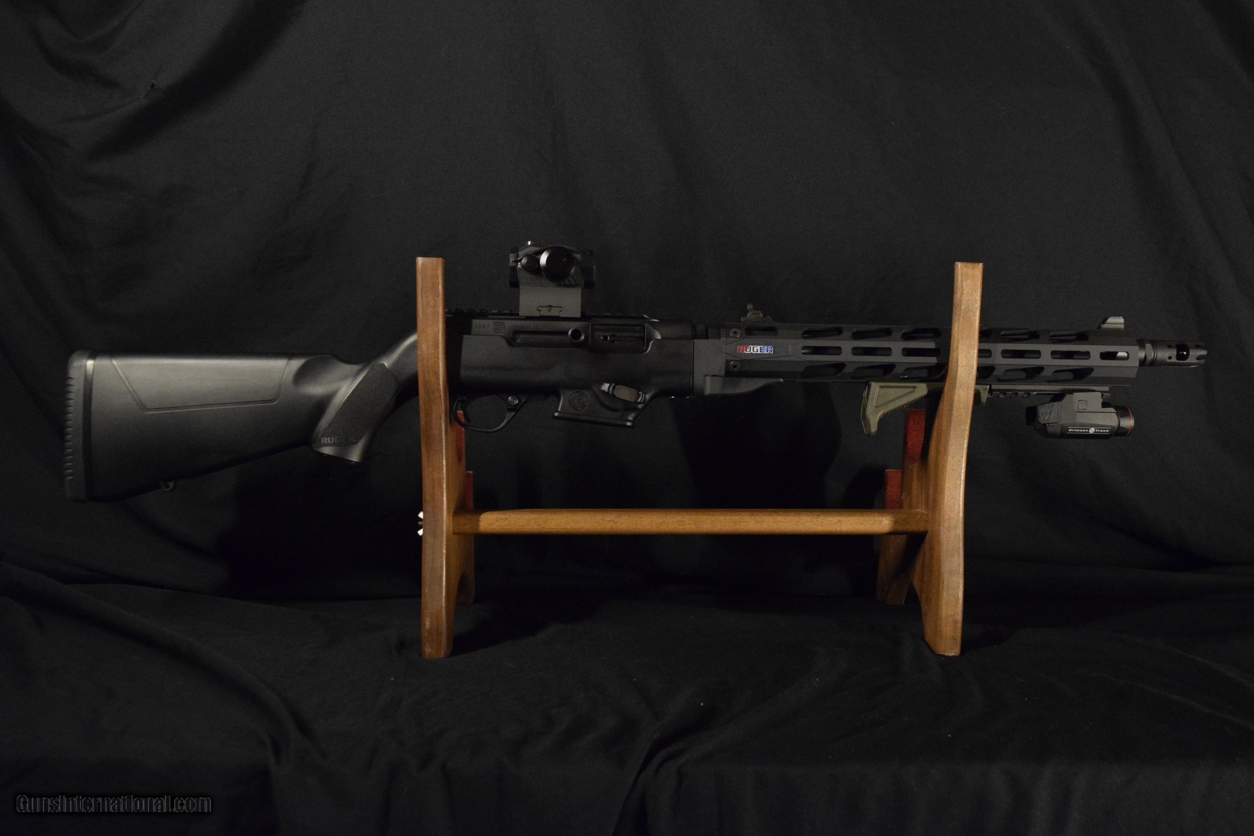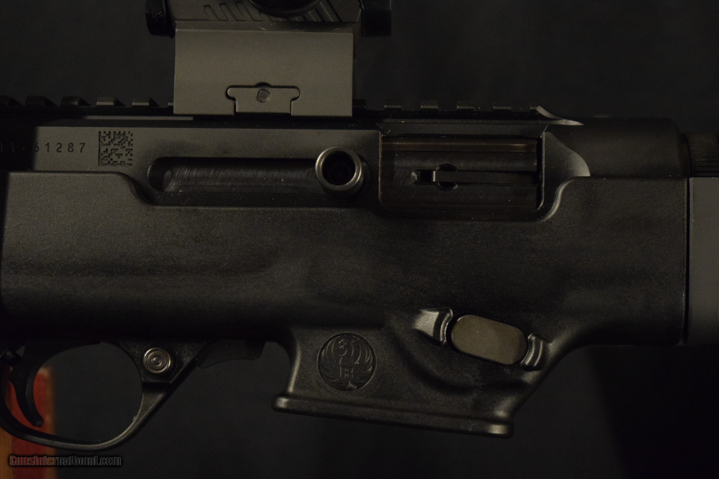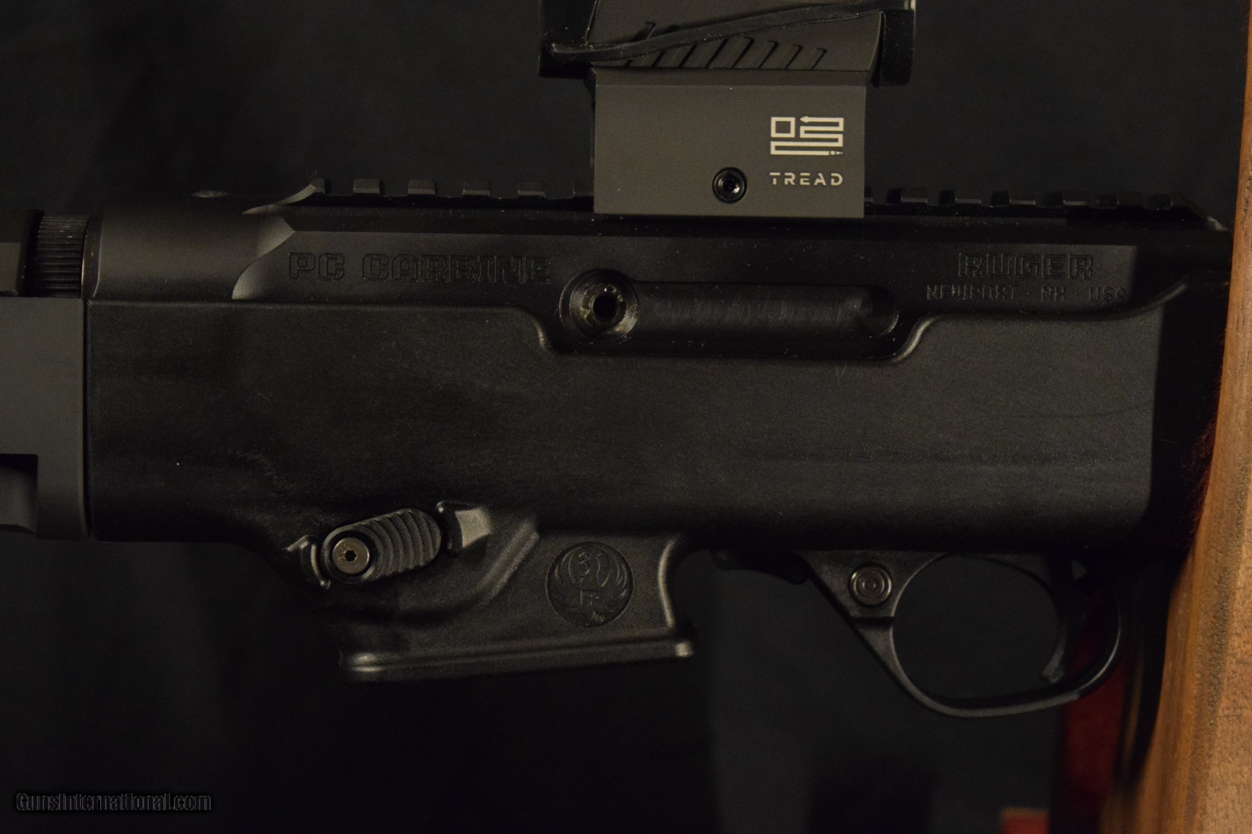 Description: The Ruger PC Carbine features an integrated Picatinny-style rail and in Type III hard-coat anodized for maximum durability. Features a threaded barrel with included thread protector that allows for use of standard muzzle accessories; interchangeable magazine wells for use of common Ruger and Glock magazines. Ships with SR-Series pistol magazine well installed and an additional magazine well accepting Glock magazines is included; accurate sighting system with adjustable ghost ring rear aperture sight and non-glare, protected blade front sight; Soft rubber buttpad with spacers allows the rifle to be properly sized for different shooters or varying levels of outerwear or defensive gear; durable glass-filled nylon synthetic buttstock features a proprietary texture for enhanced control and an integral sling mount for rapid sling attachment; light, crisp trigger pull with minimal overtravel and positive reset utilizing proven 10/22 trigger components and the heavy contour barrel provides consistent accuracy, while barrel fluting sheds unnecessary weight and allows for quick handling. Includes one SR-Series pistol magazine, three 1/2" spacers and hex wrenches for rear sight adjustment, buttpad spacer adjustment and charging handle removal. This item comes with the original soft case, flashlight attachment, Sig Romeo5, and 8 magazines. Overall condition is excellent. Pre-Owned - Ruger PC9 Carbine Semi-Auto 9mm 16" Rifle