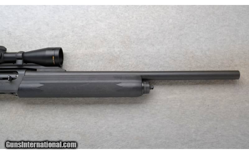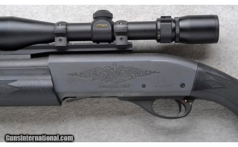Description: This Remington Model 1100 is a right hand semi-auto shotgun in 12 Ga. It has a 21 inch fully rifled barrel with a 2 3/4 inch chamber. It is outfitted with a Nikon Scope. No iron sights. The butt stock is a checkered grip black polymer pistol grip. The forearm is a checkered grip black polymer with finger grooves. The receiver is lightly engraved. 12 Gauge SOLD Chambers: 2 3/4 inch. Metal Condition: Good. Has some light surface handling/use marks. Bore Condition: Excellent. Barrels: 21 inch. Stock Dimensions: LOP 14 inches. Fore End: Checkered grip black polymer with finger grooves. Butt Pad: Remington black rubber recoil pad. Has a melted appearance. Weight: 9 Lb. 4 Oz. Sights: Nikon Prostaff 3-9 Scope. No iron sights. Chokes: Fully Rifled. Item Location: Richfield, WI |