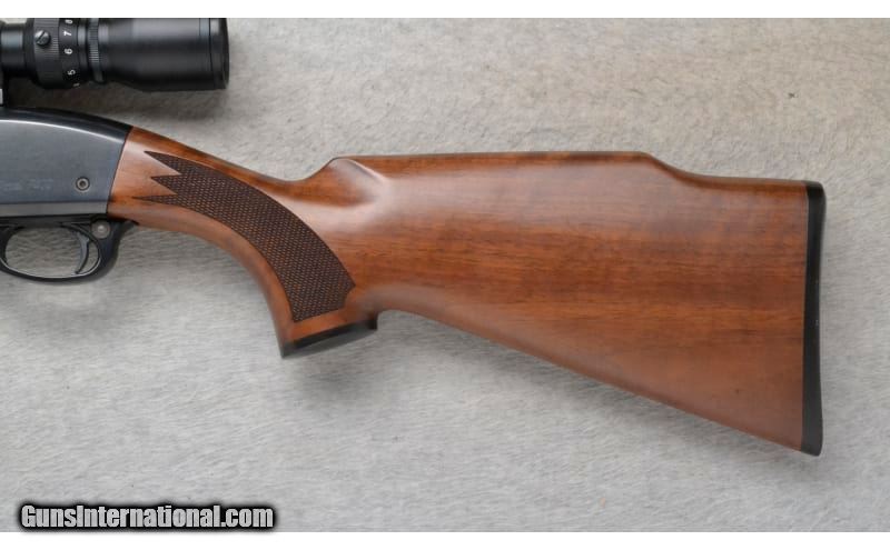 Description: This Remington Model 7400 is a right hand semi-auto rifle in .270 Win. Cal. It has a 22 inch barrel, A raised blade front sight and an adjustable notch middle sight. It is outfitted with a Simmons 4-12x40 Scope. The butt stock is a checkered grip walnut pistol grip with a black cap. The forearm is a checkered grip walnut. .270 Winchester SOLD Chambers: Detachable Magazine. Metal Condition: Excellent. Wood Condition: Excellent. Bore Condition: Excellent. Barrels: 22 inch. Stock Dimensions: 13 1/4 inches. Fore End: Checkered grip walnut. Butt Pad: Remington checkered black plate. Weight: 7.2 lbs Sights: Raised blade front. Adjustable notch middle. Simmons Prohunter 4-12x40 AO Scope. Item Location: Farmington, UT |