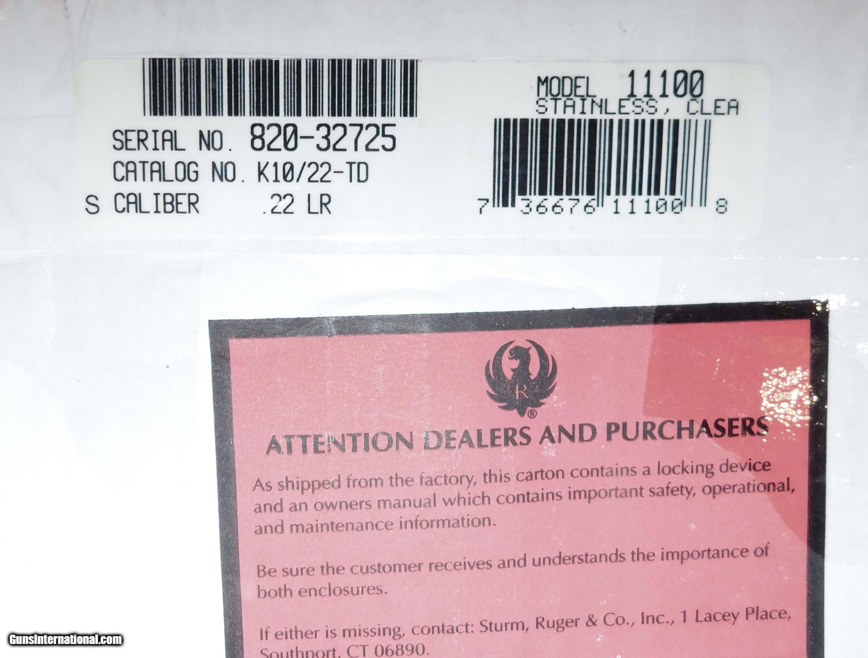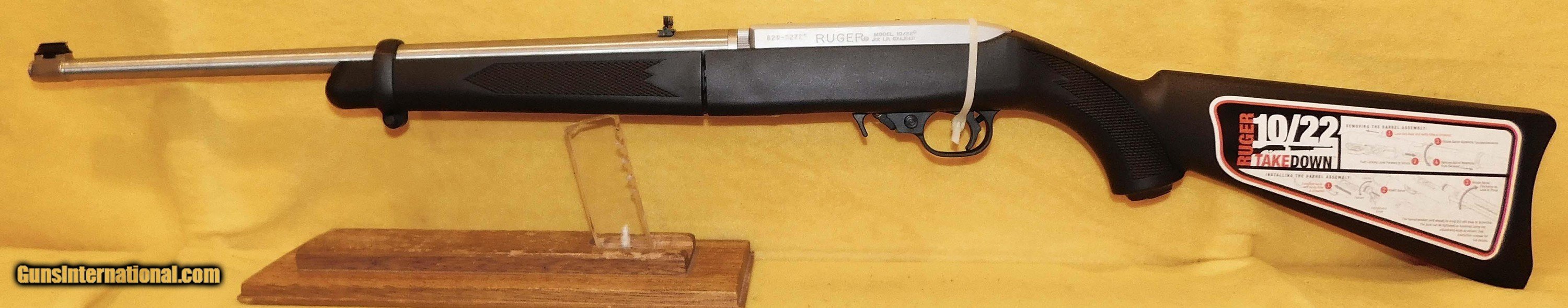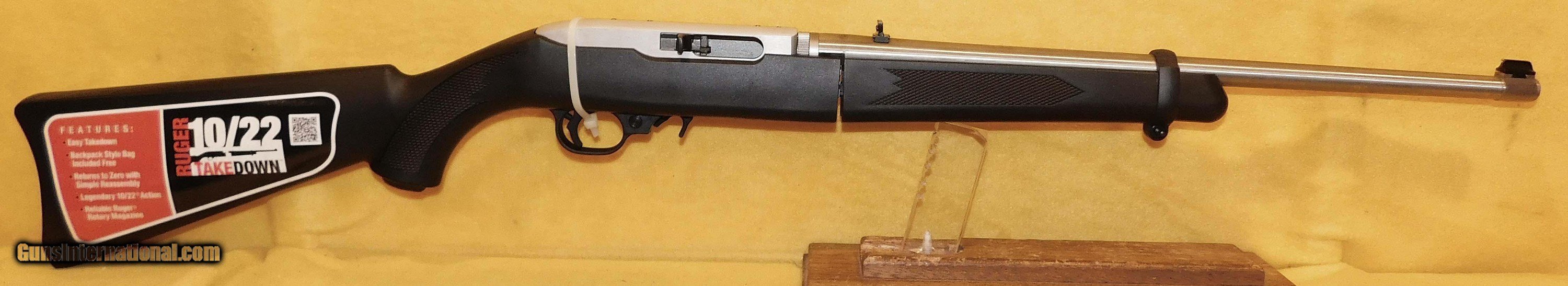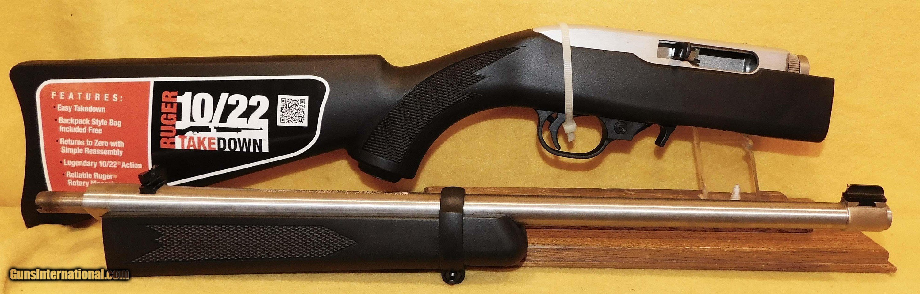 Description: RUGER 10-22 TAKEDOWN IN .22 L.R. CAL., WITH 18.5" BARREL. COLOR STAINLESS STEEL. CONDITION 98% LIKE NEW UNFIRED. SERIAL NUMBER 820-32725. RUGER MODEL 10/22 TAKEDOWN IN .22 L.R. CALIBER, COMES WITH ONE TEN ROUND FACTORY MAGAZINE, BACK PACK, BOX AND PAPERS, 98% LIKE NEW UNFIRED OVERALL CONDITION, OUR STOCK # D3186 SOLD |