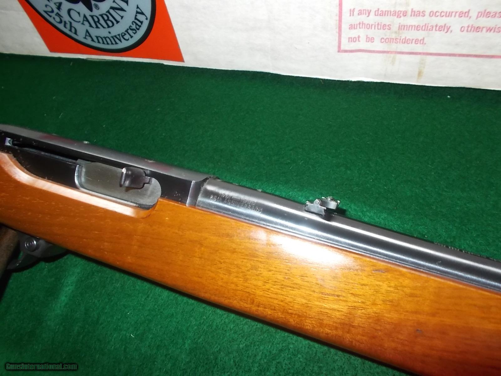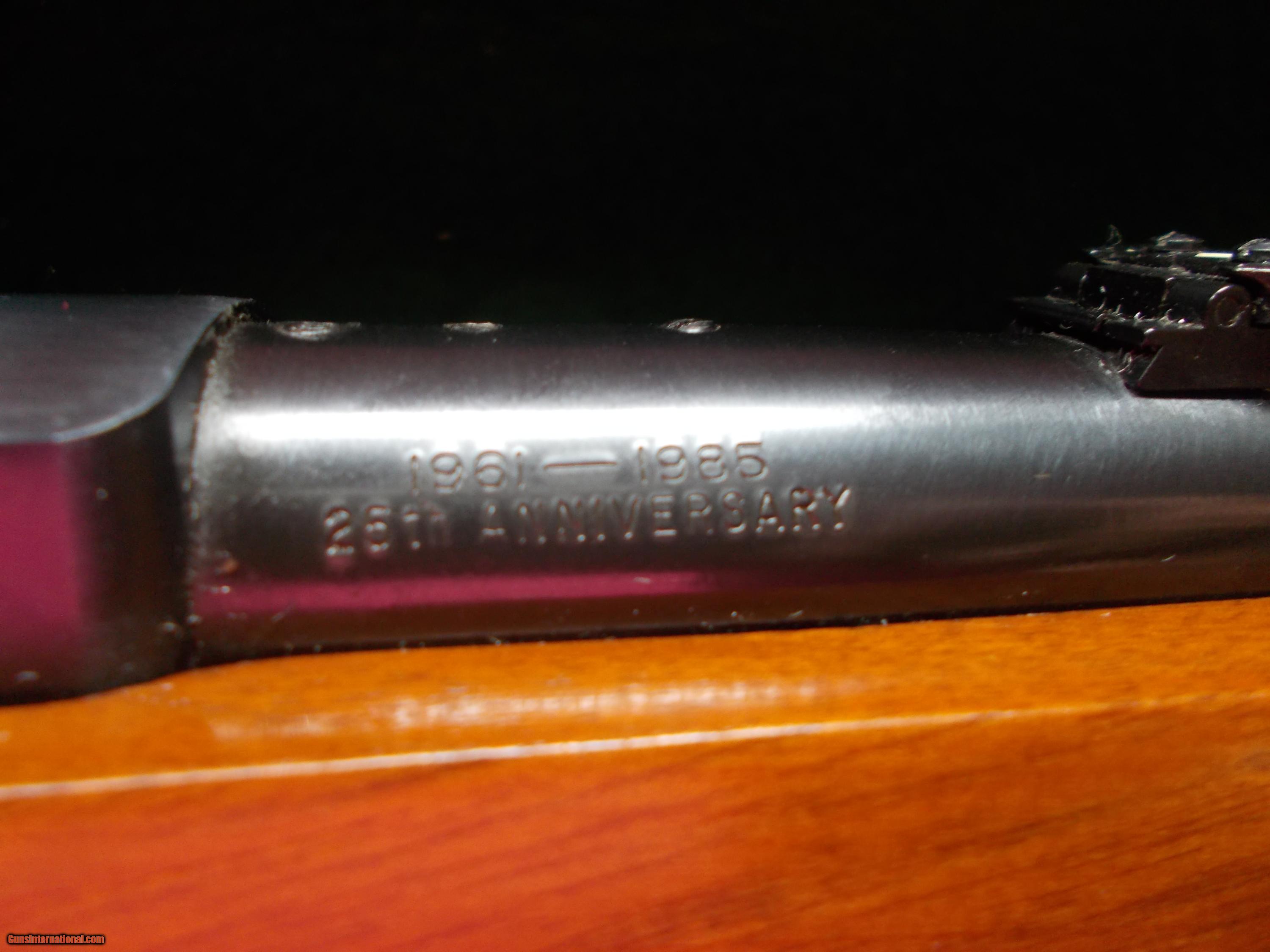 Description: 25 Anniversary (1961-1885), 4 shot, 18 1/2" bbl., commerating info. etched in bbl. & silver medallion in stock, 99% blue, some minor handling, (light pecks), As new in box with all paperwork, warrenty & manual SOLD |