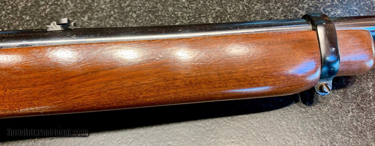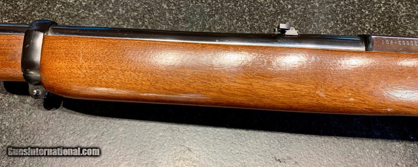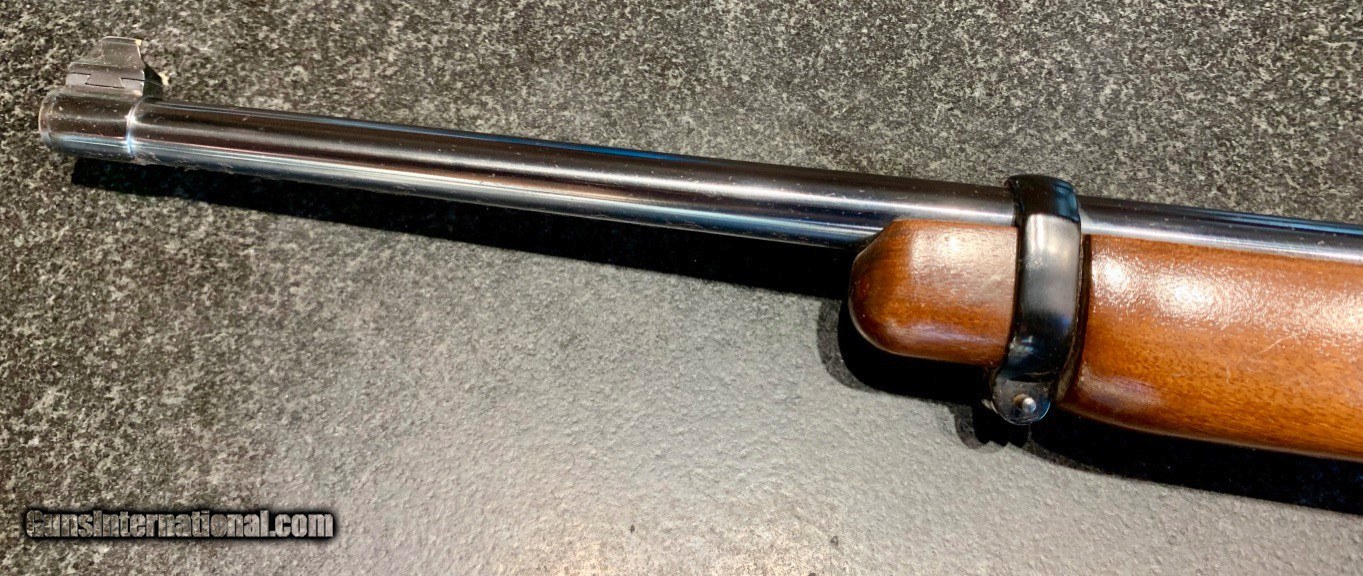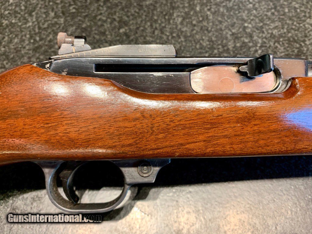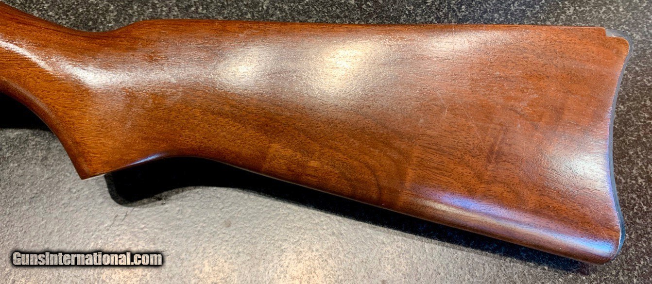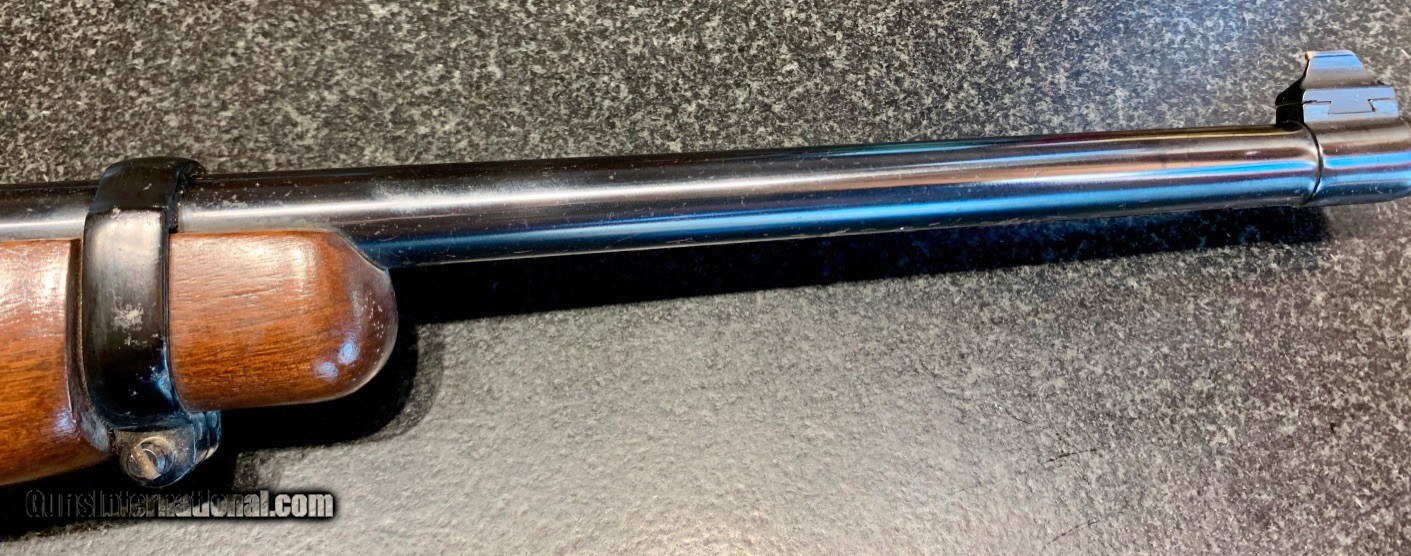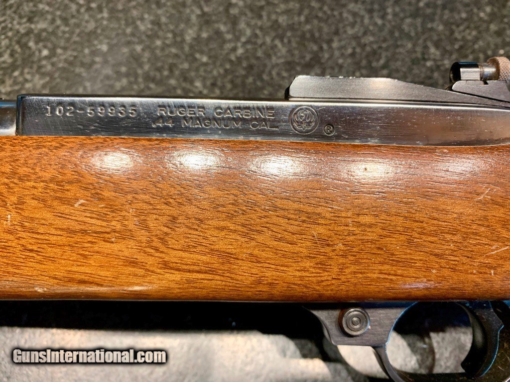Description: Used Ruger Model 44 semi-auto carbine chambered in .44Magnum. Originally manufactured in 1978. Comes with Williams Peep Sight as well as Ruger folding leaf rear sight. 18.5" barrel, factory bright blued exterior. Excellent condition throughout: bore, internals and exterior. 4 round internal magazine. Handy brush rifle for hog hunting, eastern US deer hunting or farm and home protection. SOLD Rifle Caliber: .44 Magnum Manufacturer: Sturm, Ruger & Co. Model: Standard Model 44 Carbine Serial Number: 102-55935 Barrel Length: 18.5 Condition: NRA Excellent Metal Condition: Excellent Wood Condition: Excellent Bore Condition: Excellent Action: Semi-Automatic Finish: Bright Blue Sights: Williams Peep Rear Sight |