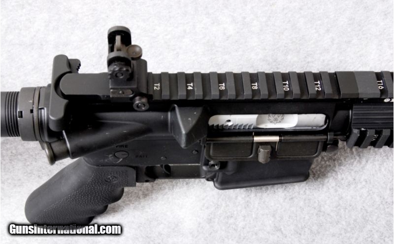 Description: SOLD Caliber Info: 5.56. Metal Condition: Black receiver, forward assist, dust cover, fire/safe, rubber grip, and ambidextrous magazine release. Bore Condition: Excellent. Barrels: 16" barrel. Triggers: Pull. Stock: Non-collapsable stock with a sling ring. Stock Dimensions: LOP: 13 3/4". Fore End: 4-Picatinney rail fore end. Butt Pad: Checkered steel. Sights: Pop-up sights front and rear on a Picatinney rail. Extras: Has the original box. Item Location: Kansas City, KS |
