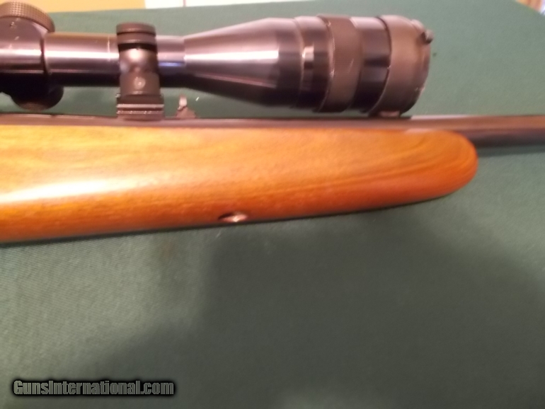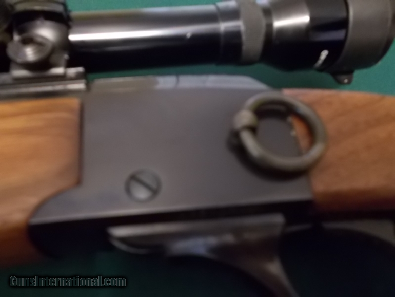 Description: 22" bbl., folding rear, absent front due to taget /varmit scope, saddle ring receiver, concealed swivel tap holes (factory), nicely figured American walnut, scalloped steel buttplate, 98%+ overall blue, lightest of handling, Tasco 12x X 40x fixed with 300 yard abjustable objective SOLD |