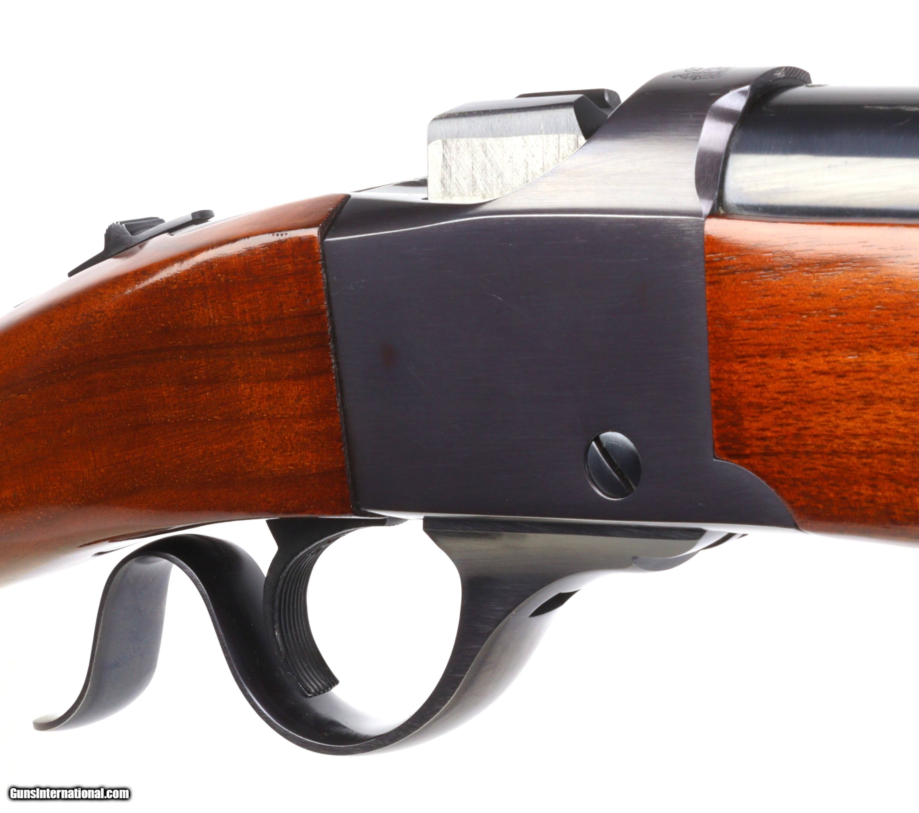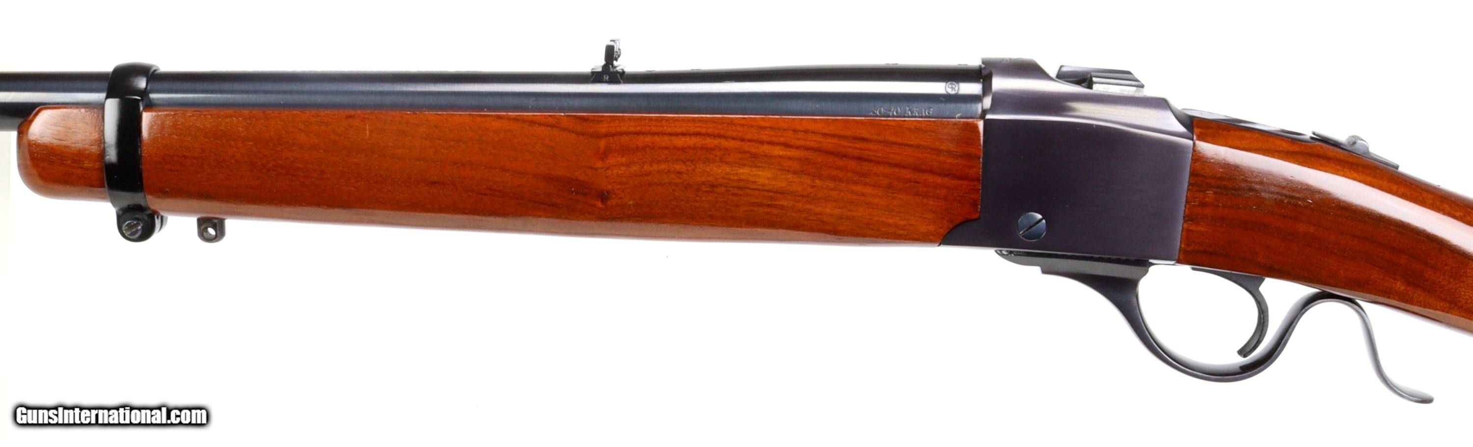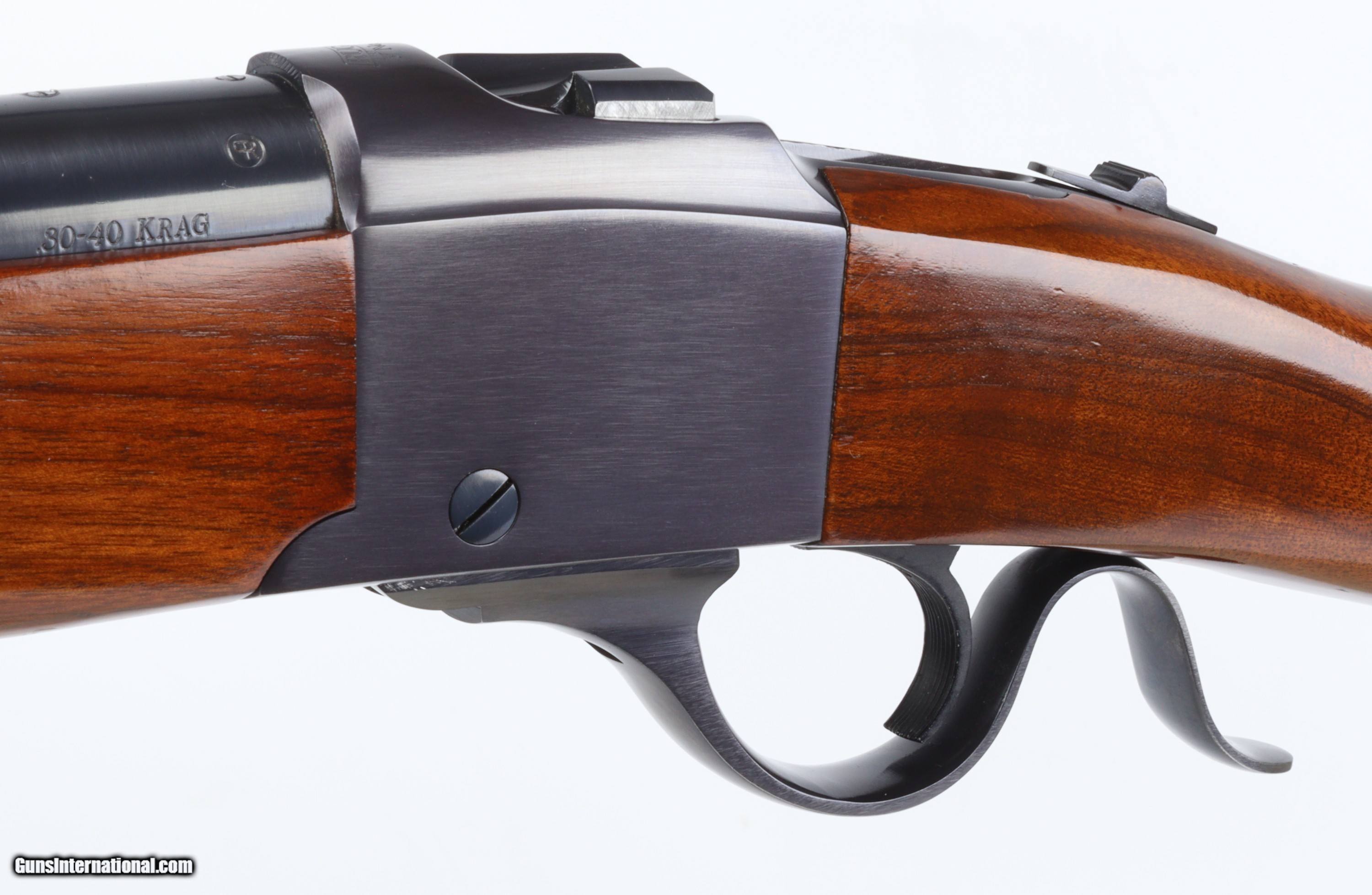 Description: RUGER #3 Carbine, 30-40 Krag, 22" Barrel, SN#130-53424, Mfg: 1986, "Gun Appears Unfired", Weight: 7lbs, 2ozs, Trigger Pull: 2lbs, 12ozs. The First of the Single shot Rugers, Rare Caliber. Ships to Lower 48, w/Insurance: $55.00 Sold Pending Receipt of funds SOLD |