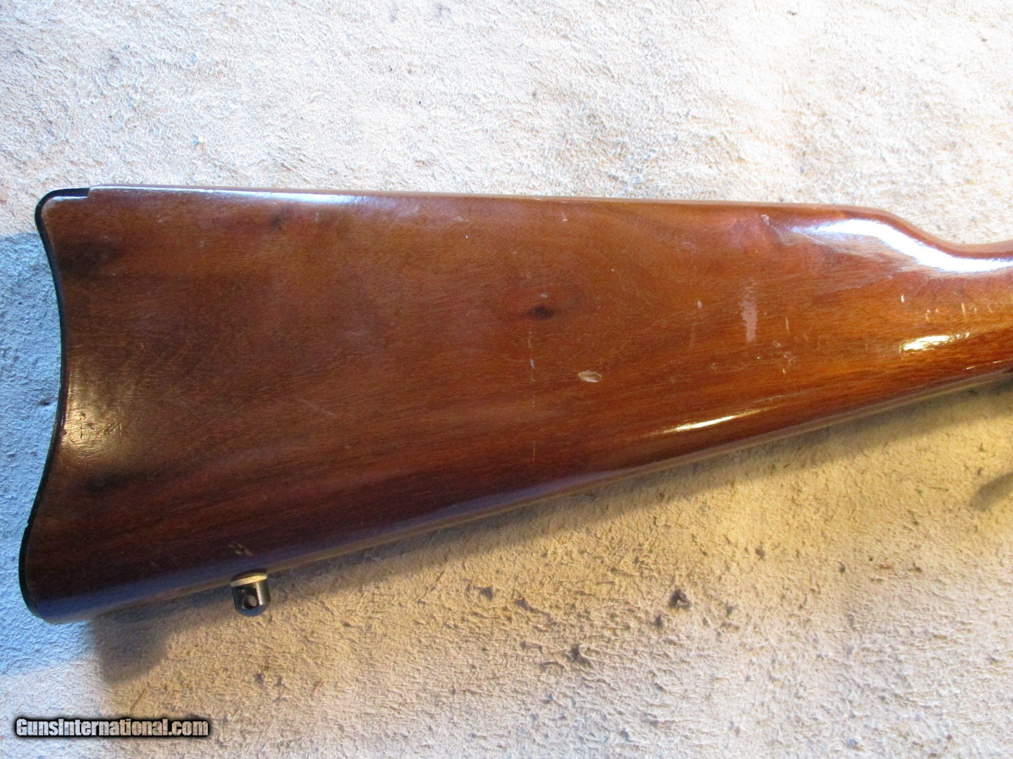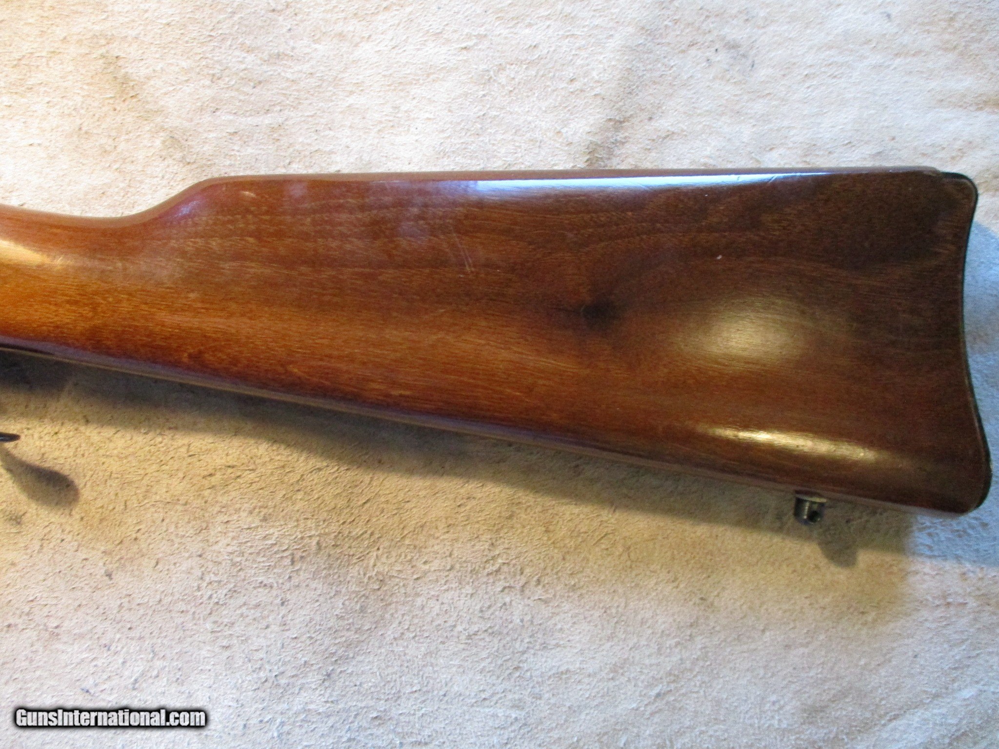 Description: Ruger Number 3, 45/70, 22" barrel. SN is 130-548xx, made in 1975. Factory finish on both wood and metal, fatory butt plate. No rust, no cracks, perfect bore. Nice clean classic gun. We will trade for silver and gold. We accept personal check, any certified funds, Venmo or Zelle. We can also take your credit card, +3%. Email me if you would like these pictures sent to you, they will come through bigger and better than on the listing page here. We do offer Layaway. Our standard terms are 25% down, 90 days. Initial deposit is not refundable. Email me with any questions. Please check your local laws to confirm it is legal to own in your state! Buyer pays $60 shipping and insurance in a brand new PLANO hard case to your FFL in the lower 48. AK, HI or PR is extra. I will ship to California, as long as it is legal, NO PROBLEM! All my guns come with a non-firing, 3 day unconditional return privilege, from the day UPS delivers to your dealer. Buyer pays shipping both ways if the gun comes back. Please make sure to make it to your FFL to inspect within the 3 days. I am a licensed FFL, and will include a copy of my FFL with the gun for your dealer’s records. I will ship to a C&R if the gun is eligible. I will ship to California, but you need to confirm the gun is legal where you are, California or other. WE BUY AND CONSIGN GUNS AND GUN COLLECTIONS! We will travel to pick up collections! I am always looking for good clean, old original Winchesters to buy, consign, or trade, especially Pre '64's model 70's and model 54's. WE ALSO TRADE FOR CLASSIC CARS AND TRUCKS! We also trade for gold and silver. SOLD Rifle Caliber: .45-70 Government Manufacturer: Ruger Model: 3 Barrel Length: 22 Condition: Used |