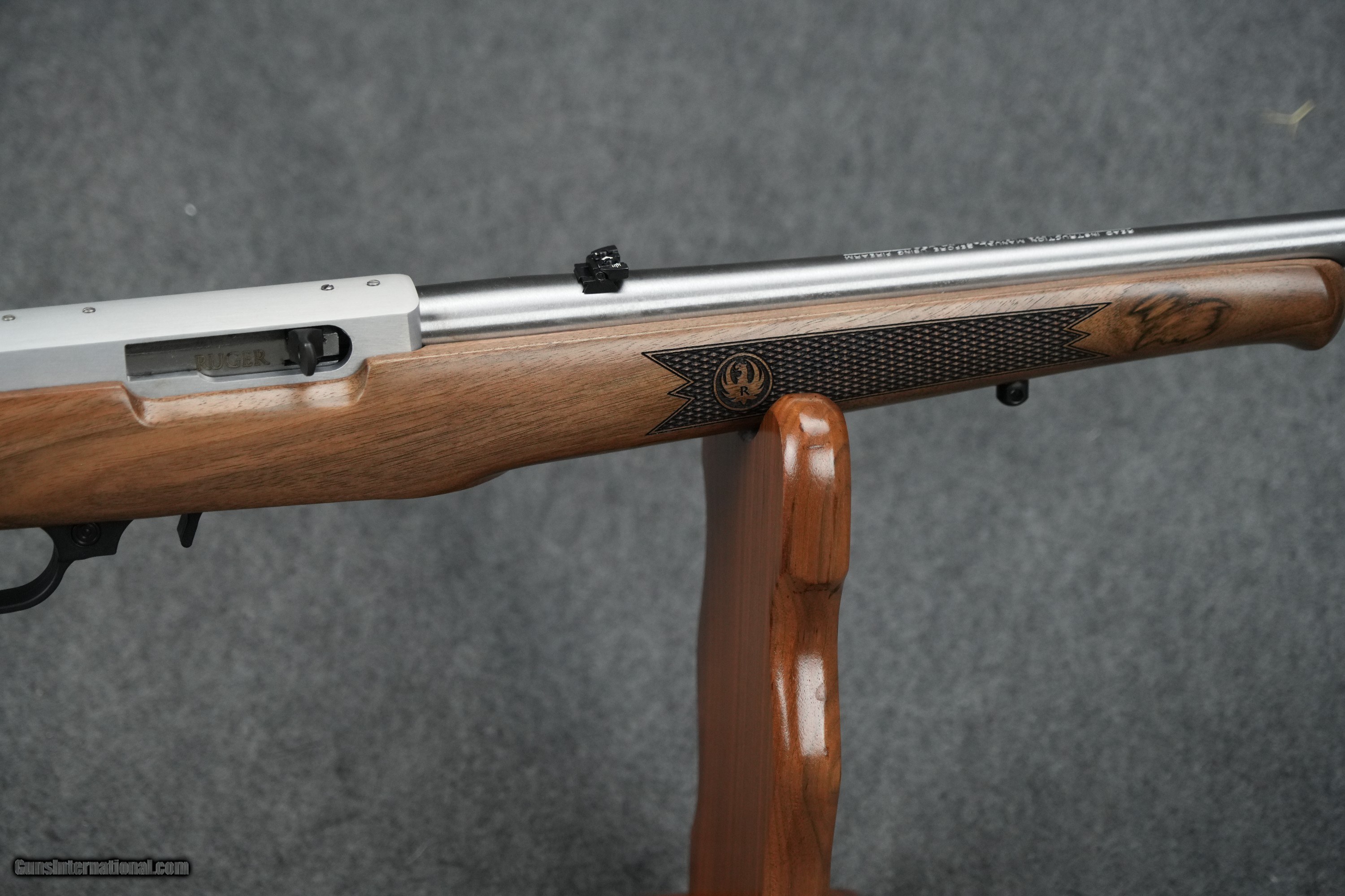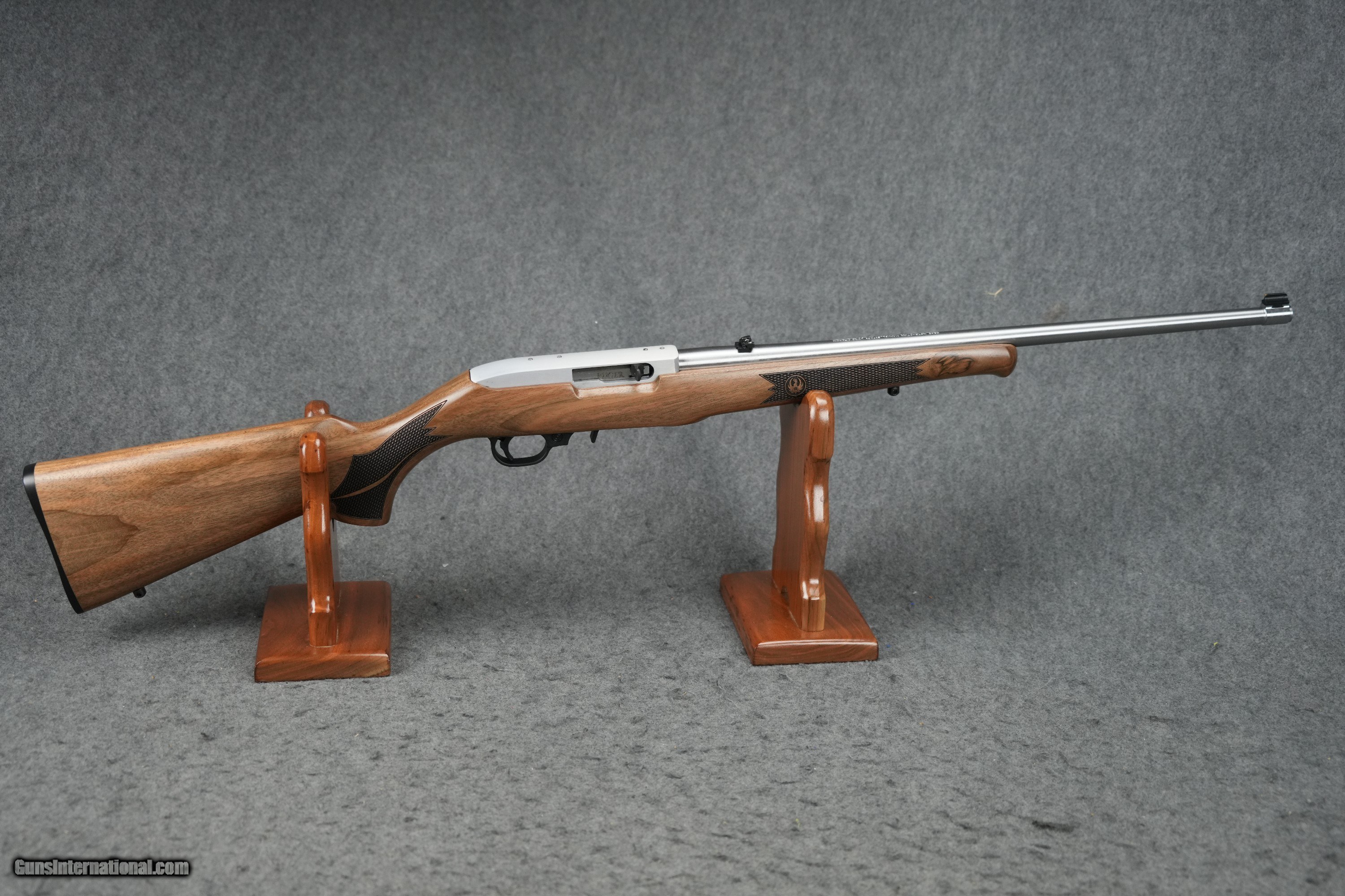 Description: ***BRAND NEW IN BOX*** ***The firearm pictured is the ACTUAL gun for sale! All images are of the ACTUAL item, unless specified otherwise. The item seen is the item you will receive. *** Product Description For over 50 years, the ubiquitous 10/22® has been America’s favorite .22 rifle. With proven performance, a legendary action and a renowned, reliable rotary magazine, the 10/22® has inspired a loyal following for over half a century. Safety: Cross Bolt Frame Finish: Stainless Steel Drilled & Tapped: Yes Front Sight: Gold Bead Rear Sight: Adjustable Weight: 5.7 lbs. Firearm Stock: Deluxe Altamont French Walnut Finish: Stainless Magazine Count: 1.00 Frame Material: Stainless Steel Scope Base: Scope Base Adapter Magazine Type: Detachable Rotary Magazine Barrel Configuration: Single Rifled Barrel: Yes Forend Rail: Schnabel Forend Sling Attachment: Yes Buttplate/Recoil Pad: Black Plastic SOLD Rifle Caliber: .22 Long Rifle Manufacturer: RUGER Model: 10/22 Sporter Barrel Length: 20" Barrel Condition: BRAND NEW |