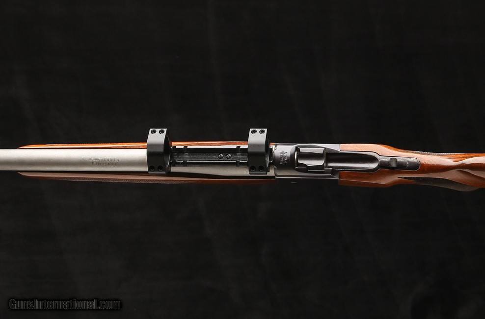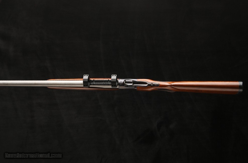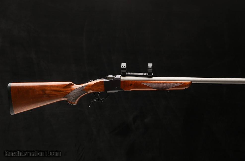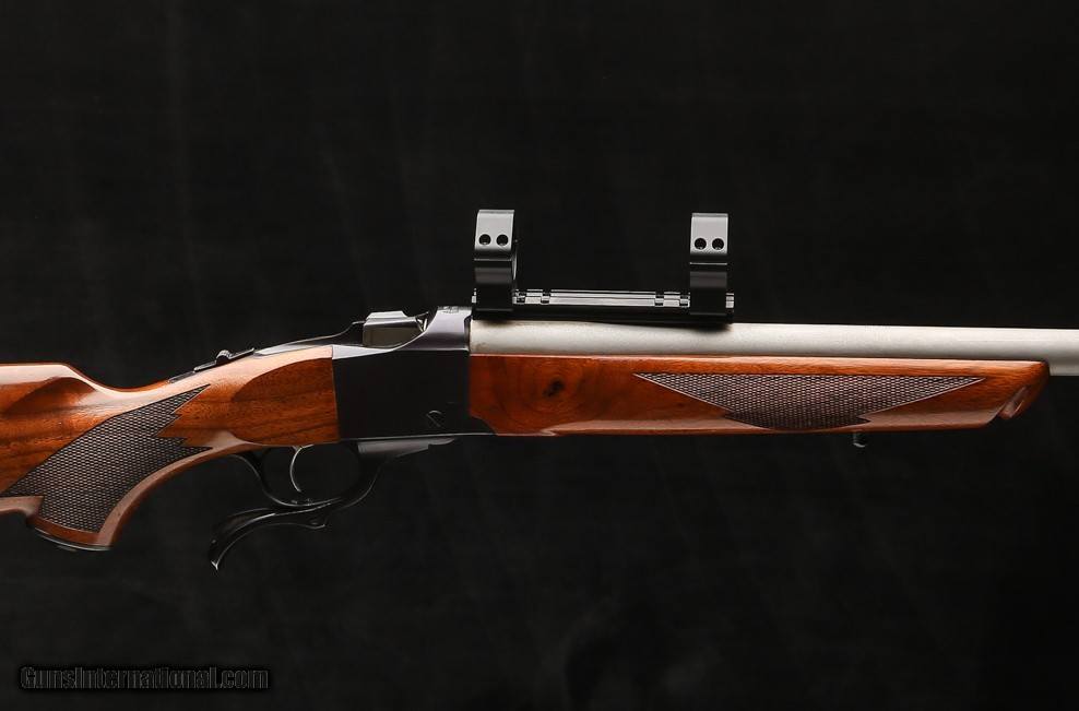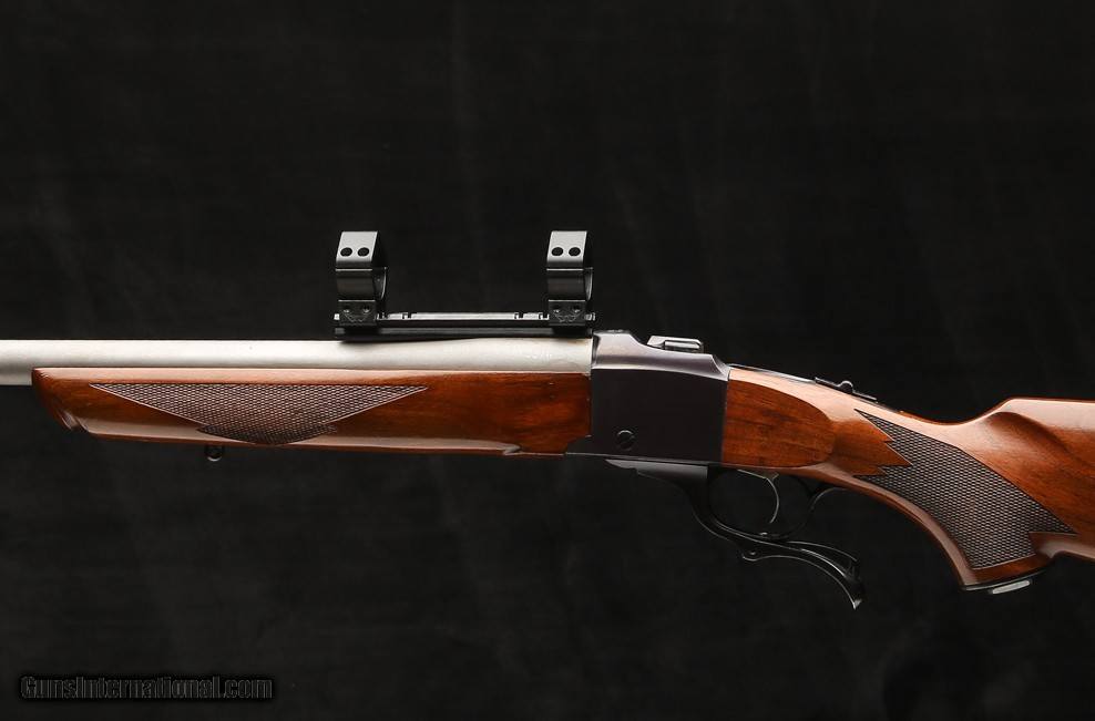Description: Ruger #1 22-6 features an American walnut stock, with an Alex Henry forend, it has been re barreled by McCullough Rifle Co with a stainless barrel in wildcat 22/6 caliber, Ruger logo grip cap, front and rear ball sling swivels, ½" black rubber butt pad, classic checkering, fitted with a picatinny rail and 30mm rings. Bore is perfect Price: $995.00 Contact Seller |