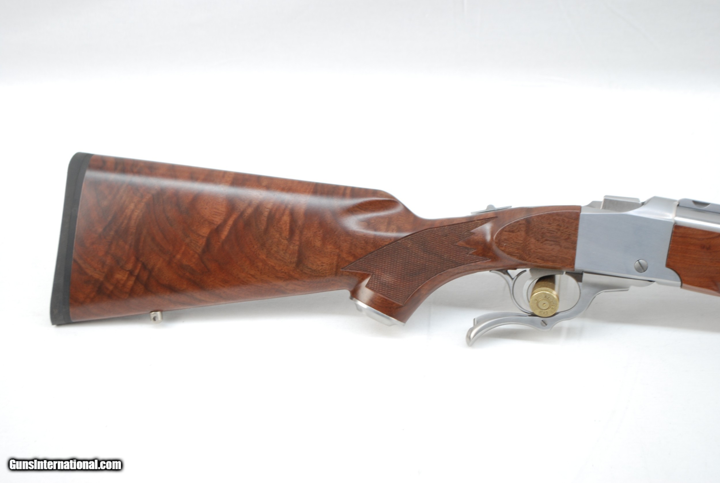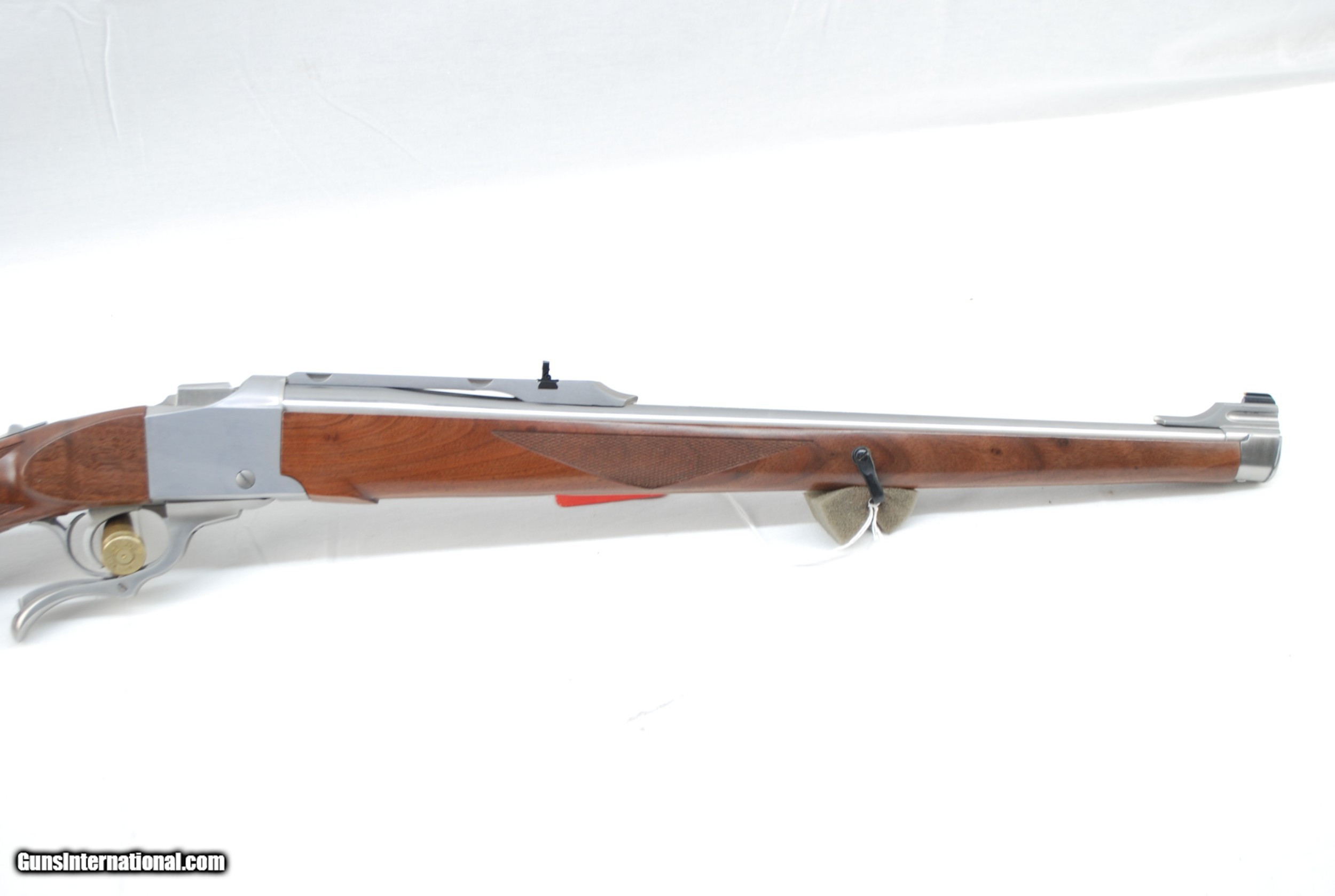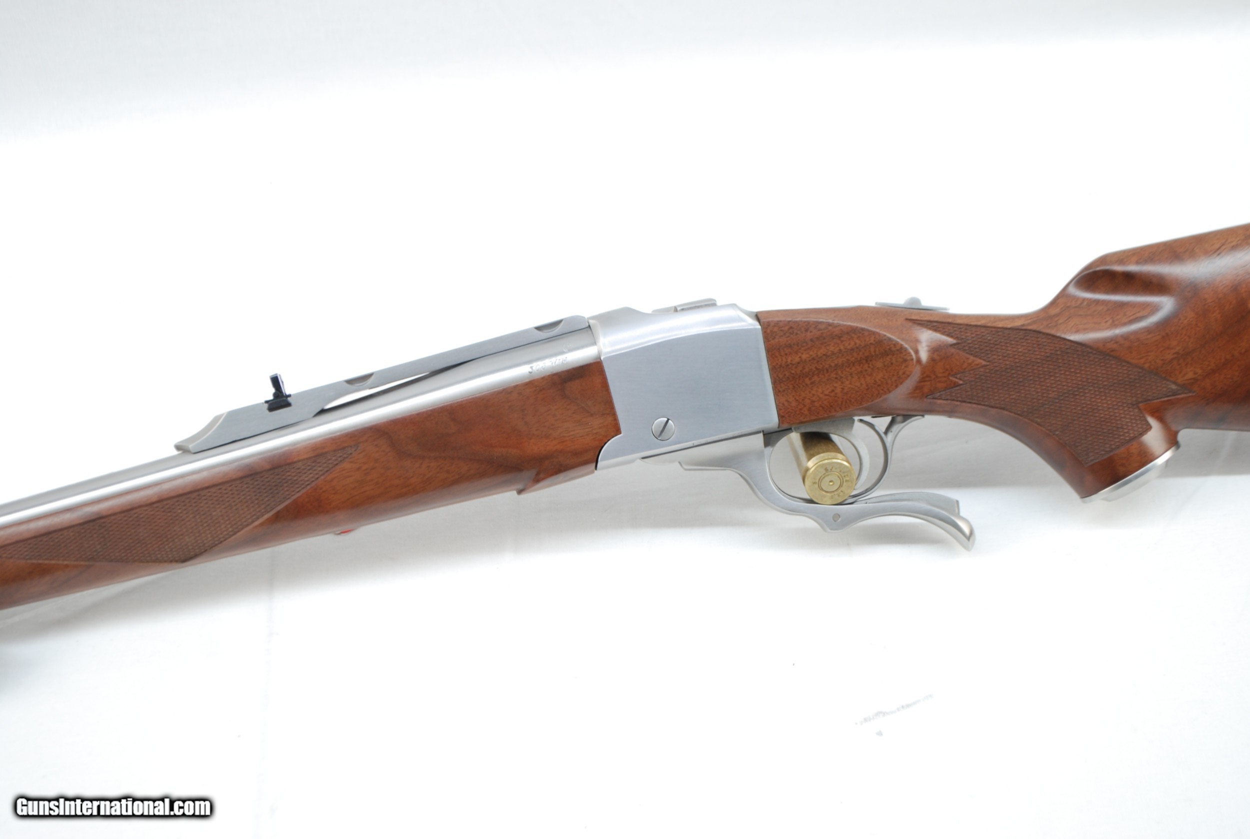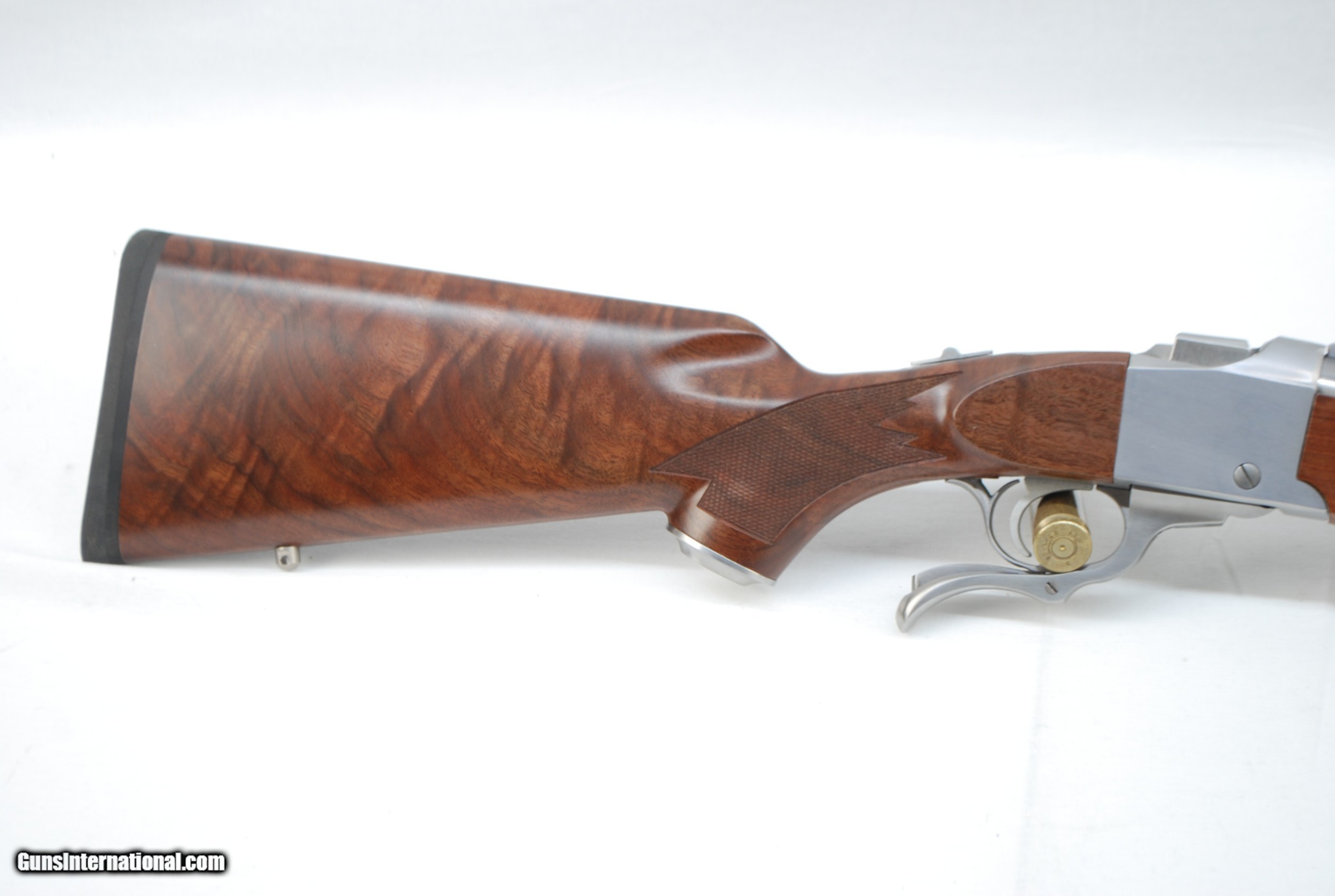 Description: Ruger #1 RSI-K chambered in .308. Rifle has a 20" barrel and stainless receiver and barrel. Rifle has a dark wood full length Mannlicher style forend and stock. NIB, layaway is available and check our other listings for more fine firearms. 4% fee if paying by card and a 3 day non firing review on all purchases. SOLD |