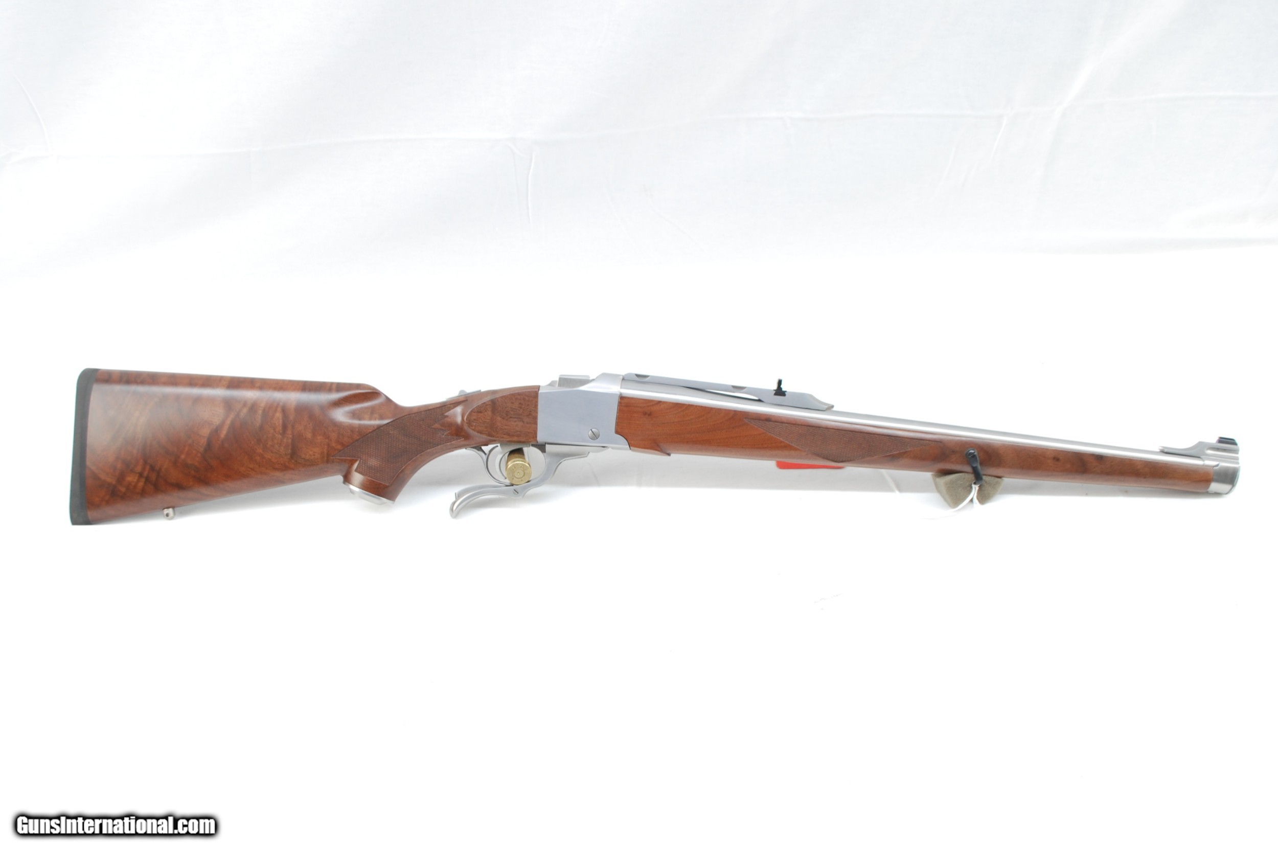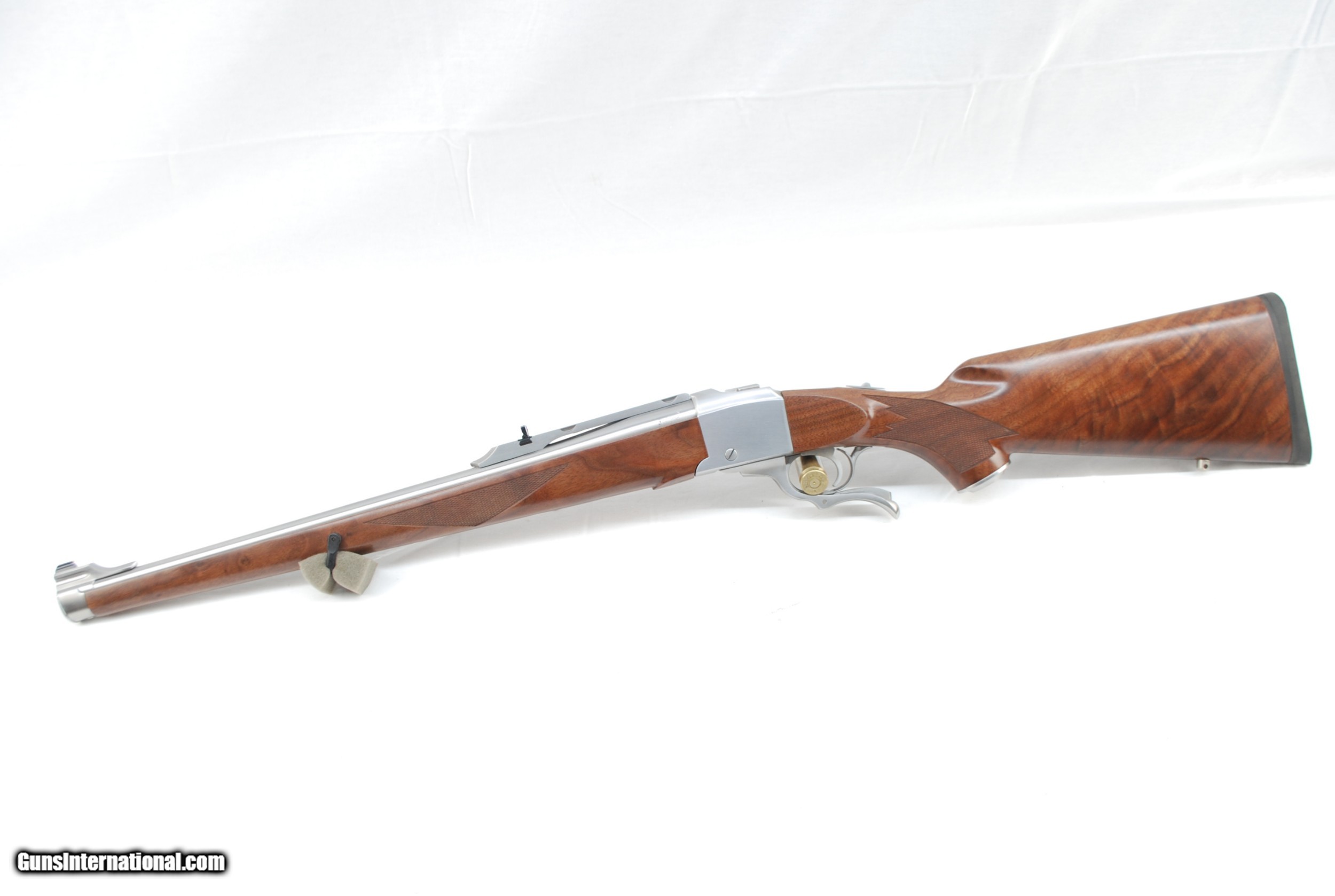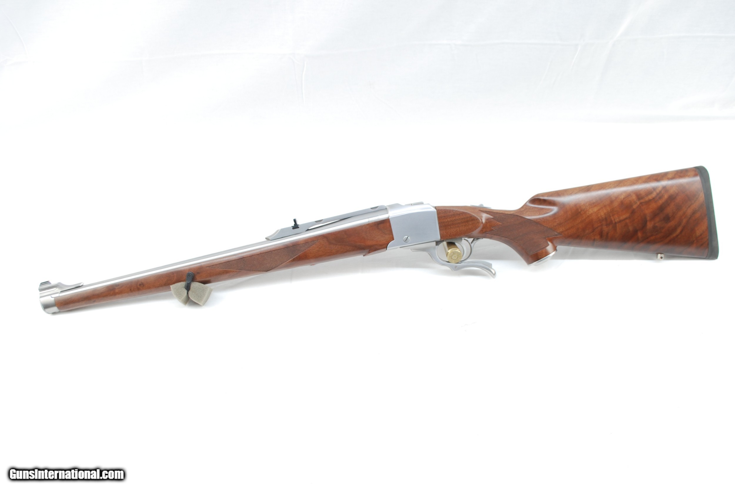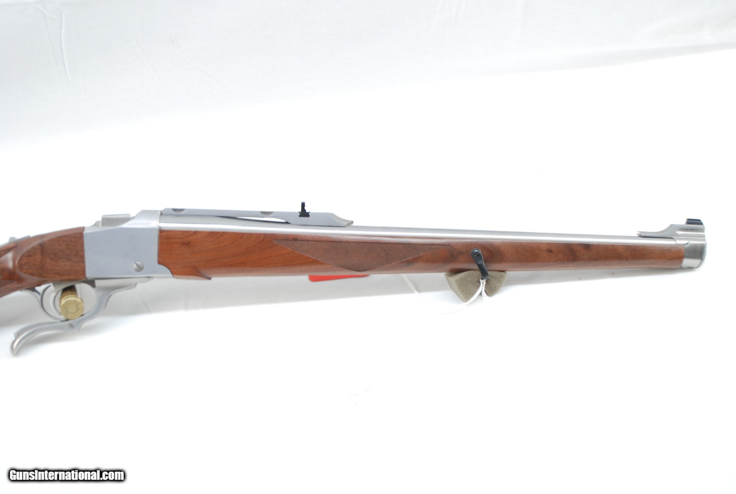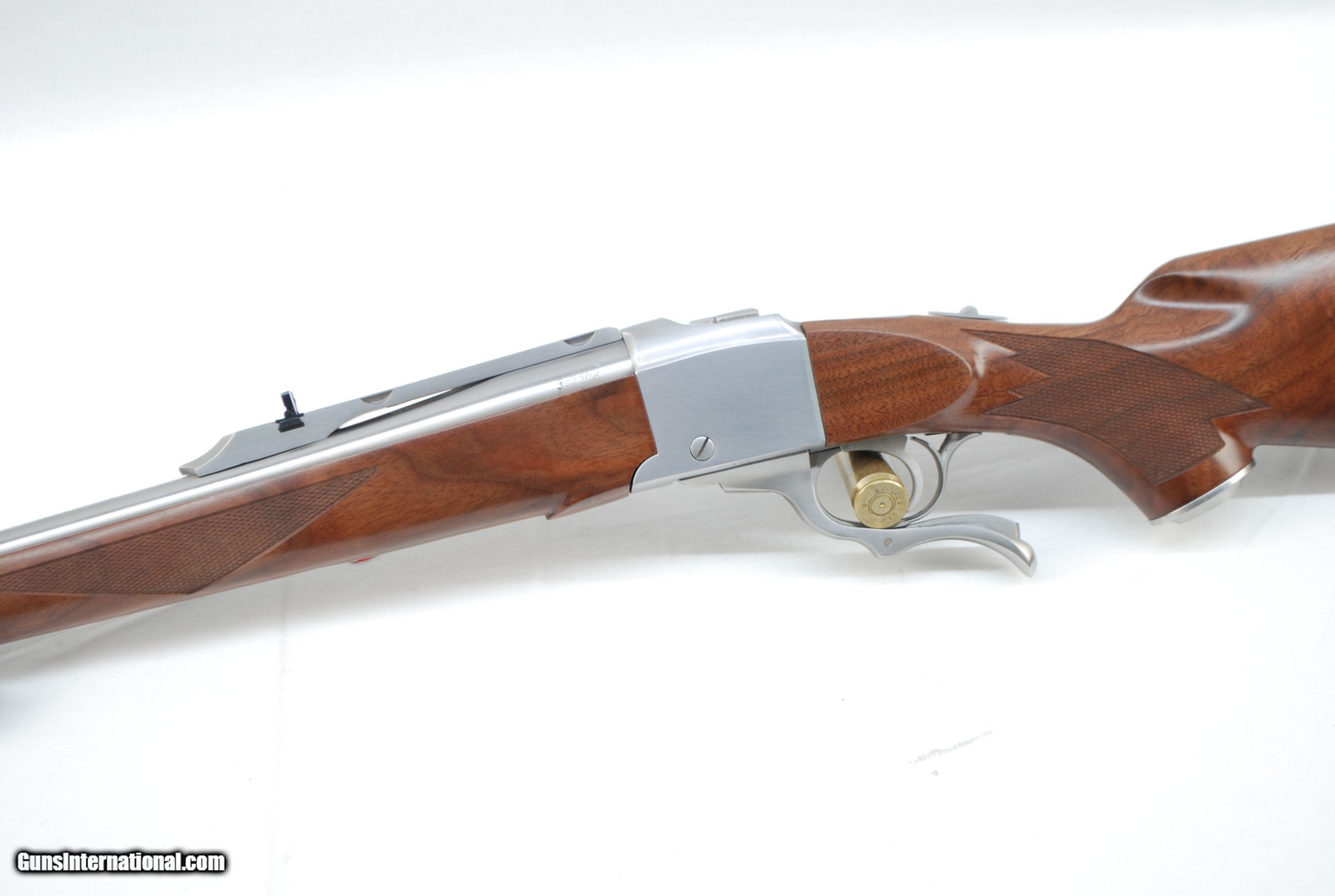 Description: Ruger #1 RSI-K chambered in .308. Rifle has a 20" barrel and stainless receiver and barrel. Rifle has a dark wood full length Mannlicher style forend and stock. NIB, layaway is available and check our other listings for more fine firearms. 4% fee if paying by card and a 3 day non firing review on all purchases. SOLD |