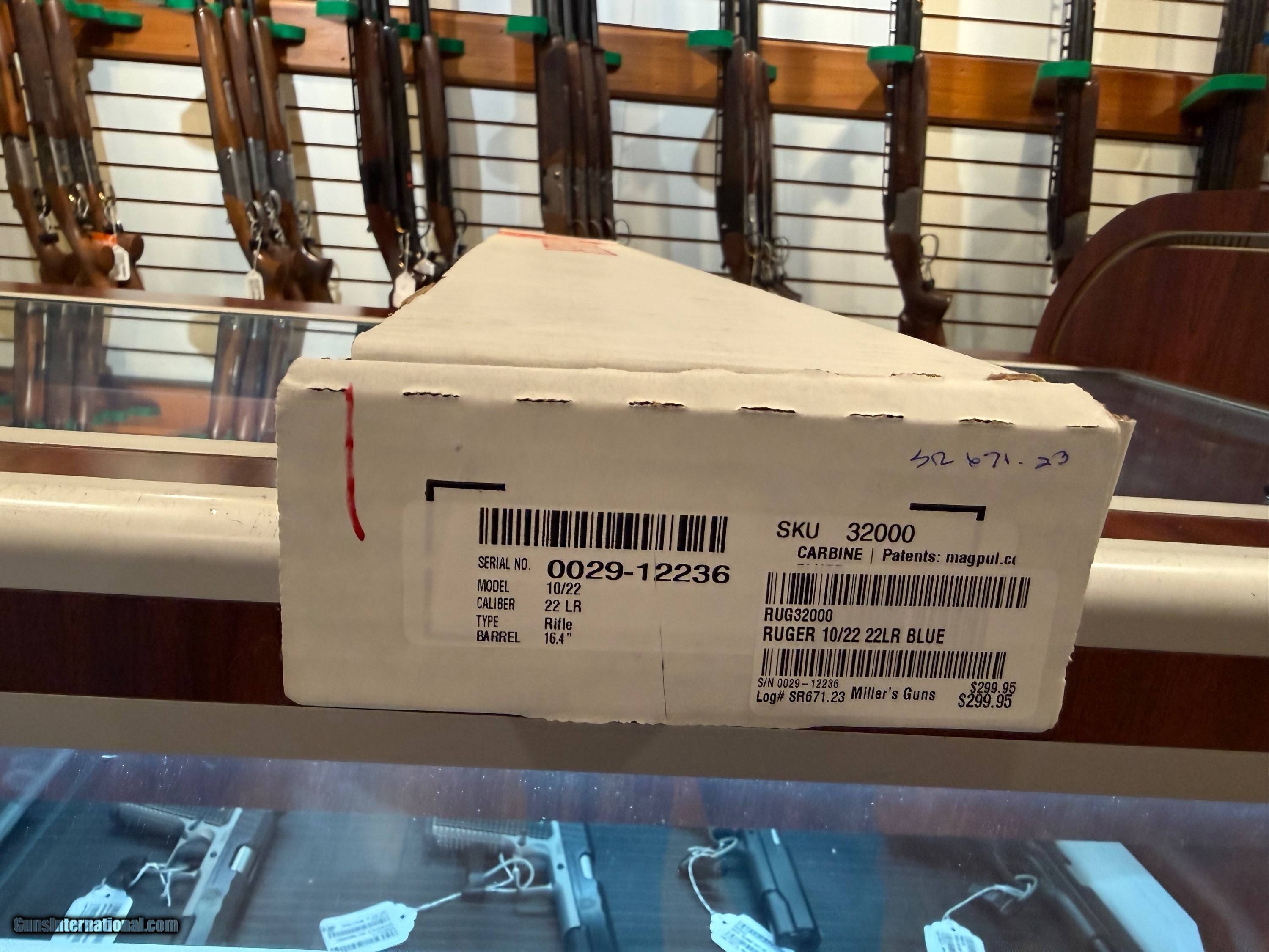 Description: Ruger 10/22 #32000 .22lr Semi auto 10 round capacity (1) magazine included Improved BX trigger Rifle Caliber: .22 Long Rifle Manufacturer: Ruger Model: 10/22 Serial Number: 0029-12236 Barrel Length: 16.40 Condition: NEW Price: $299.95 Contact Seller |