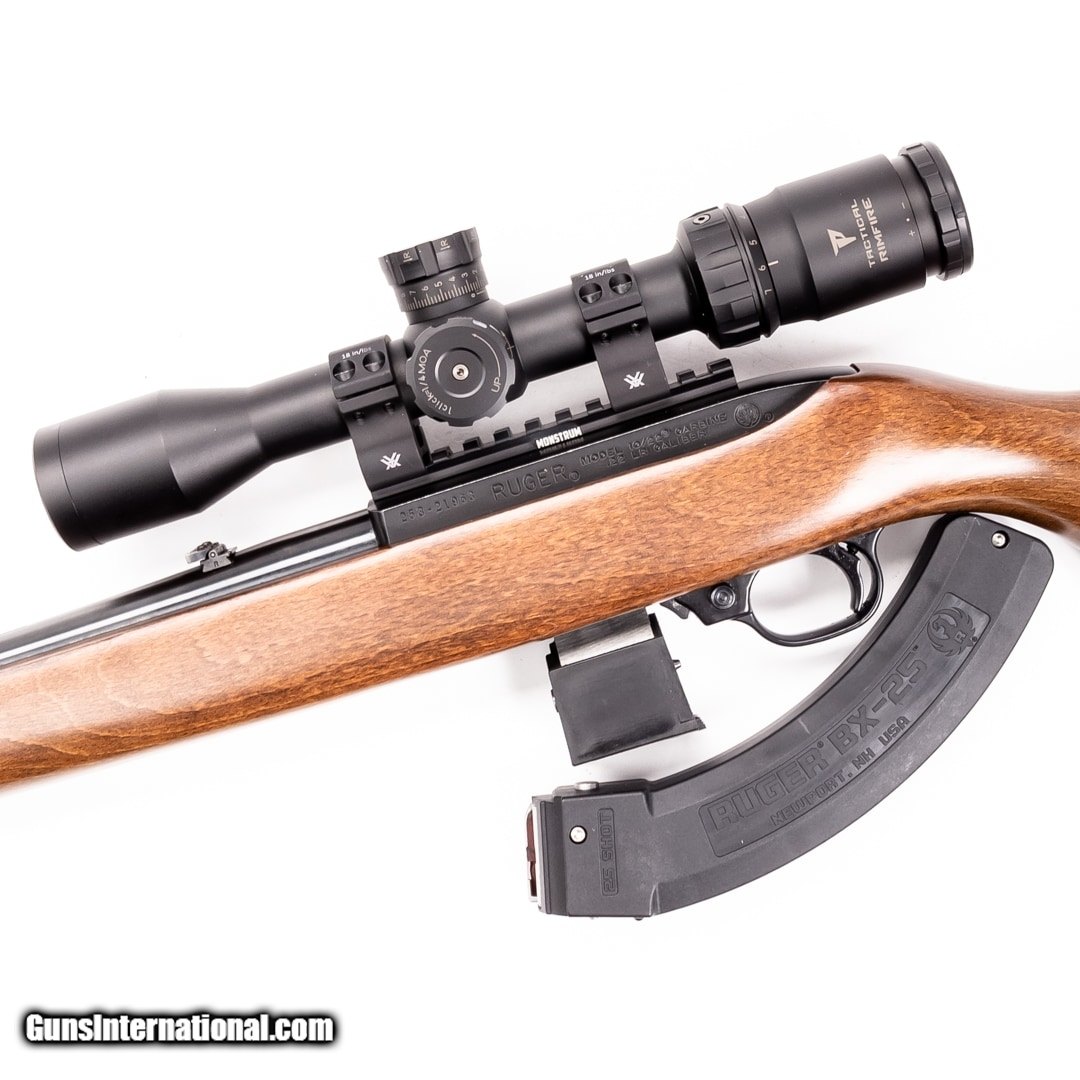 Description: The Ruger 10/22 is by far one of the most popular rifles in the U.S., with a staggering 5 million sales since its introduction. There are countless aftermarket upgrades available for the 10/22, they use affordable yet reliable magazines, and are overall considered to be worth every penny. If you are in the market for a rifle chambered in 22 LR, this Ruger 10/22 Carbine is a great buy. This model is in very good condition, with minor dent marks in the stock. It has a Monstrum-Ruger 10/22 Picatinny rail mount, a Nikon P- tactical rimfire 2-7x32 scope, and Vortex Pro Series scope rings. Purchase also includes two 10-round Ruger rotary magazines and one 25-round Ruger BX-25 magazine. SOLD Manufacturer: RUGER Model: 10/22 CARBINE Caliber Info: .22 LR Condition: used Barrels: 18.5 BARREL Finish: BLACK |