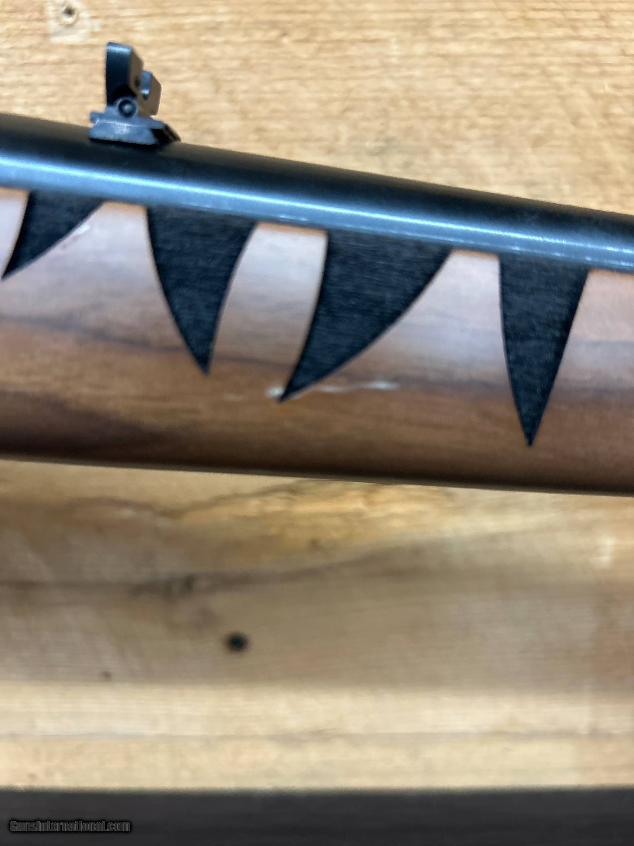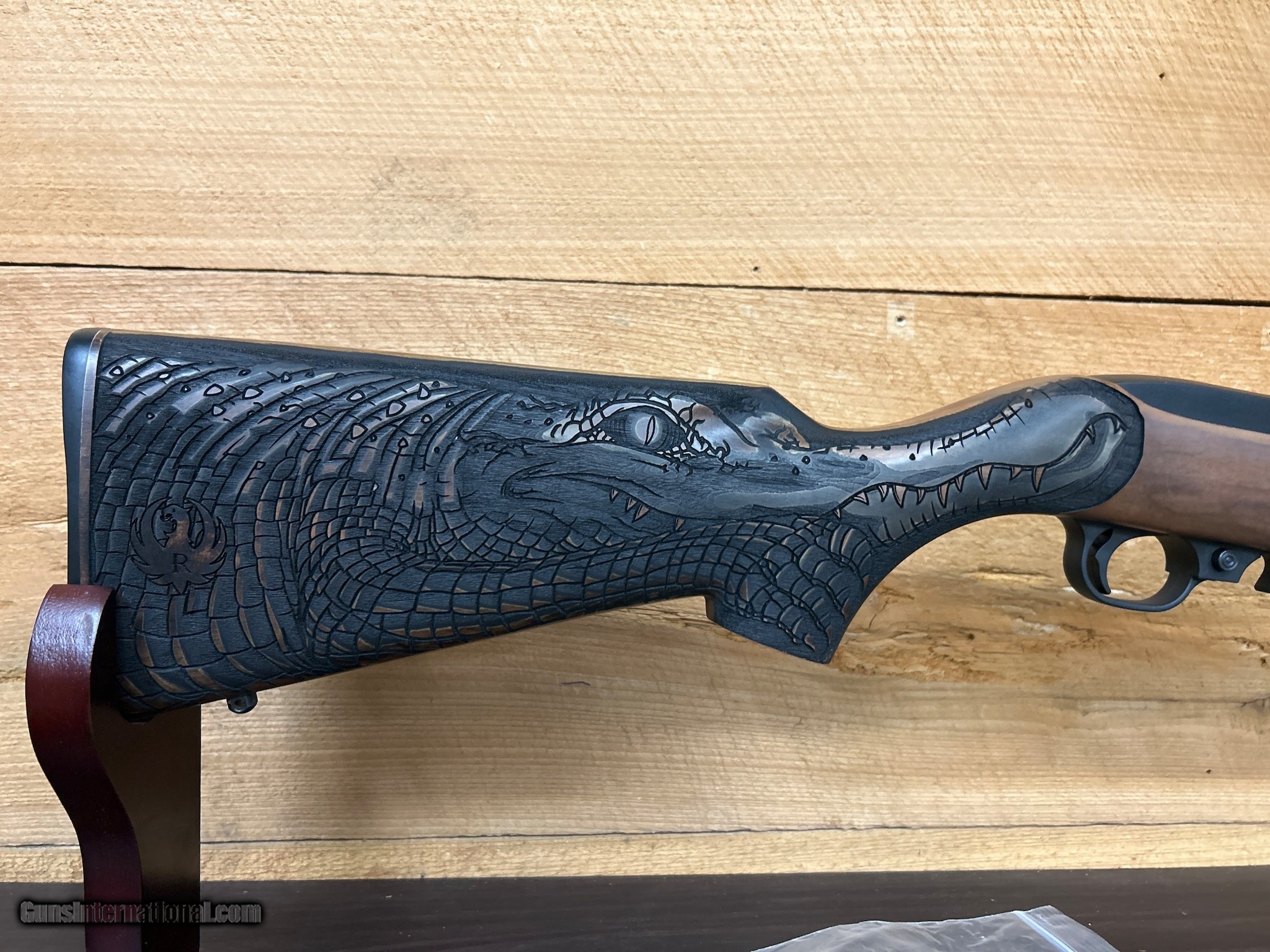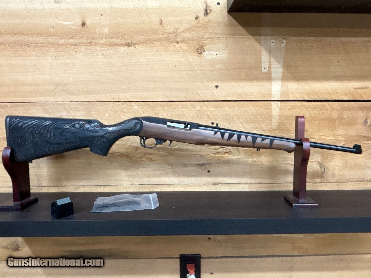 Description: Guns Listing ID: 746439 Never fired, safe kept so it has a ding in the stock. Box, mag, paperwork and original lock included. Has rail for scope mounting. SOLD Manufacturer: RUGER Model: 10/22 GATOR Caliber Info: .22 LR Condition: Used - Non-Certified Barrels: 1.9 BARREL Finish: WOOD, BLUED STEEL |