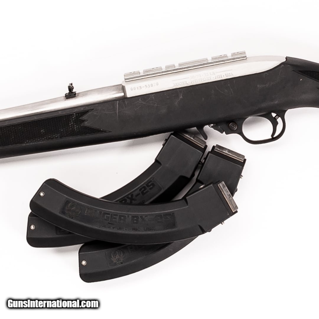 Description: Guns Listing ID: 328300 With a staggering 5 million sales since its introduction, the Ruger 10/22 is, by far, one of the most popular rifles in the US. There are countless options for aftermarket upgrades on the affordably-priced 10/22. If you are in the market for a 22-caliber rifle, this Ruger 10/22 is, by all accounts, one of the best options. This model is in very good condition, with marks on the stock and receiver and polishing marks on the barrel. One 10-round magazine and three 25-round magazines are included. SOLD Manufacturer: RUGER Model: 10/22 Caliber Info: 22 LR Condition: Used - Certified Barrels: 18.5 BARREL Finish: STAINLESS |