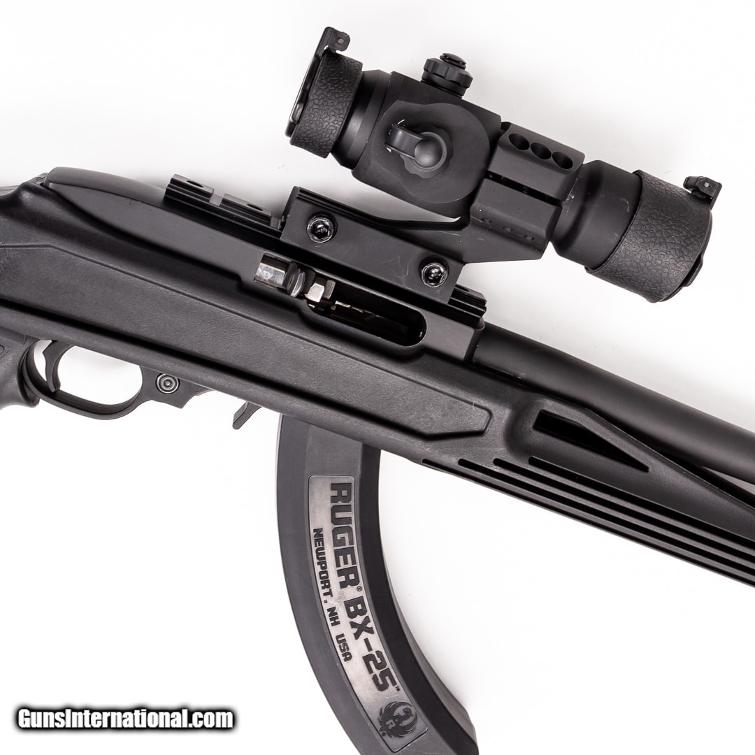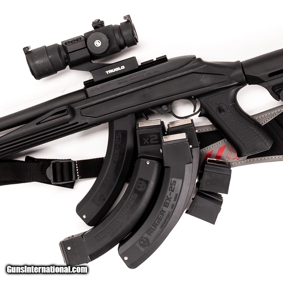 Description: Guns Listing ID: 328767 The Ruger 10/22 is one of the most popular rifles in America with a staggering 7 million produced since introduction. This listing has a Blackhawk Axiom 6-position stock, Truglo optic (needs battery but works), 2-10 round Ruger mags, 3-25 round Ruger BX mags, a Ruger BX25 round coupled mag, and the original gray stock. SOLD Manufacturer: RUGER Model: 44491 Caliber Info: .22 LR Condition: Used - Certified Barrels: 18.5 BARREL Finish: BLACK |