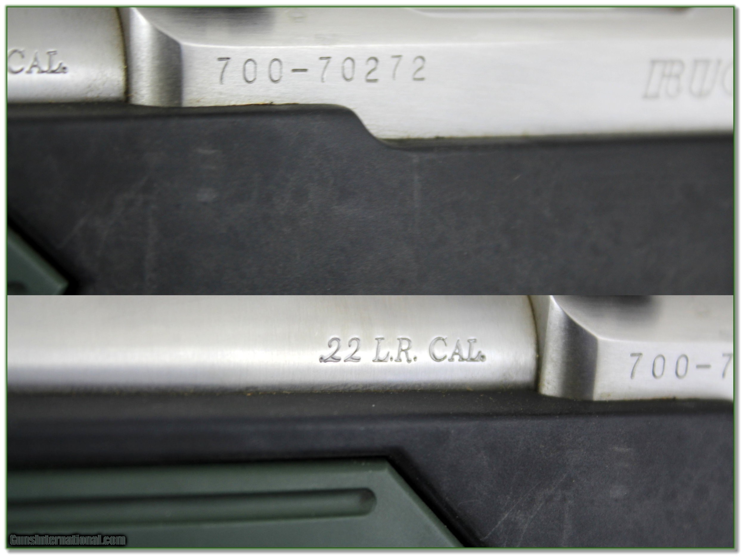 Description: This is an excellent condition and very hard to find Ruger 77/22 All-weather Stainless Skeleton 22 with GREEN Inserts! It has factory open sights and comes with factory stainless rings. Shipping and insurance is $39. Please email me with any questions or larger pictures. (Consign your quality firearms with Shooting Investments for only 12%! Let me know if you have any you would like to sell!) 22-0050 Payment: Payment is by Money Order, Cashiers Check or Personal Check. I can now also accept Credit Cards (MasterCard, Visa, Discover & American Express) with a 3% convenience fee. Shipping: The shipping charge will be listed in each description. It is $39 for most firearms. Some heavy guns or those insured for over $2000 will be higher. Shipments to Alaska and Hawaii are higher because air shipment is required. Most firearms are shipped on Tuesday and Thursday and usually in 5 days of receipt of payment. We package all shipments carefully and insure them. Optics are shipped Priority Mail and most other non-firearm shipments are shipped First Class. Returns: Our return policy is simple. If for any reason you are not pleased with your purchase, you may return your item for a full refund of purchase price. Ammunition cannot be returned. It is important to us that you are happy. Guns cannot be fired or dissembled before returning them and they must be returned in the same condition as received. Notification of a return must occur with-in 3 days of receipt at your dealer. Shipping, convenience and dealer fees are not refundable and are the responsibility of the buyer. Lay-a-way: If needed, we offer a 60 day lay-a-way option on most firearms. It is 1/3 now, 1/3 in 30 days and 1/3 in 60 days. Lay-a-way firearm sales are final and if not completed the first payment cannot be returned. Consigning your firearms with Shooting Investments: We will help you get top dollar for your firearms. While most local guns shops charge 20% or more, our fee is only 12% with a minimum of $75. At your local gun shop it might take months to sell. Selling on-line provides instant access to thousands of interested buyers. You won’t find any other on-line dealer willing to sell your firearms for only 12% or listing every gun on 3 separate s. Selling through an House typically costs the seller 15% and the buyer an addition 15% (so 30%) and you have to wait several months to sell and longer to receive funds. If properly priced, we will sell your firearms in a few weeks. Send us an email or give us a call and we’ll explain how easy it is for you to get top dollar. Trading: Trading for use is really just buying your gun to re-sell. If you have a gun you want to trade, please email a picture and we will let you know what we can give or it. You will always get more if we sell it for you on consignment. Help for California Buyers: We are happy to ship to California. It is the buyer’s responsibility to make sure any item you buy is legal in your state. We are also happy to help with your purchase of a firearm from someone other than us. If you see a gun you would like to buy but the seller can’t or won’t ship to California they can ship to use and we’ll then ship it to your California dealer. The cost for this service is only $30 + shipping. Let us know if we can help! SOLD |