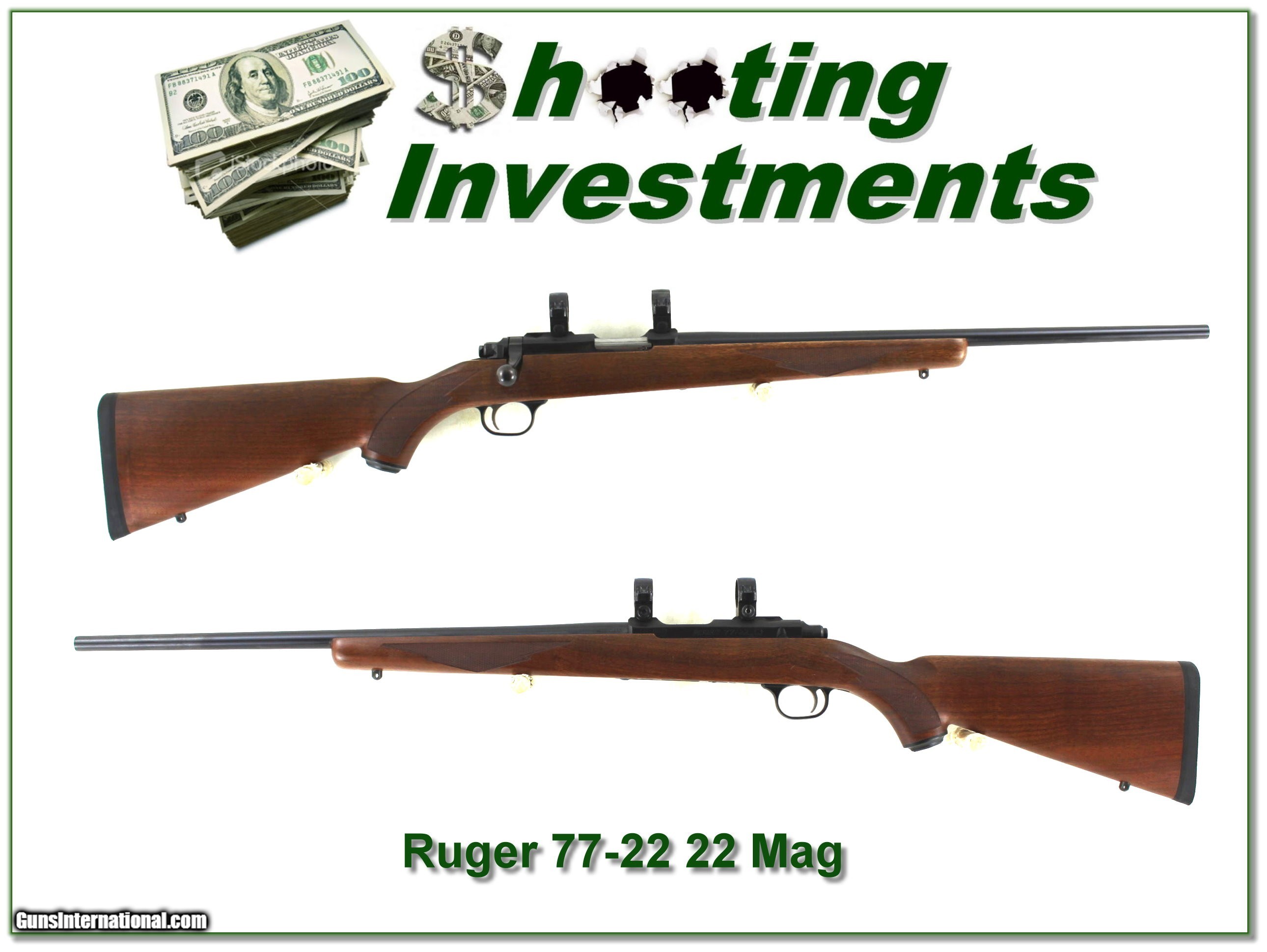 Description: This is an excellent, near new, condition Ruger 77-22 in harder to find 22 Magnum. It has nice walnut and 20in barrel. It comes with factory rings as seen. Shipping and insurance is $49. Please email me with any questions or larger pictures. (Consign your quality firearms with Shooting Investments for only 12%! Let me know if you have any you would like to sell!) 24-1071 Payment: Payment is by Money Order, Cashier’s Check or Personal Check. I can now also accept Credit Cards (MasterCard, Visa, Discover & American Express) with a 3% convenience fee. Shipping: The shipping charge will be listed in each description. It is $49 for most firearms. Some heavy guns or those insured for over $2000 will be higher. Shipments to Alaska and Hawaii are higher because air shipment is required. Most firearms are shipped on Tuesday and Thursday and usually in 5 days of receipt of payment. We package all shipments carefully and insure them. Optics are shipped Priority Mail and most other non-firearm shipments are shipped First Class. Returns: Our return policy is simple. If for any reason you are not pleased with your purchase, you may return your item for a full refund of purchase price. Ammunition cannot be returned. It is important to us that you are happy. Guns cannot be fired or dissembled before returning them and they must be returned in the same condition as received. Notification of a return must occur within 3 days of receipt at your dealer. Shipping, convenience and dealer fees are not refundable and are the responsibility of the buyer. Lay-a-way: If needed, we offer a 60 day lay-a-way option on most firearms. It is 1/3 now, 1/3 in 30 days and 1/3 in 60 days. Lay-a-way firearm sales are final and cannot be returned. If a lay-a-way is not completed the first payment cannot be refunded. Consigning your firearms with Shooting Investments: We will help you get top dollar for your firearms. While most local guns shops charge 20% or more, our fee is only 12% with a minimum of $75. At your local gun shop it might take months to sell. Selling on-line provides instant access to thousands of interested buyers. You won’t find any other on-line dealer willing to sell your firearms for only 12% or listing every gun on 3 separate s. Selling through an House typically costs the seller 15% and the buyer an addition 15% (so 30%) and you have to wait several months to sell and longer to receive funds. If properly priced, we will sell your firearms within a few weeks. Send us an email or give us a call and we’ll explain how easy it is for you to get top dollar. Trading: Trading for us is really just buying your gun to re-sell. If you have a gun you want to trade, please email a picture and we will let you know what we can give for it. You will always get more if we sell it for you on consignment. SOLD |