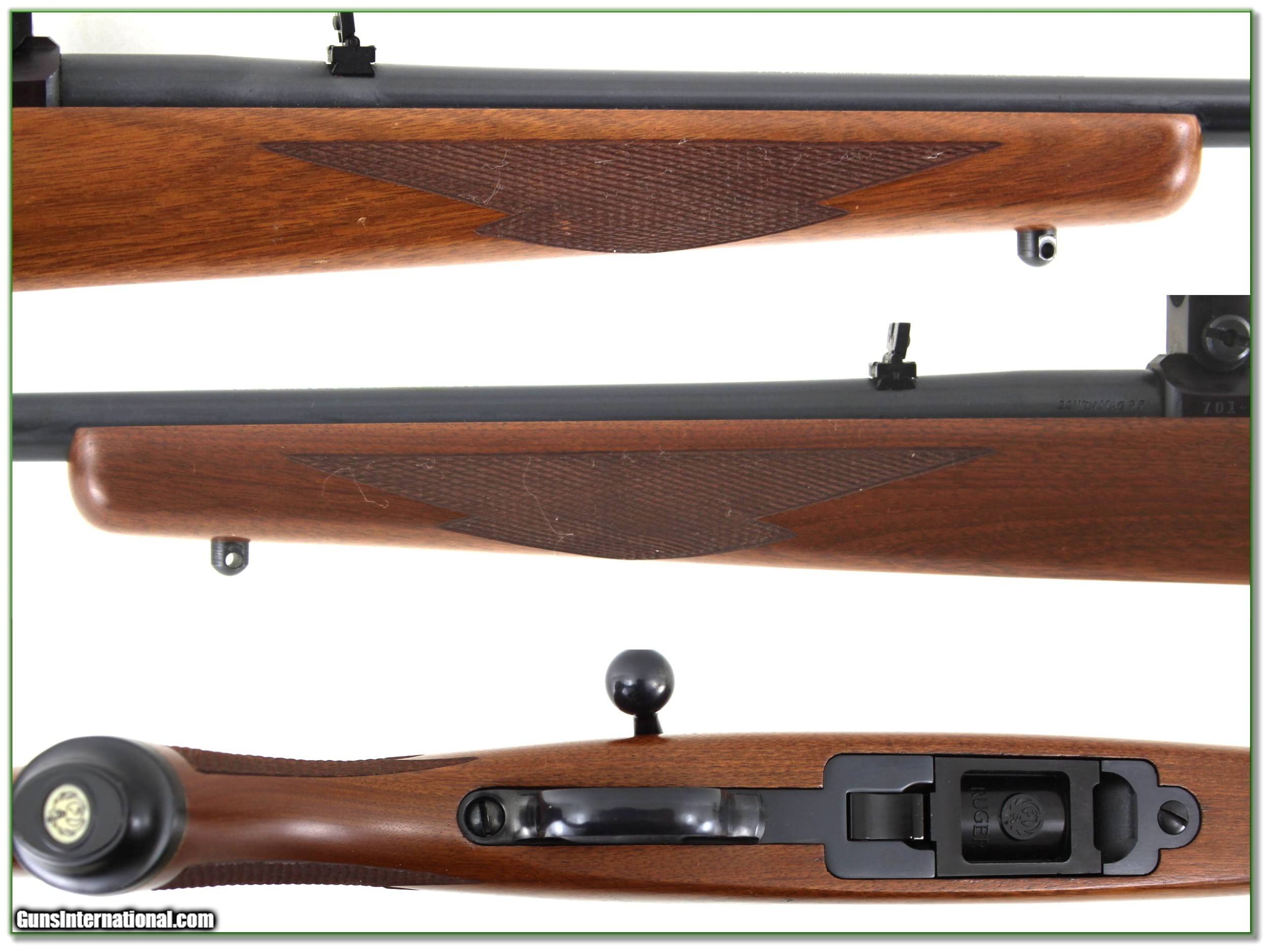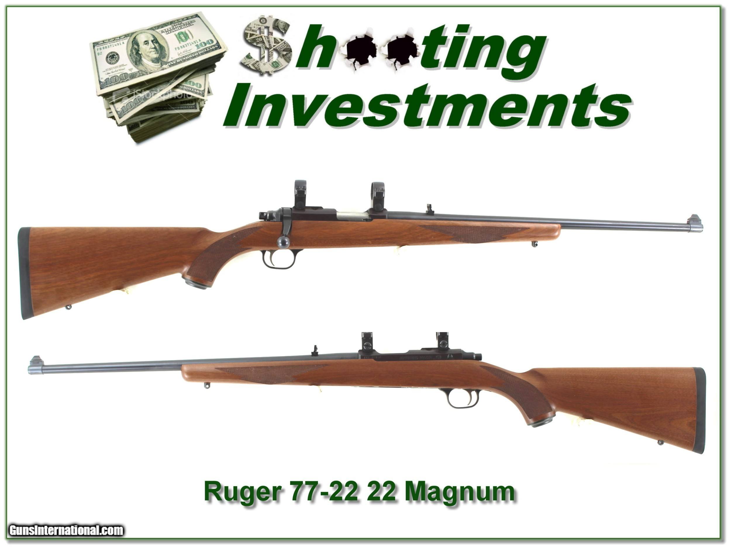 Description: This is near new Ruger 77-22 in the harder to find 22 Magnum! The blue is excellent with no marks I find. It has beautiful wood with just a couple insignificant handing marks. It comes as seen with factory rings. Shipping with insurance is $39. Please email me with any questions or larger pictures. (Consign your quality firearms with Shooting Investments for only 12%! Let me know if you have any you would like to sell!) 21-1228 Payment: Payment is by Money Order, Cashier’s Check or Personal Check. I can now also accept Credit Cards (MasterCard, Visa, Discover & American Express) with a 3% convenience fee. Shipping: The shipping charge will be listed in each description. It is $39 for most firearms. Some heavy guns or those insured for over $2000 will be higher. Shipments to Alaska and Hawaii are higher because air shipment is required. Most firearms are shipped on Tuesday and Thursday and usually in 5 days of receipt of payment. We package all shipments carefully and insure them. Optics are shipped Priority Mail and most other non-firearm shipments are shipped First Class. Returns: Our return policy is simple. If for any reason you are not pleased with your purchase, you may return your item for a full refund of purchase price. Ammunition cannot be returned. It is important to us that you are happy. Guns cannot be fired or dissembled before returning them and they must be returned in the same condition as received. Notification of a return must occur within 3 days of receipt at your dealer. Shipping, convenience and dealer fees are not refundable and are the responsibility of the buyer. Lay-a-way: If needed, we offer a 60 day lay-a-way option on most firearms. It is 1/3 now, 1/3 in 30 days and 1/3 in 60 days. Lay-a-way firearm sales are final and cannot be returned. If a lay-a-way is not completed the first payment cannot be refunded. Consigning your firearms with Shooting Investments: We will help you get top dollar for your firearms. While most local guns shops charge 20% or more, our fee is only 12% with a minimum of $75. At your local gun shop it might take months to sell. Selling on-line provides instant access to thousands of interested buyers. You won’t find any other on-line dealer willing to sell your firearms for only 12% or listing every gun on 3 separate s. Selling through an House typically costs the seller 15% and the buyer an addition 15% (so 30%) and you have to wait several months to sell and longer to receive funds. If properly priced, we will sell your firearms within a few weeks. Send us an email or give us a call and we’ll explain how easy it is for you to get top dollar. Trading: Trading for us is really just buying your gun to re-sell. If you have a gun you want to trade, please email a picture and we will let you know what we can give for it. You will always get more if we sell it for you on consignment. Help for California Buyers: We are happy to ship to California. It is the buyer’s responsibility to make sure any item you buy is legal in your state. We are also happy to help with your purchase of a firearm from someone other than us. If you see a gun you would like to buy but the seller can’t or won’t ship to California they can ship to use and we’ll then ship it to your California dealer. The cost for this service is only $30 + shipping. Let us know if we can help! SOLD |