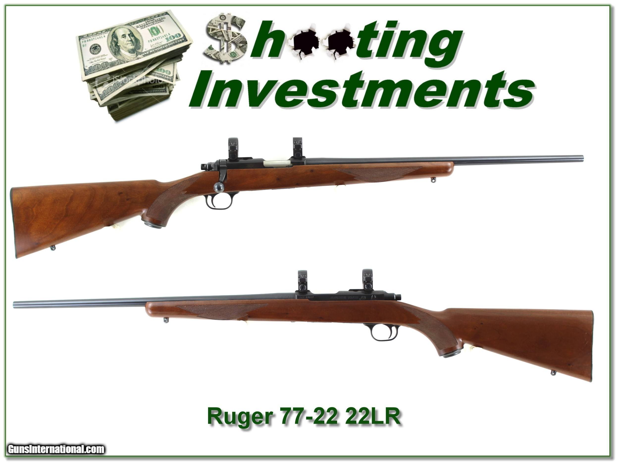 Description: This is an excellent condition early Ruger 77-22 in 22LR. It has the original hard butt plate and comes as seen with 20in barrel and factory rings. I see no marks on the blue and just a few minor marks on the wood. It will make a fine addition to your collection. Shipping and insurance is $39. Please email me with any questions or larger pictures. (Consign your quality firearms with Shooting Investments for only 12%! Let me know if you have any you would like to sell!) 21-0258 Payment: Payment is by Money Order, Cashier’s Check or Personal Check. I can now also accept Credit Cards (MasterCard, Visa, Discover & American Express) with a 3% convenience fee. Shipping: The shipping charge will be listed in each description. It is $39 for most firearms. Some heavy guns or those insured for over $2000 will be higher. Shipments to Alaska and Hawaii are higher because air shipment is required. Most firearms are shipped on Tuesday and Thursday and usually in 5 days of receipt of payment. We package all shipments carefully and insure them. Optics are shipped Priority Mail and most other non-firearm shipments are shipped First Class. Returns: Our return policy is simple. If for any reason you are not pleased with your purchase, you may return your item for a full refund of purchase price. Ammunition cannot be returned. It is important to us that you are happy. Guns cannot be fired or dissembled before returning them and they must be returned in the same condition as received. Notification of a return must occur within 3 days of receipt at your dealer. Shipping, convenience and dealer fees are not refundable and are the responsibility of the buyer. Lay-a-way: If needed, we offer a 60 day lay-a-way option on most firearms. It is 1/3 now, 1/3 in 30 days and 1/3 in 60 days. Lay-a-way firearm sales are final and cannot be returned. If a lay-a-way is not completed the first payment cannot be refunded. Consigning your firearms with Shooting Investments: We will help you get top dollar for your firearms. While most local guns shops charge 20% or more, our fee is only 12% with a minimum of $75. At your local gun shop it might take months to sell. Selling on-line provides instant access to thousands of interested buyers. You won’t find any other on-line dealer willing to sell your firearms for only 12% or listing every gun on 3 separate s. Selling through an House typically costs the seller 15% and the buyer an addition 15% (so 30%) and you have to wait several months to sell and longer to receive funds. If properly priced, we will sell your firearms within a few weeks. Send us an email or give us a call and we’ll explain how easy it is for you to get top dollar. Trading: Trading for us is really just buying your gun to re-sell. If you have a gun you want to trade, please email a picture and we will let you know what we can give for it. You will always get more if we sell it for you on consignment. Help for California Buyers: We are happy to ship to California. It is the buyer’s responsibility to make sure any item you buy is legal in your state. We are also happy to help with your purchase of a firearm from someone other than us. If you see a gun you would like to buy but the seller can’t or won’t ship to California they can ship to use and we’ll then ship it to your California dealer. The cost for this service is only $30 + shipping. Let us know if we can help! SOLD |