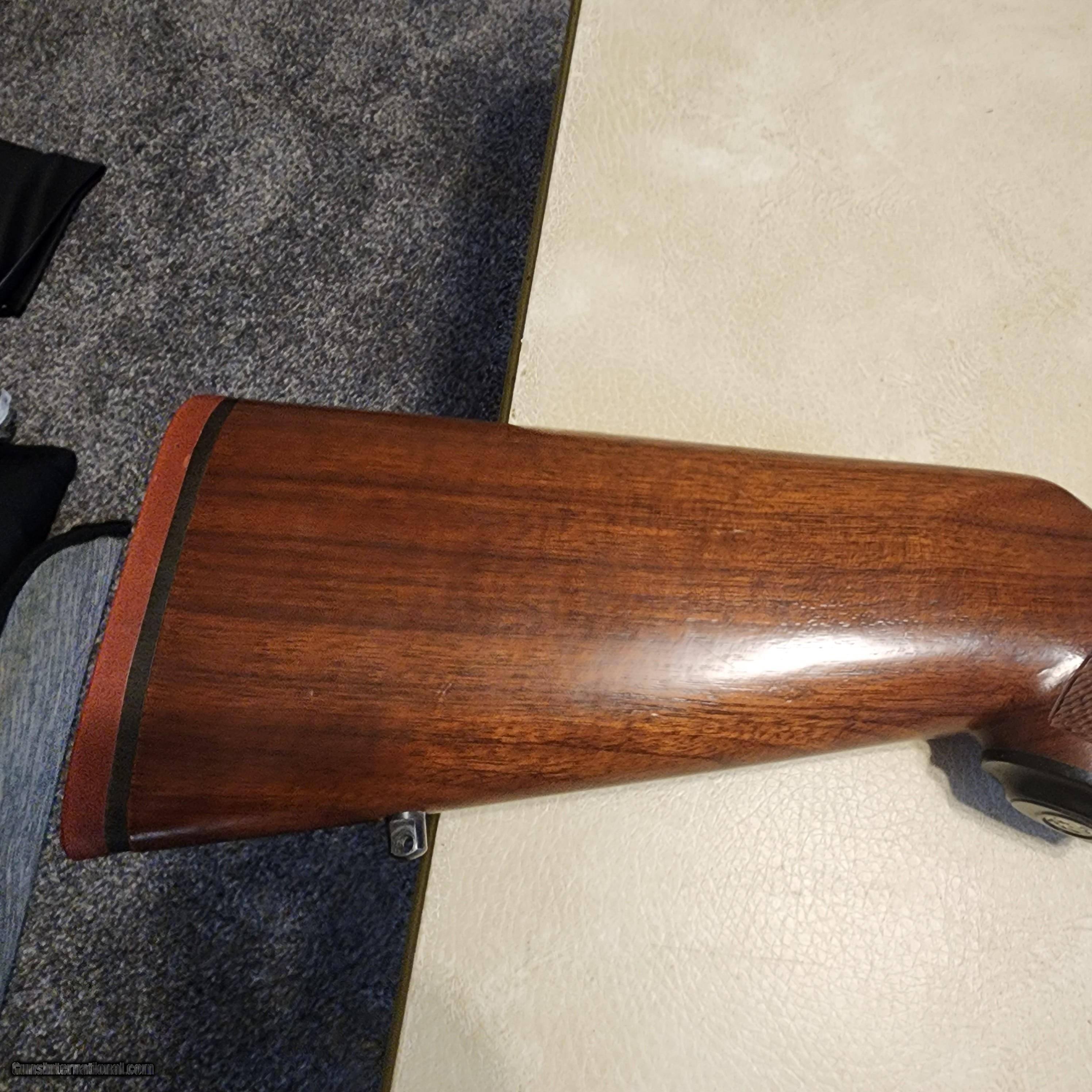 Description: Pre warning. Red pad tang safety. In very good condition. Has heavy bull barrel. Wood has a few handling marks. Has Scope rings. Checkering in very good condition. Shipping will be $75. SOLD Rifle Caliber: .25-06 Remington Manufacturer: Ruger Model: 77 Condition: Very good Metal Condition: Very good Wood Condition: Very good Bore Condition: Very good Action: Bolt Action |