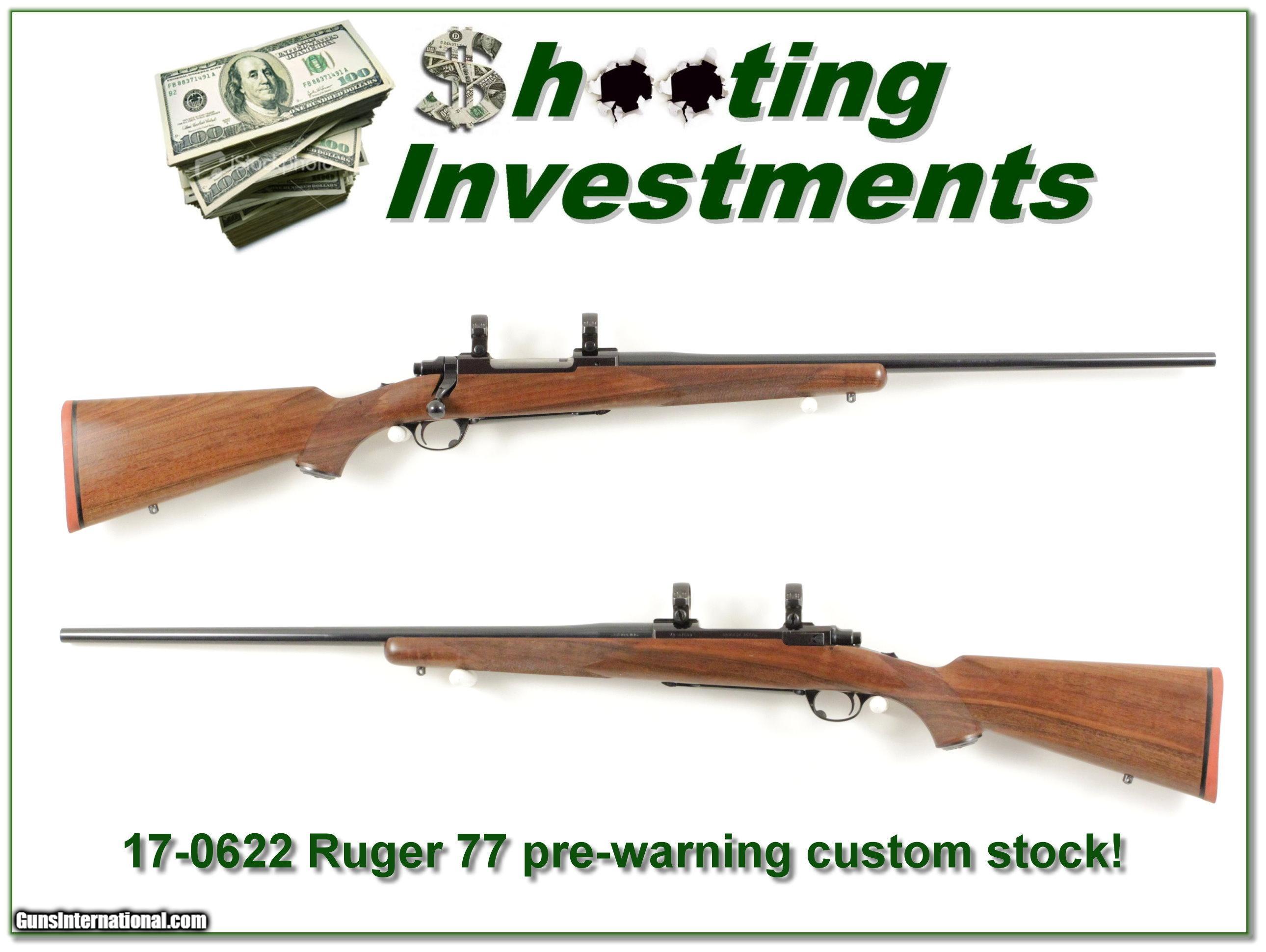 Description: This is a collector condition Ruger 77 in 338. It is a pre-warning red pad with beautiful wood and a 24in barrel. When I bought the gun, I thought it was a high-end custom-made stock. But I’m not sure. It has the factory pad but the checkering is fine and precise with an oil finish. It is beautiful! The blue is about new and I see only a couple marks on the left side of the stock under the receiver. Otherwise like new! Shipping and insurance is $35 or $15 more if you want it shipped in a new Plano hard case. Please email me with any questions or larger pictures. (Consign your quality firearms with Shooting Investments for only 10%! Let me know if you have any you would like to sell!) 17-0622 Payment: Payment is by Money Order, Cashiers Check or Personal Check. I can now also accept MasterCard and Visa with a 3% convenience fee. PayPal can be used for some items but never firearms. Please let us know if you would like to pay via PayPal. Shipping: The shipping charge will be listed in each description. It is $35 for most guns. Some heavy guns or those insured for over $2000 will be higher. Shipments to Alaska and Hawaii are higher because air shipment is required. Most firearms are shipped within 5 days of receipt of payment. We prefer shipping at the beginning of the week to avoid firearms in transit over weekends. We package all shipments carefully and insure them for the full purchase price, rounded up to the next $100. In the unlikely event that damage occurs, it is important that you save all packaging material for the claims process. Optics are shipped Priority Mail and most other non-firearm shipments are shipped First Class. Returns: Our return policy is simple. If for any reason you are not pleased with your purchase, you may return your item for a refund. The only exception is ammunition, it cannot be returned. It is important to us that you are happy. Guns cannot be fired or dissembled before returning them and must be returned in the same condition as received. Notification of a return must occur with-in 3 days of receipt at your dealer. Shipping, convenience and dealer fees are not refundable and are the responsibility of the buyer. Lay-a-way: If needed, we offer a 60 day lay-a-way option on most firearms. It is 1/3 now, 1/3 in 30 days and 1/3 in 60 days. Lay-a-way firearm sales are final. Consigning your firearms with Shooting Investments: We will help you get top dollar for your firearms. While most local guns shops charge 20% or more, our fee is only 10% with a minimum of $50. At your local gun shop it might take months to sell. Selling on-line provides instant access to thousands of interested buyers. You won’t find any other on-line dealer willing to sell your firearms for only 10% or listing every gun on 4 separate s. Selling through an House typically costs the seller 15% and the buyer an addition 15% (so 30%) and you have to wait several months to sell and longer to receive funds. If properly priced, we will sell your firearms in a week or two. Send us an email or give us a call and we’ll explain how easy it is for you to get top dollar. Trading: We collect guns and usually just trade for guns we want to add to our collections. We often sell guns for others wanting to purchase one of ours. We find this the most fair to both of us. Our Commission is only 10% and we hold the gun you want until yours sells. Please contact us if you want to sell one of yours to buy one of ours. Help for California Buyers: We are happy to ship to California. It is the buyer’s responsibility to make sure any item you buy is legal in your state. We are also happy to help with your purchase of a firearm from someone other than us. If you see a gun you would like to buy but the seller can’t or won’t ship to California we can help. You buy the gun and have it shipped to us. We’ll then ship it to your California dealer. The cost for this service is only $30 + shipping. Let me know if we can help! SOLD |