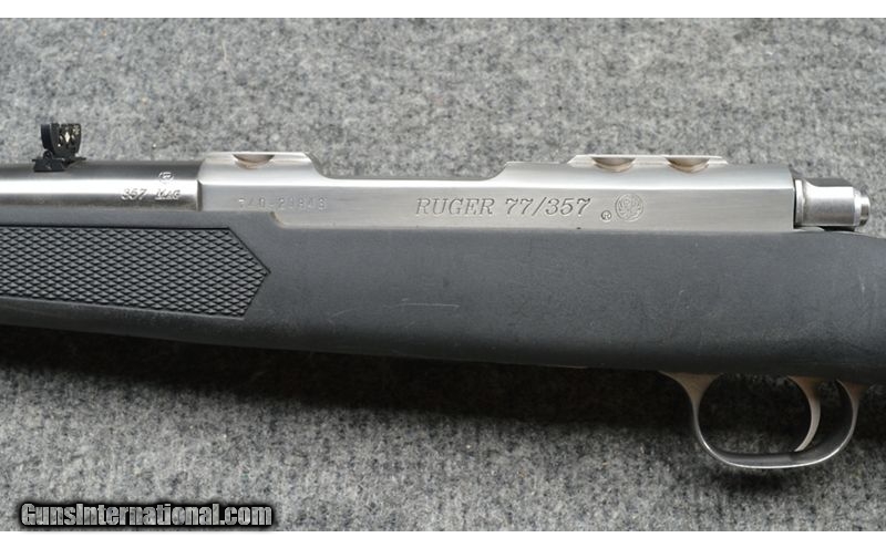 Description: This rifle is in excellent condition overall. The stainless barrel and receiver show light wear from handling and use. The synthetic stock is worn around the handguard. Includes two magazines. Per Ruger, this rifle was shipped in 2011. .357 Mag SOLD Metal Condition: Excellent Bore Condition: Excellent Barrels: 18.5 Stock Dimensions: 13.5" LOP Butt Pad: Rubber Weight: 5.90 lbs. Sights: Gold bead front with adjustable rear. Item Location: Gainesville, VA |