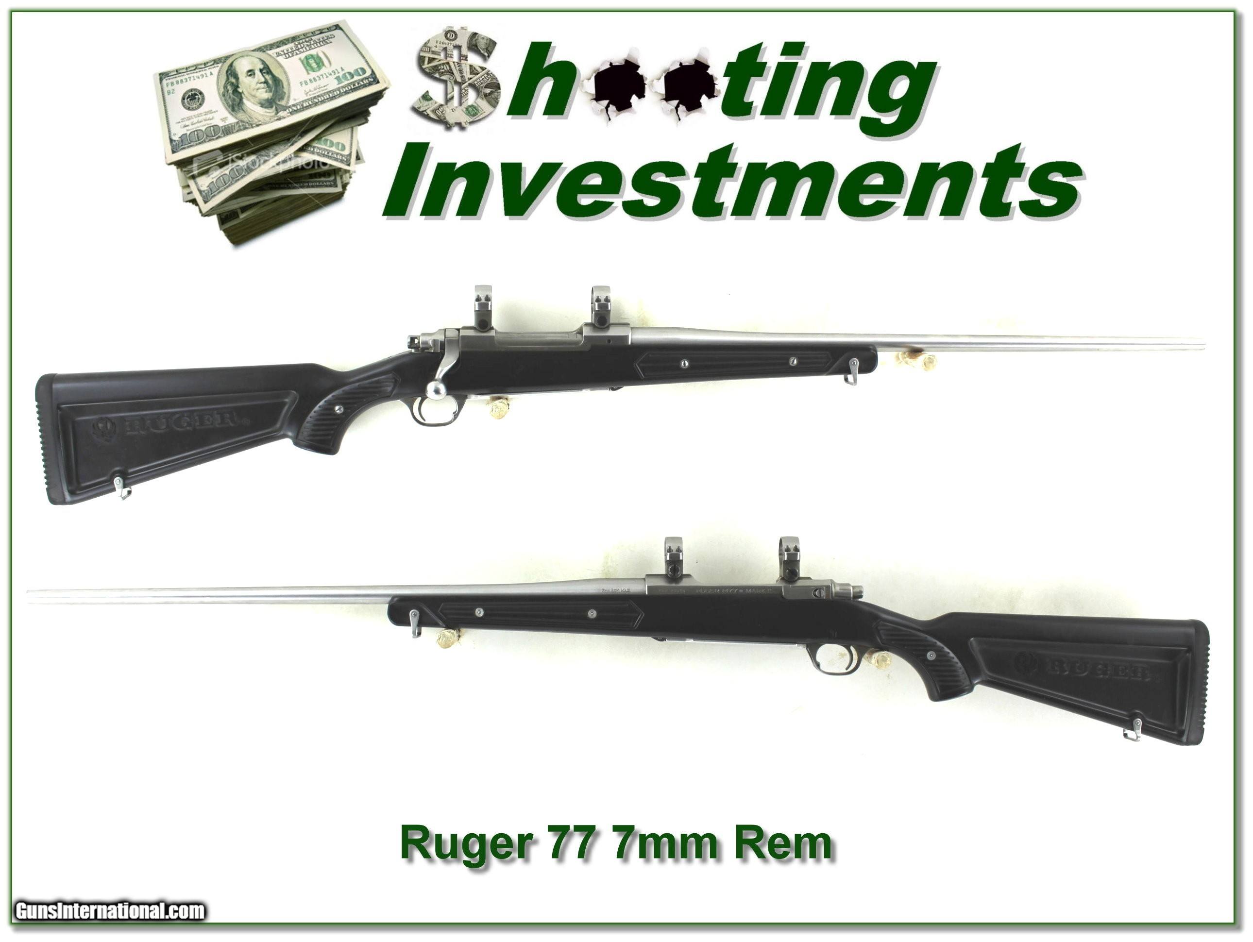 Description: This is a Ruger 77 All-Weather in 7mm Remington Magnum. It is stainless with the indestructible Zytel Seleton stock. The metal is nice with a 24in barrel and just a few rub marks. The stock has just a few marks. It comes as seen with factory stainless rings. It will make a sought after all weather long-rang hunting gun! Shipping and insurance is $49. Please email me with any questions or larger pictures. (Consign your quality firearms with Shooting Investments for only 12%! Let me know if you have any you would like to sell!) 24-1029 Payment: Payment is by Money Order, Cashier’s Check or Personal Check. I can now also accept Credit Cards (MasterCard, Visa, Discover & American Express) with a 3% convenience fee. Shipping: The shipping charge will be listed in each description. It is $49 for most firearms. Some heavy guns or those insured for over $2000 will be higher. Shipments to Alaska and Hawaii are higher because air shipment is required. Most firearms are shipped on Tuesday and Thursday and usually in 5 days of receipt of payment. We package all shipments carefully and insure them. Optics are shipped Priority Mail and most other non-firearm shipments are shipped First Class. Returns: Our return policy is simple. If for any reason you are not pleased with your purchase, you may return your item for a full refund of purchase price. Ammunition cannot be returned. It is important to us that you are happy. Guns cannot be fired or dissembled before returning them and they must be returned in the same condition as received. Notification of a return must occur within 3 days of receipt at your dealer. Shipping, convenience and dealer fees are not refundable and are the responsibility of the buyer. Lay-a-way: If needed, we offer a 60 day lay-a-way option on most firearms. It is 1/3 now, 1/3 in 30 days and 1/3 in 60 days. Lay-a-way firearm sales are final and cannot be returned. If a lay-a-way is not completed the first payment cannot be refunded. Consigning your firearms with Shooting Investments: We will help you get top dollar for your firearms. While most local guns shops charge 20% or more, our fee is only 12% with a minimum of $75. At your local gun shop it might take months to sell. Selling on-line provides instant access to thousands of interested buyers. You won’t find any other on-line dealer willing to sell your firearms for only 12% or listing every gun on 3 separate s. Selling through an House typically costs the seller 15% and the buyer an addition 15% (so 30%) and you have to wait several months to sell and longer to receive funds. If properly priced, we will sell your firearms within a few weeks. Send us an email or give us a call and we’ll explain how easy it is for you to get top dollar. Trading: Trading for us is really just buying your gun to re-sell. If you have a gun you want to trade, please email a picture and we will let you know what we can give for it. You will always get more if we sell it for you on consignment. SOLD |