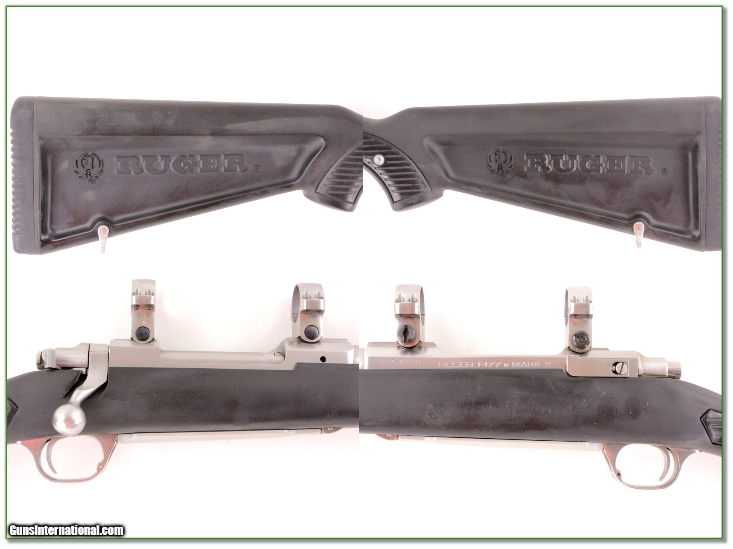 Description: Collectors, shooter and hard weather hunter, this is a rare chance to own a Ruger 77 Stainless all-weather skeleton zytel stock. It is in excellent lightly used condition with a 24in barrel and factory stainless rings. Shipping with insurance is $39. Please email me with any questions or larger pictures. (Consign your quality firearms with Shooting Investments for only 12%! Let me know if you have any you would like to sell!) 19-0771 Payment: Payment is by Money Order, Cashiers Check or Personal Check. I can now also accept Credit Cards (MasterCard, Visa, Discover & American Express) with a 3% convenience fee. PayPal can be used for some items but never for firearms. Shipping: The shipping charge will be listed in each description. It is $39 for most firearms. Some heavy guns or those insured for over $2000 will be higher. Shipments to Alaska and Hawaii are higher because air shipment is required. Most firearms are shipped on Tuesday and Thursday and usually in 5 days of receipt of payment. We package all shipments carefully and insure them. Optics are shipped Priority Mail and most other non-firearm shipments are shipped First Class. Returns: Our return policy is simple. If for any reason you are not pleased with your purchase, you may return your item for a full refund of purchase price. Ammunition cannot be returned. It is important to us that you are happy. Guns cannot be fired or dissembled before returning them and they must be returned in the same condition as received. Notification of a return must occur with-in 3 days of receipt at your dealer. Shipping, convenience and dealer fees are not refundable and are the responsibility of the buyer. Lay-a-way: If needed, we offer a 60 day lay-a-way option on most firearms. It is 1/3 now, 1/3 in 30 days and 1/3 in 60 days. Lay-a-way firearm sales are final and if not completed the first payment cannot be returned. Consigning your firearms with Shooting Investments: We will help you get top dollar for your firearms. While most local guns shops charge 20% or more, our fee is only 12% with a minimum of $75. At your local gun shop it might take months to sell. Selling on-line provides instant access to thousands of interested buyers. You won’t find any other on-line dealer willing to sell your firearms for only 12% or listing every gun on 3 separate s. Selling through an House typically costs the seller 15% and the buyer an addition 15% (so 30%) and you have to wait several months to sell and longer to receive funds. If properly priced, we will sell your firearms in a few weeks. Send us an email or give us a call and we’ll explain how easy it is for you to get top dollar. Trading: Trading for use is really just buying your gun to re-sell. If you have a gun you want to trade, please email a picture and we will let you know what we can give or it. You will always get more if we sell it for you on consignment. Help for California Buyers: We are happy to ship to California. It is the buyer’s responsibility to make sure any item you buy is legal in your state. We are also happy to help with your purchase of a firearm from someone other than us. If you see a gun you would like to buy but the seller can’t or won’t ship to California they can ship to use and we’ll then ship it to your California dealer. The cost for this service is only $30 + shipping. Let us know if we can help! SOLD |